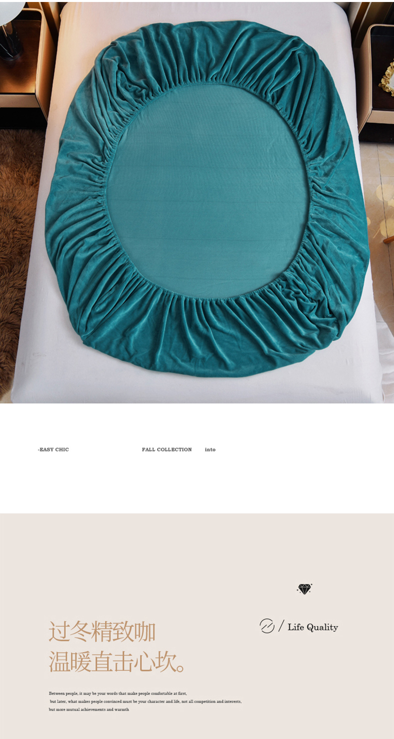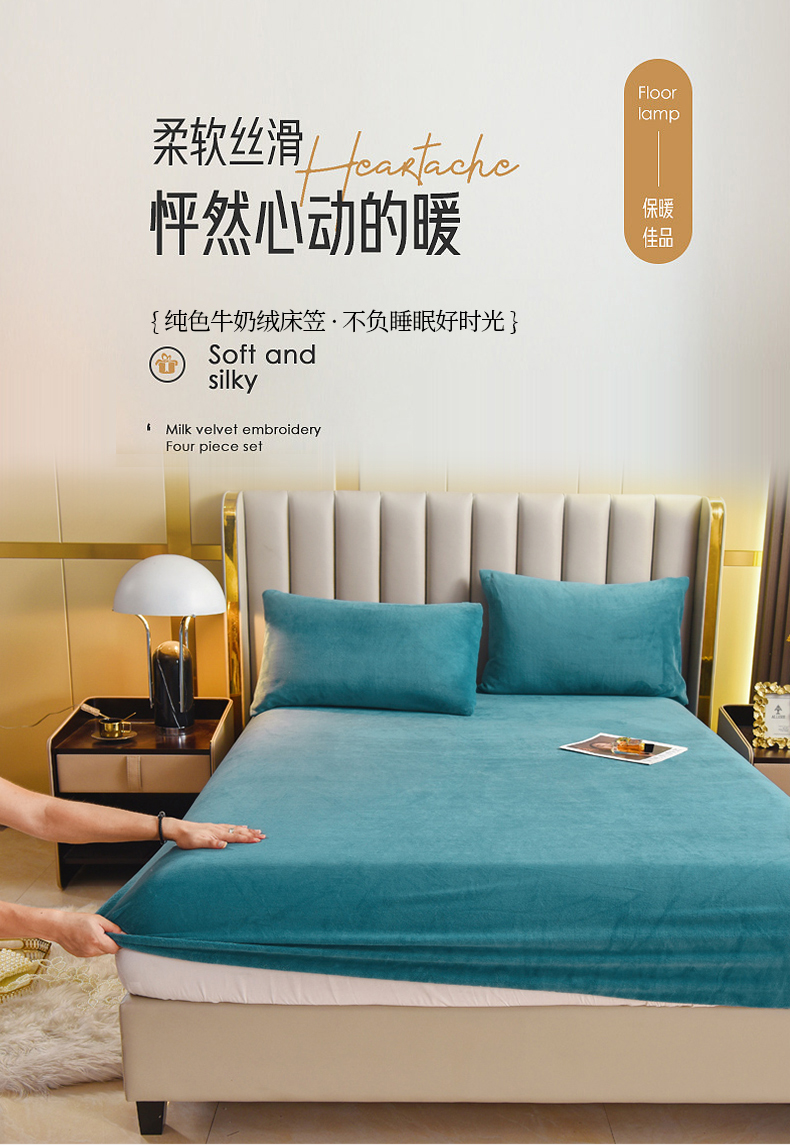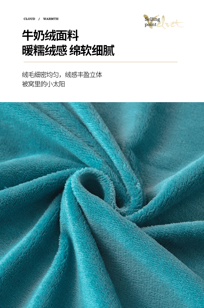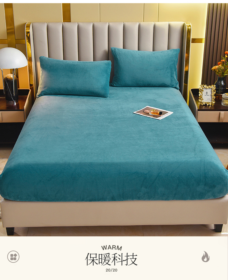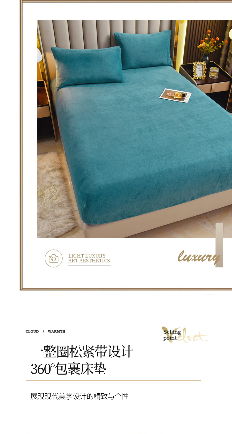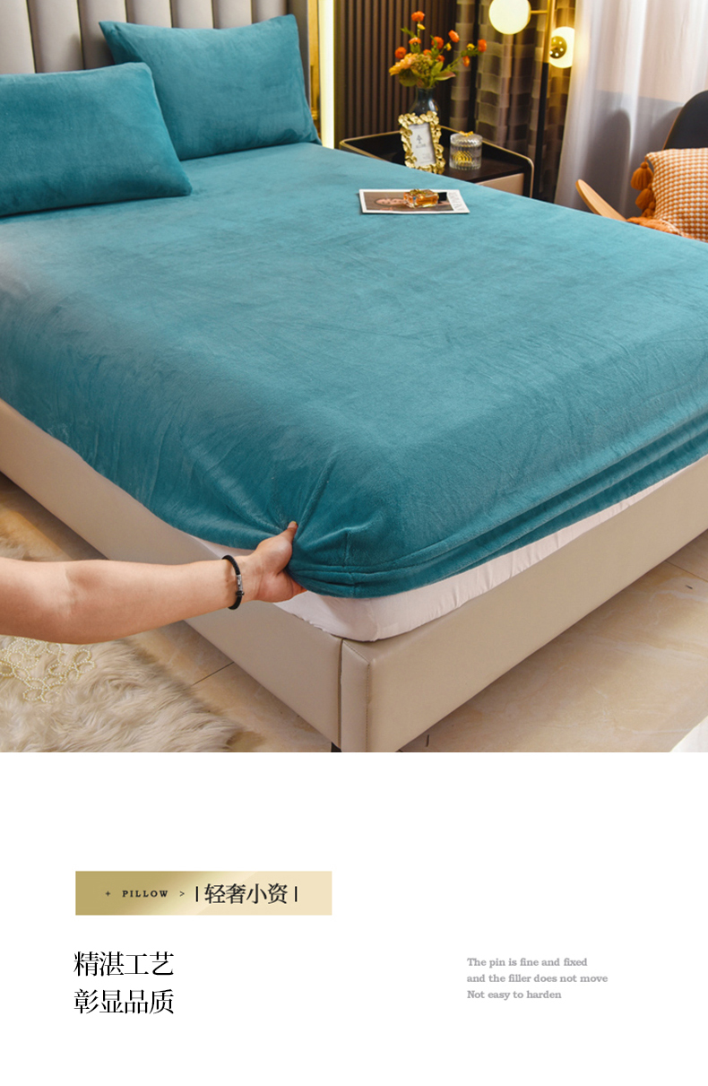 • 91家纺网 家纺一手货源 找家纺 七仙女家纺 2025新款A类230g高克重牛奶绒单品床笠 孔雀蓝