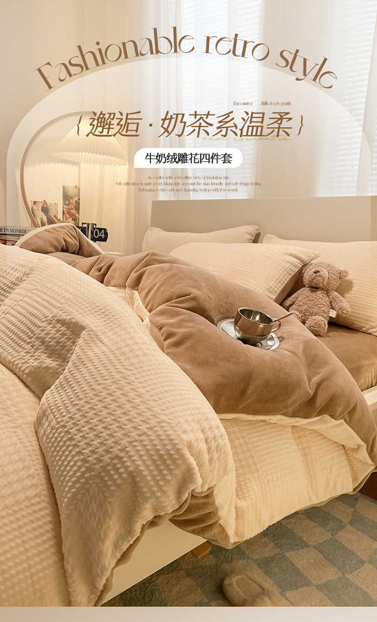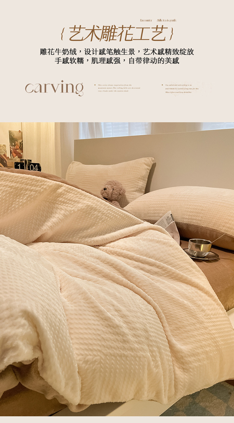 (总)857家居 2023新款牛奶绒雕花四件套