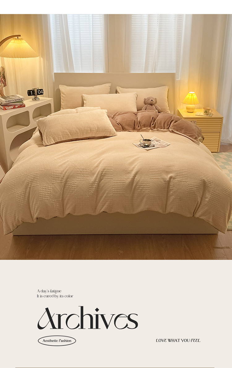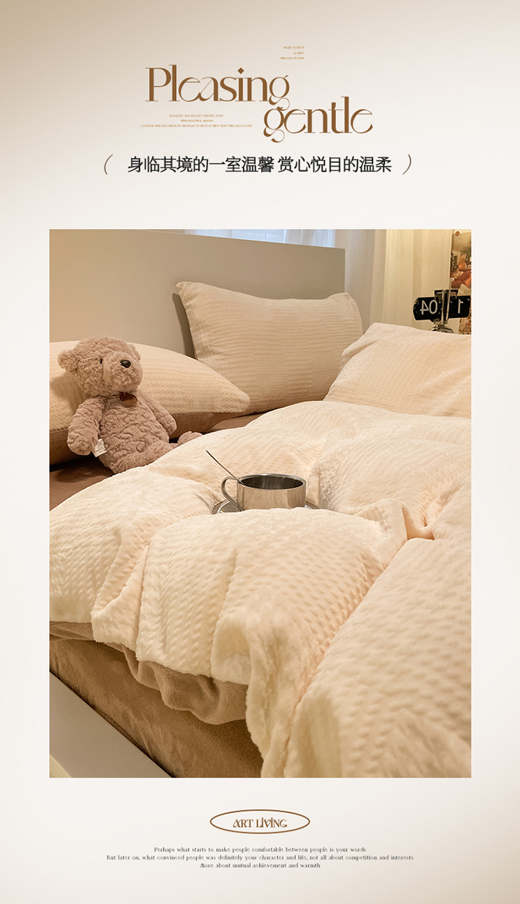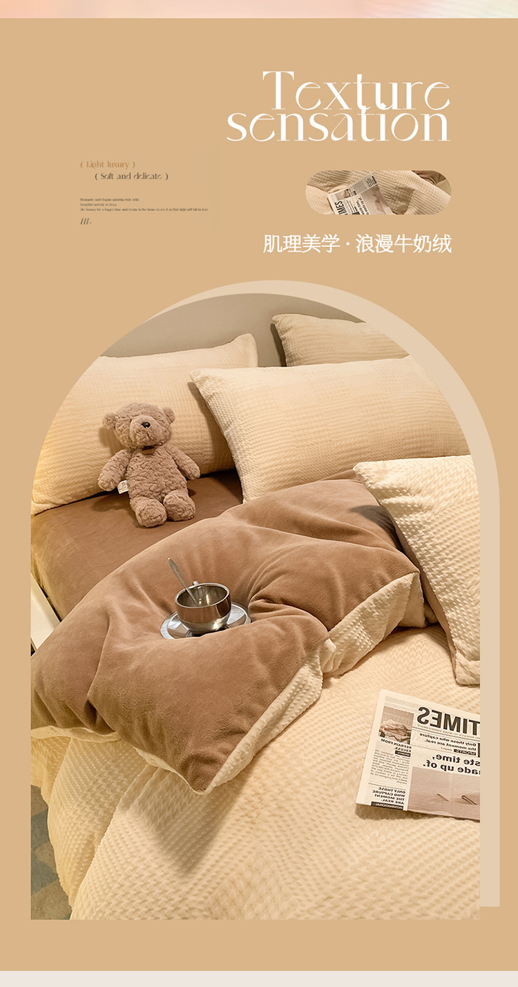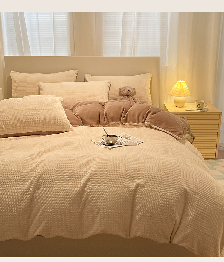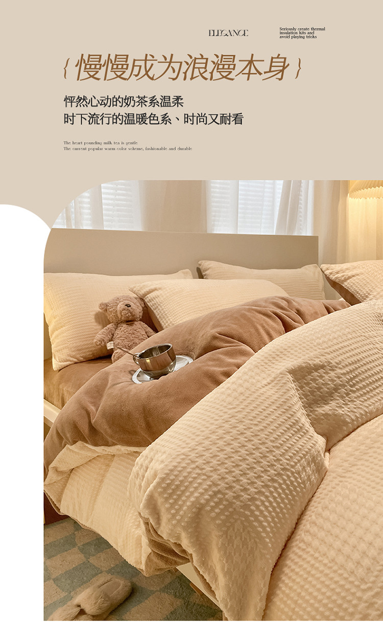 (总)857家居 2023新款牛奶绒雕花四件套,千鸟-豆绿,千鸟-拿铁咖,千鸟-奶油咖,千鸟-樱花粉