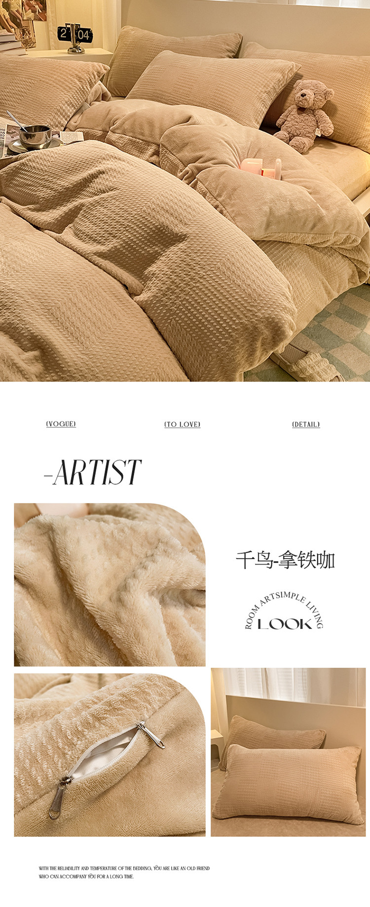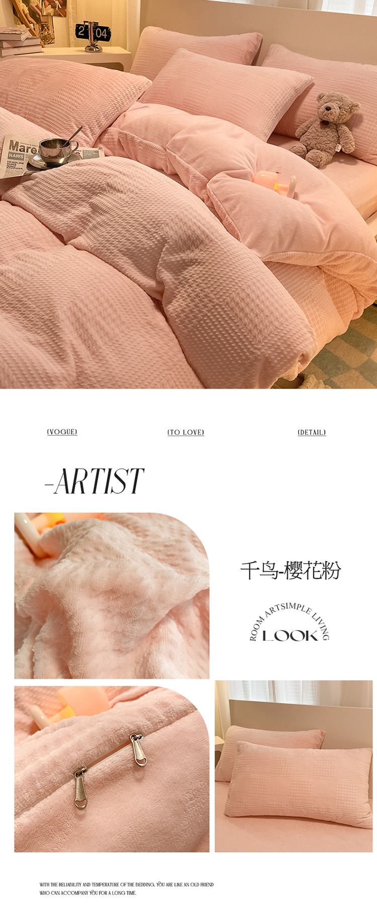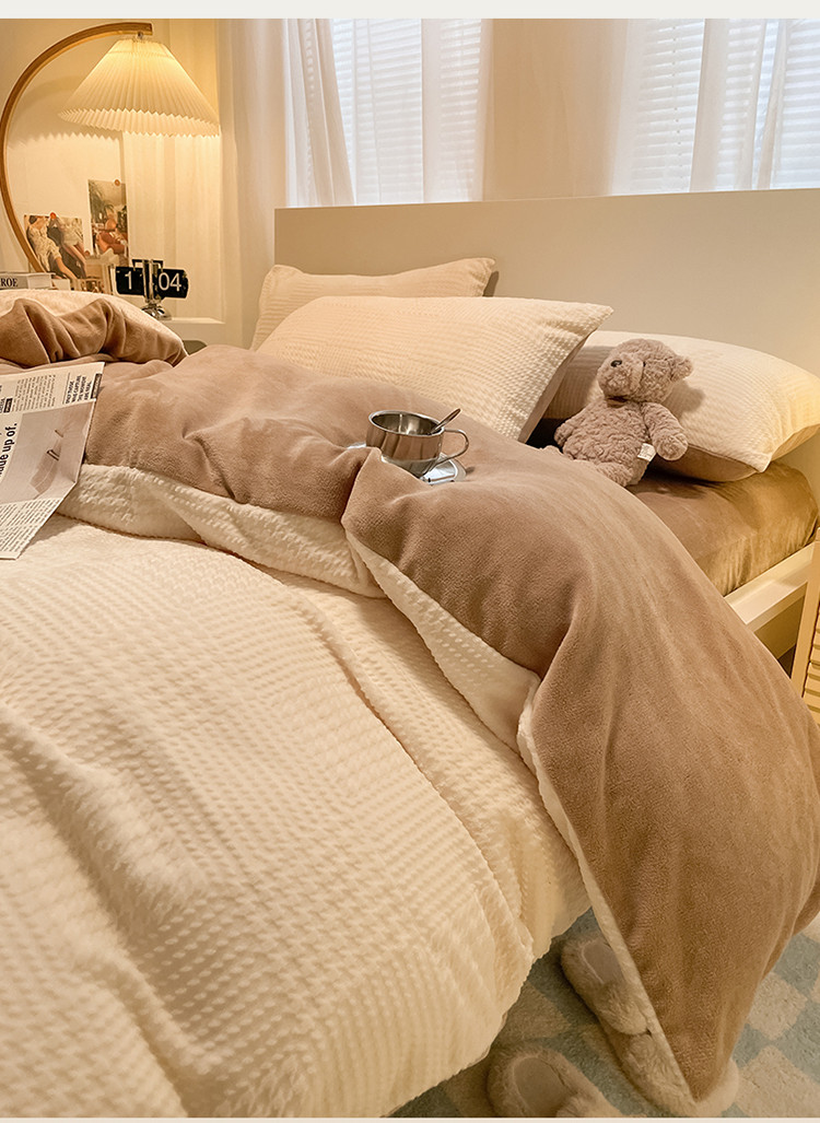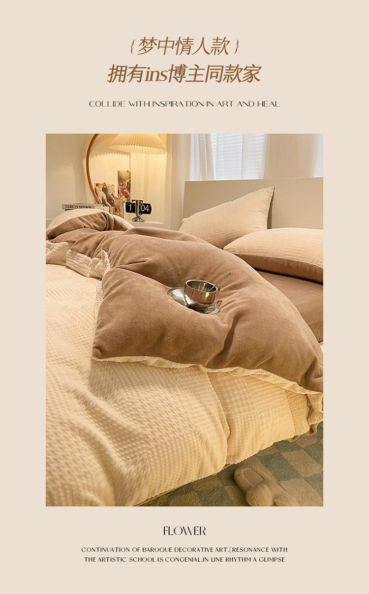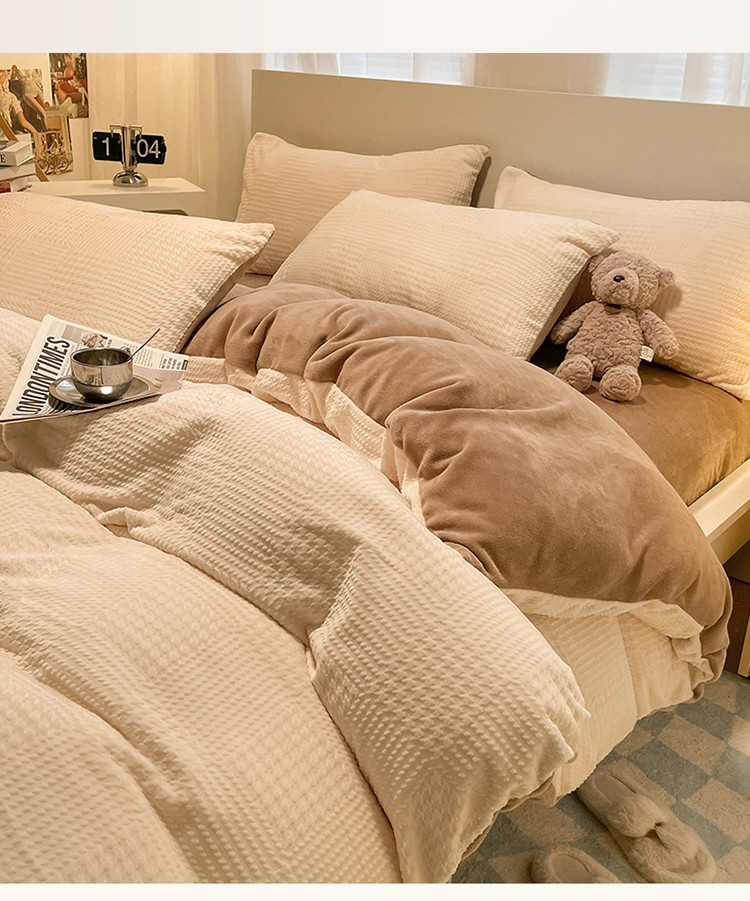 (总)857家居 2023新款牛奶绒雕花四件套,千鸟-豆绿,千鸟-拿铁咖,千鸟-奶油咖,千鸟-樱花粉