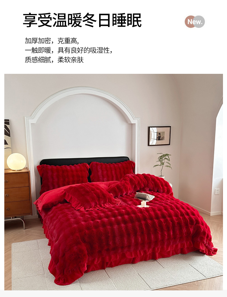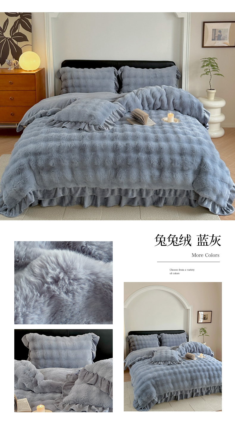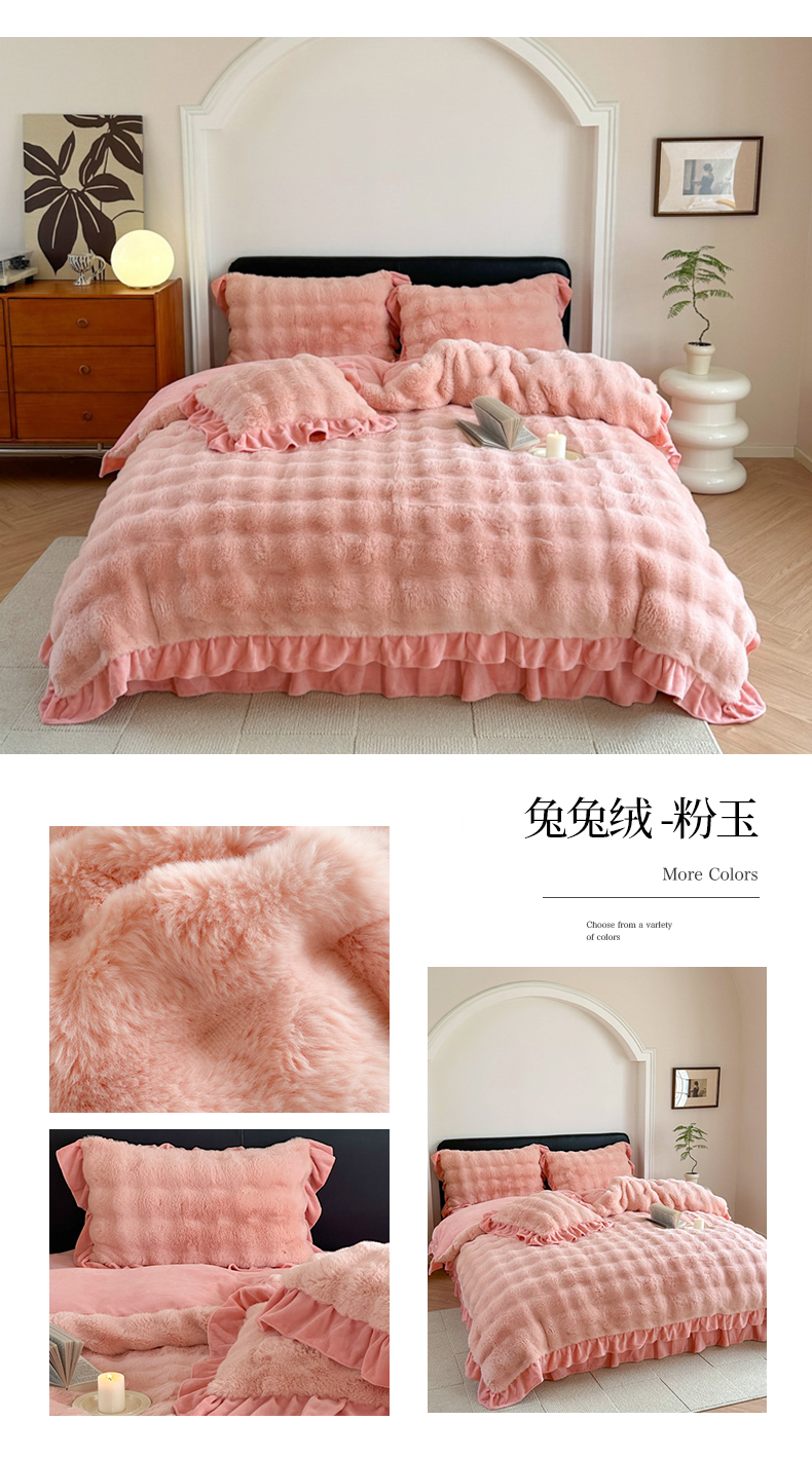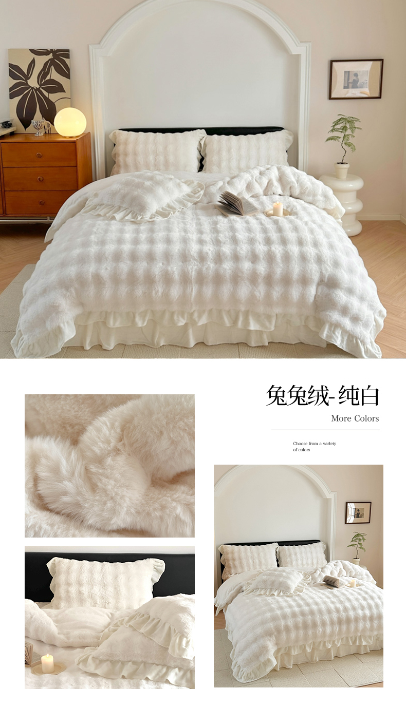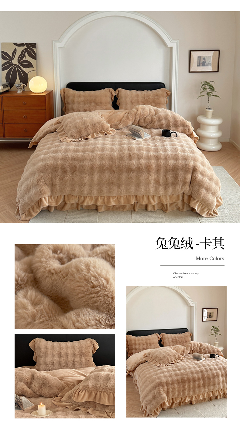 商品名称:(总)淑女公社家纺 2024新款580克高克重仿皮草獭兔毛绒大泡泡四件套牛奶绒床裙款