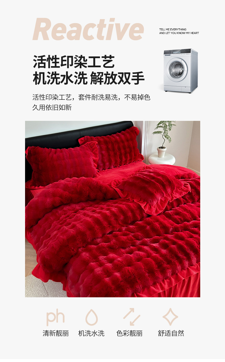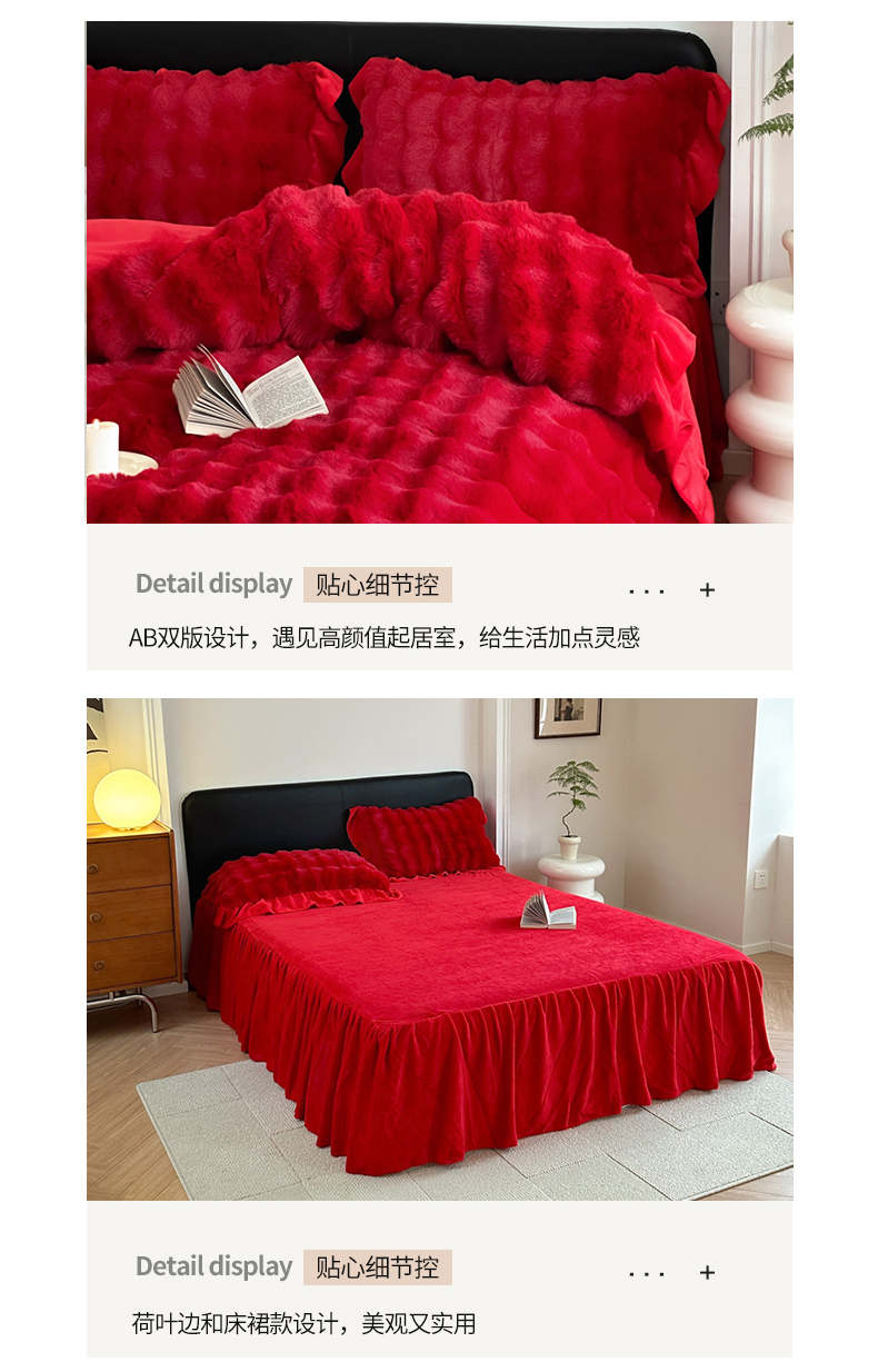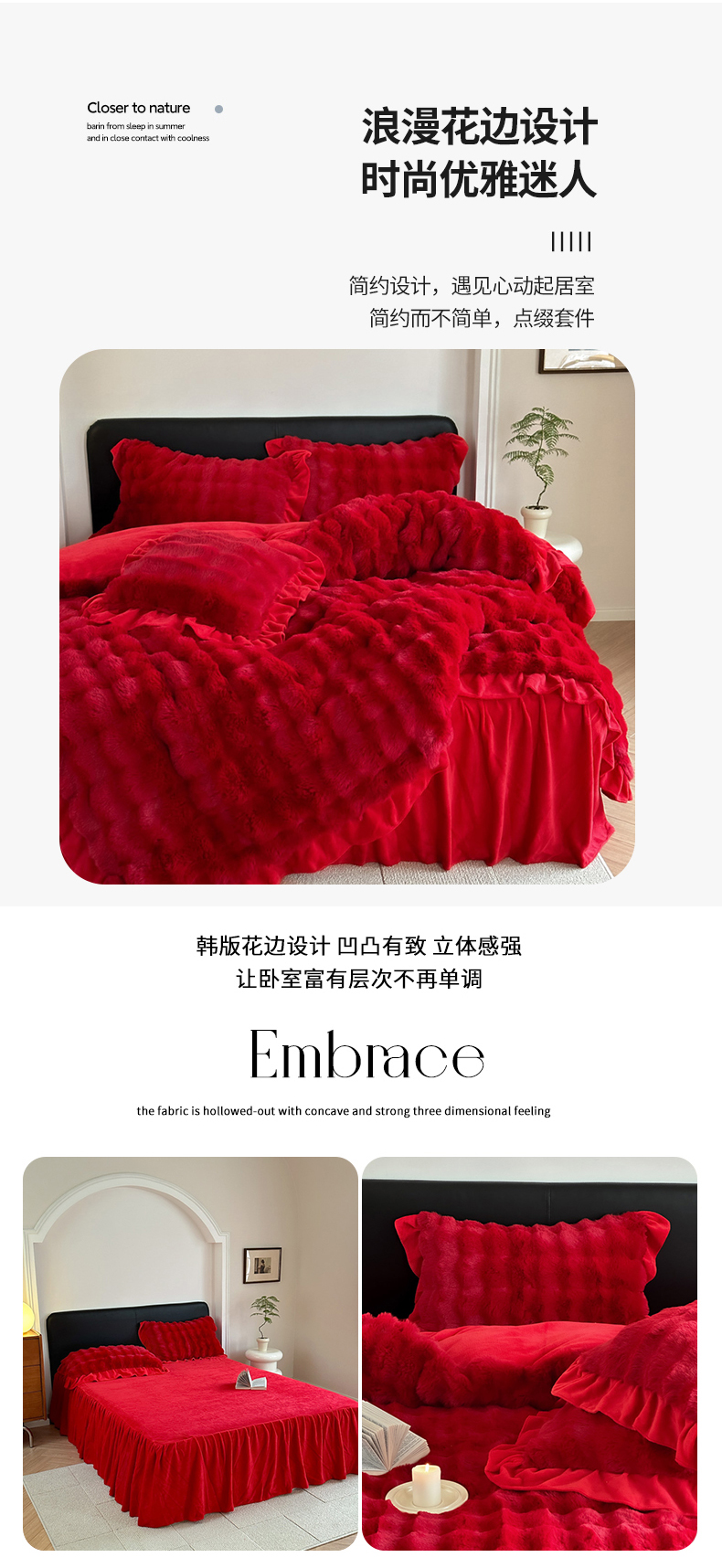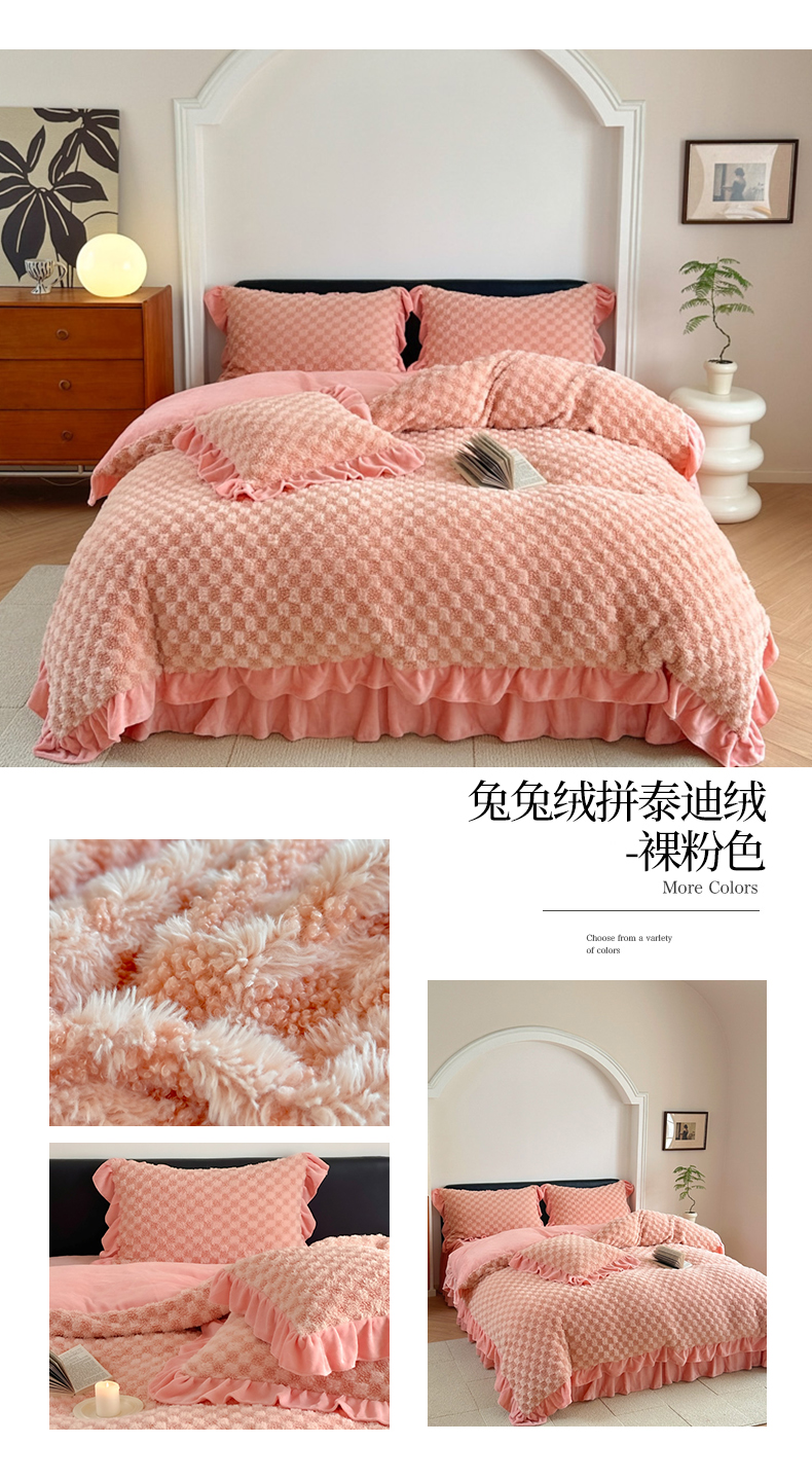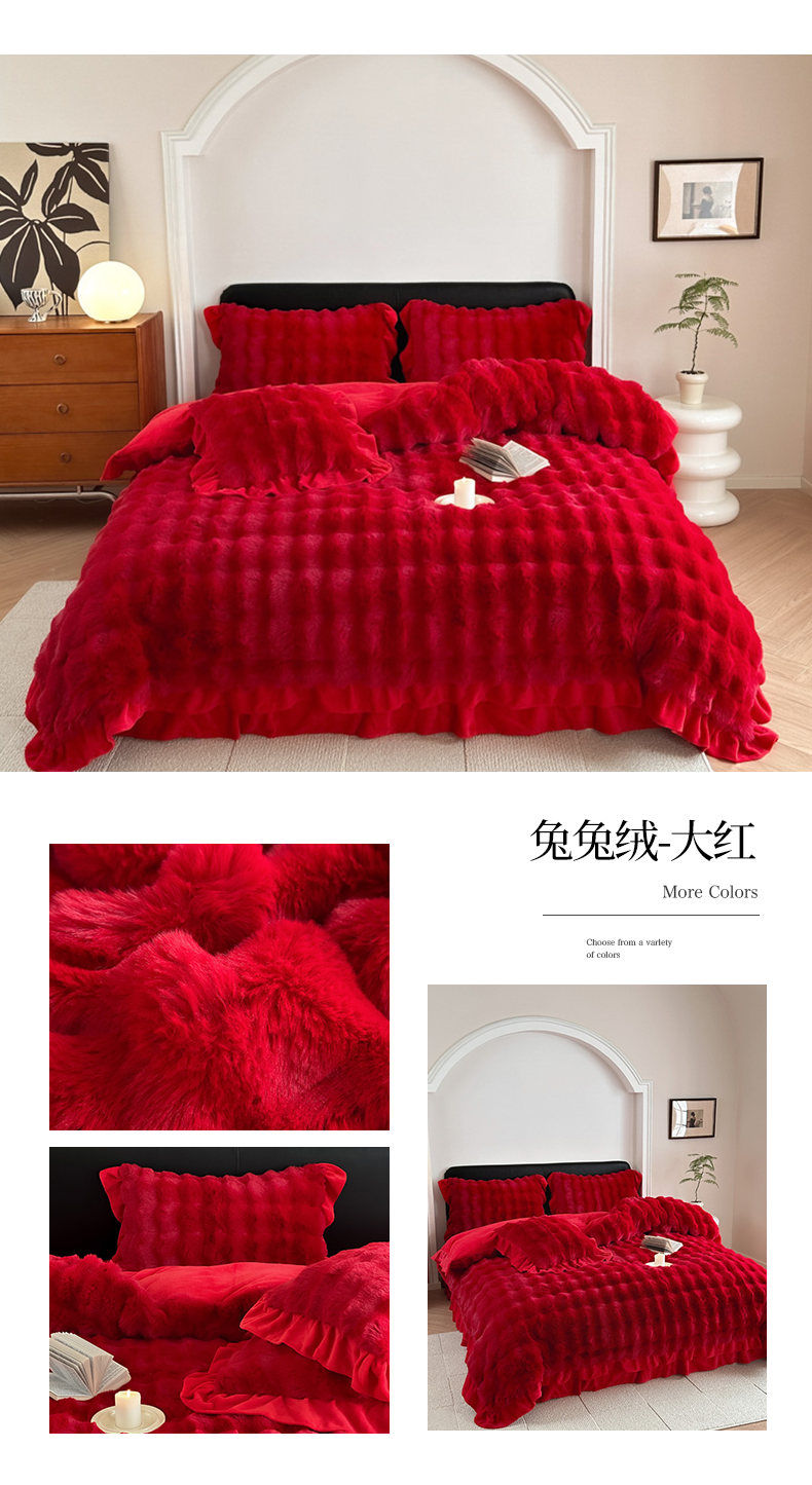 商品名称:(总)淑女公社家纺 2024新款580克高克重仿皮草獭兔毛绒大泡泡四件套牛奶绒床裙款