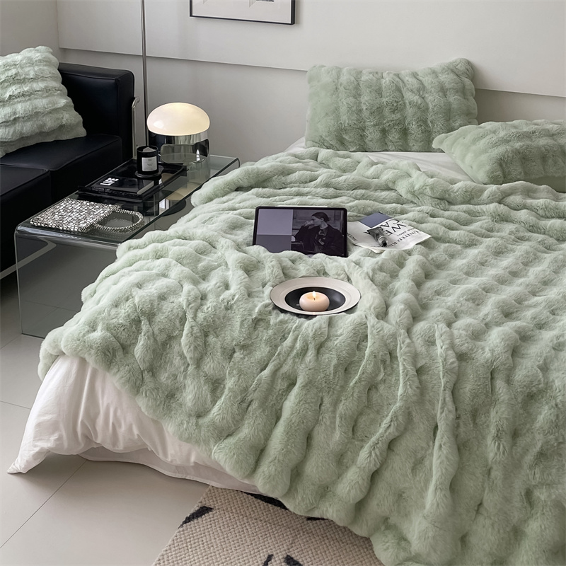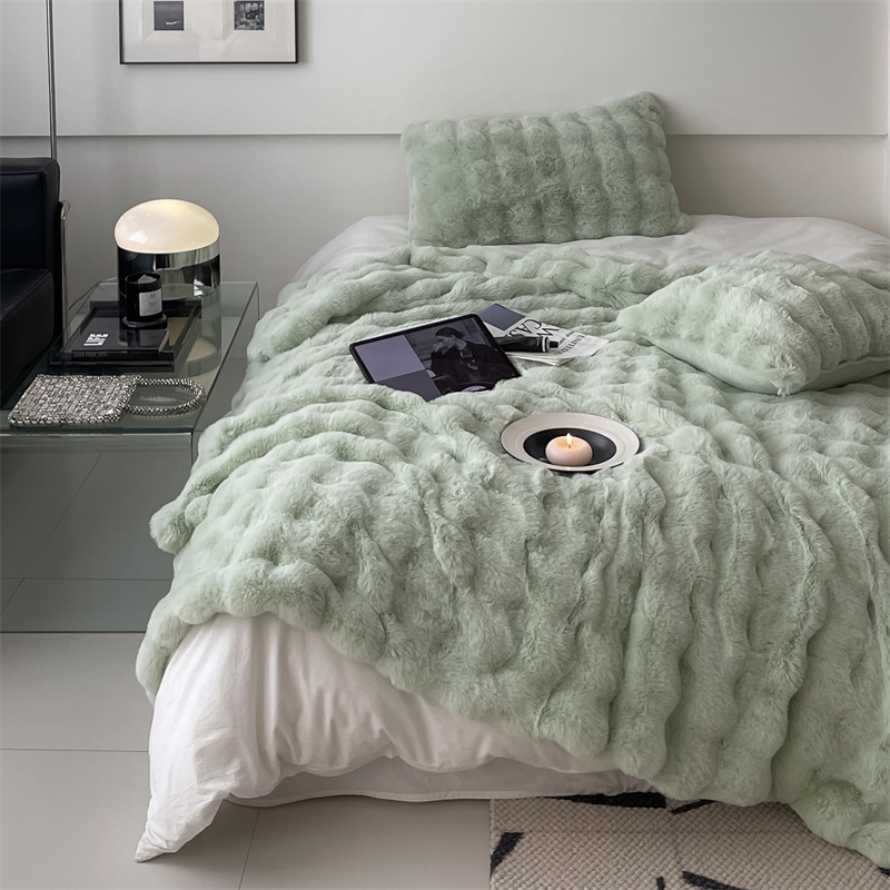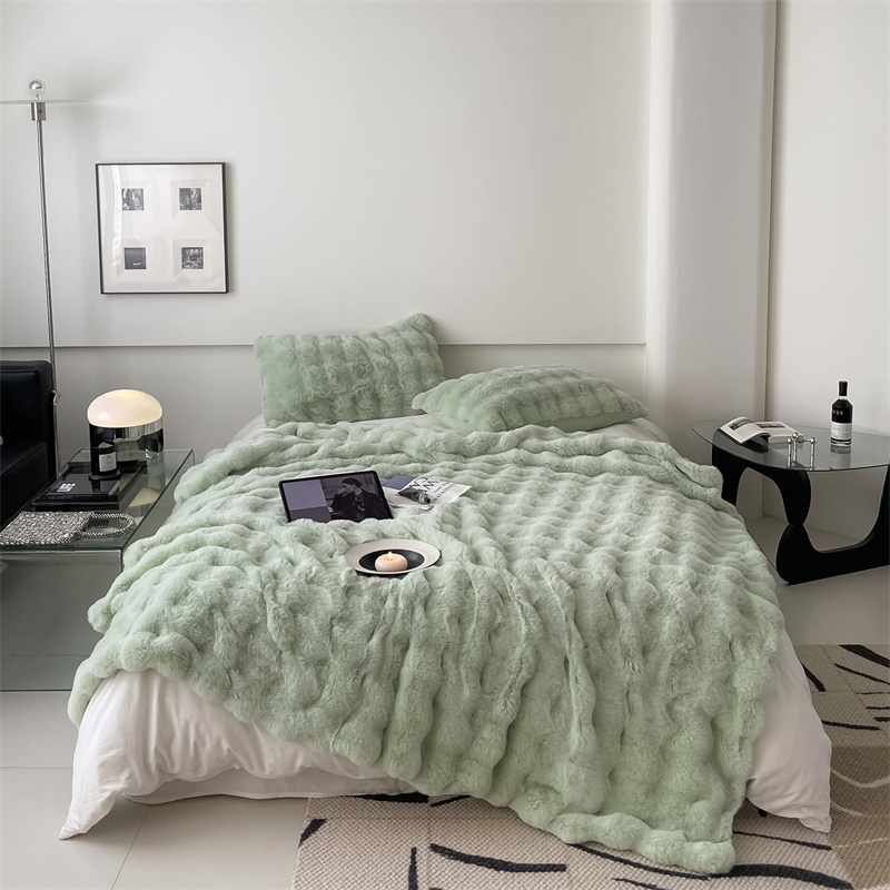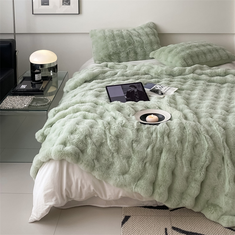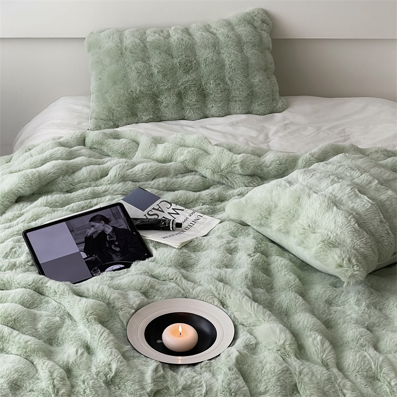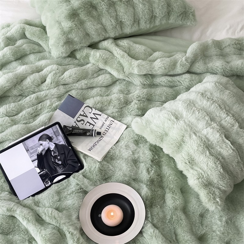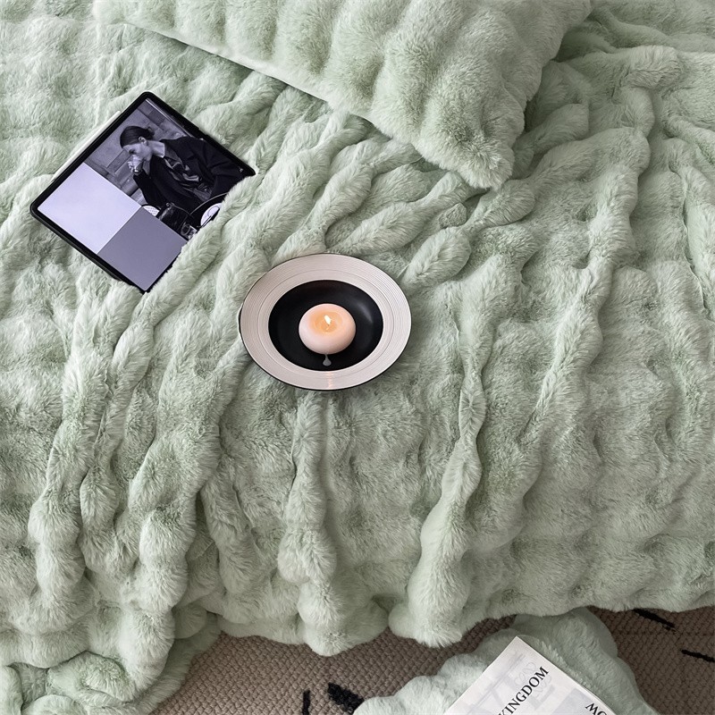 商品名称:潘朵拉 2023新款550g兔兔绒被套毯 兔兔绒被套毯奶绿