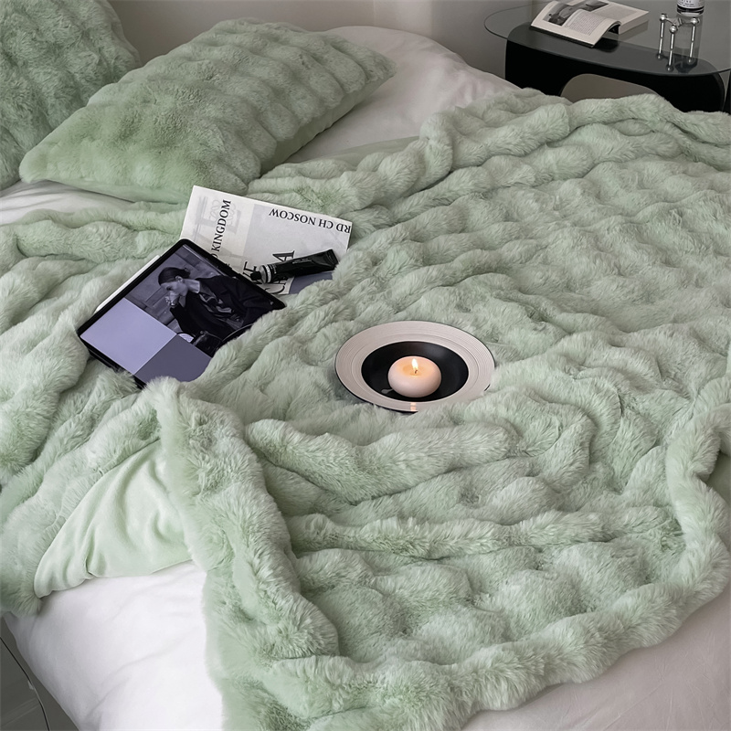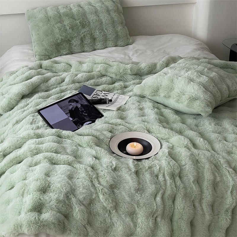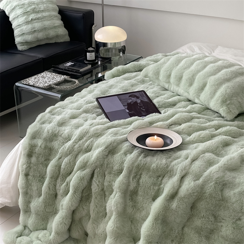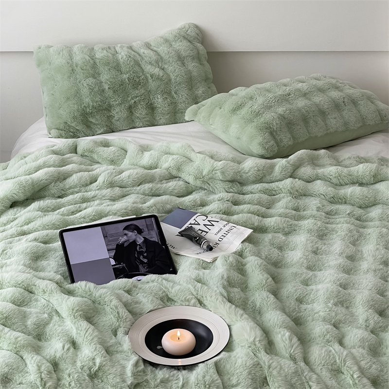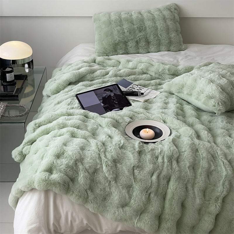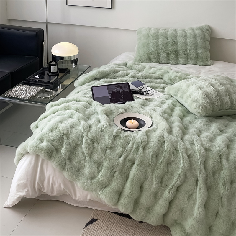 商品名称:潘朵拉 2023新款550g兔兔绒被套毯 兔兔绒被套毯奶绿