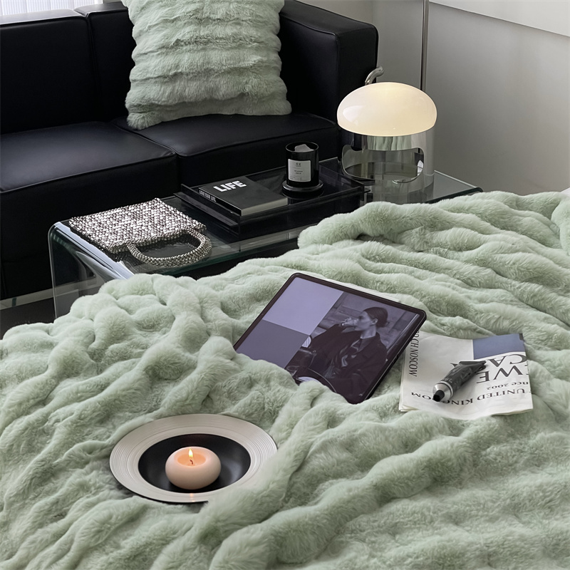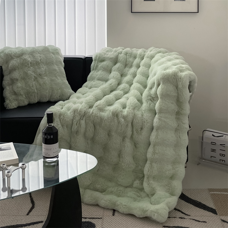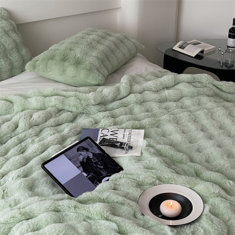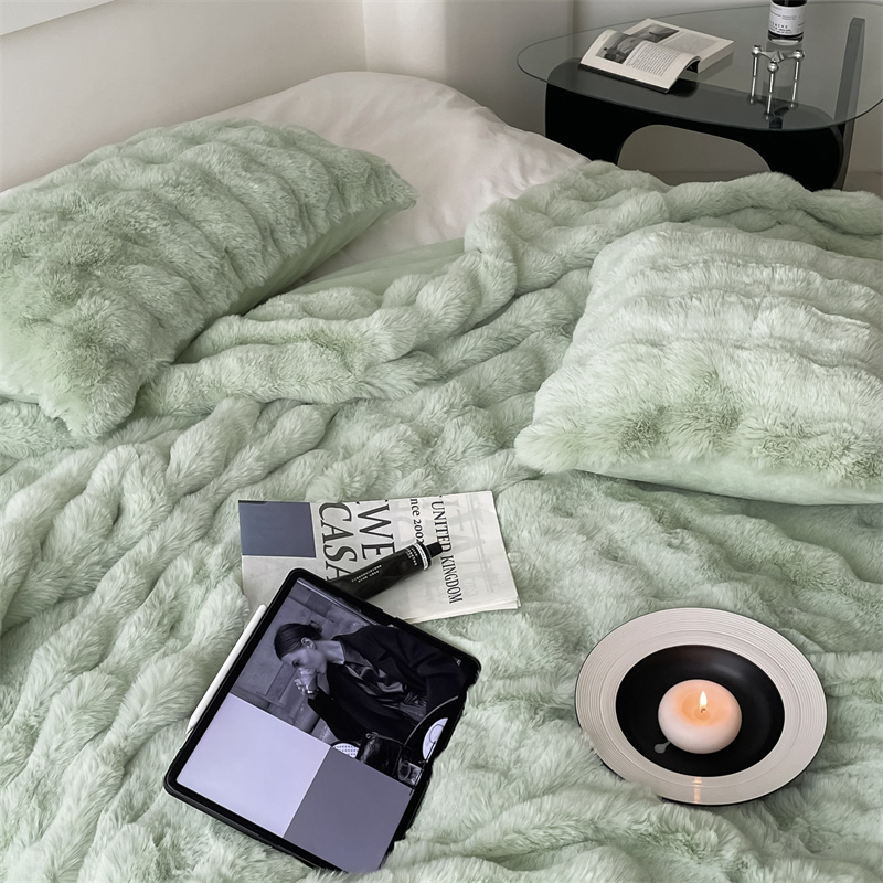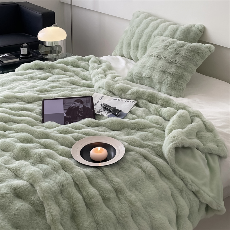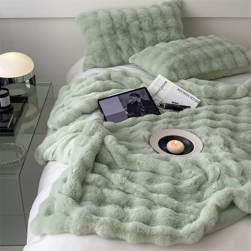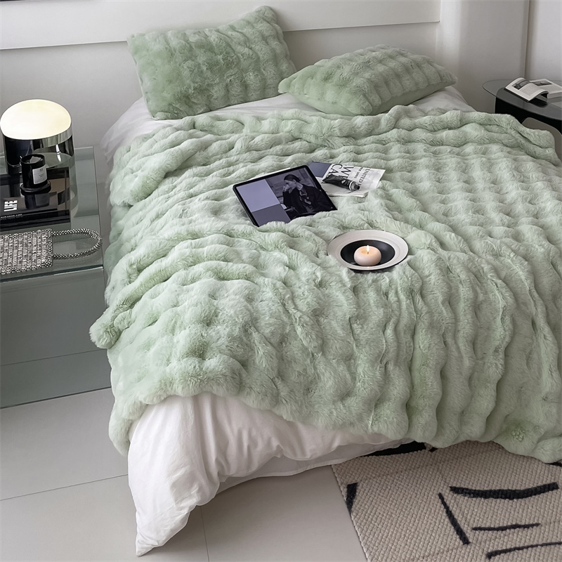 商品名称:潘朵拉 2023新款550g兔兔绒被套毯 兔兔绒被套毯奶绿