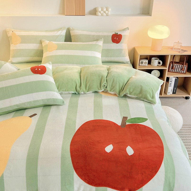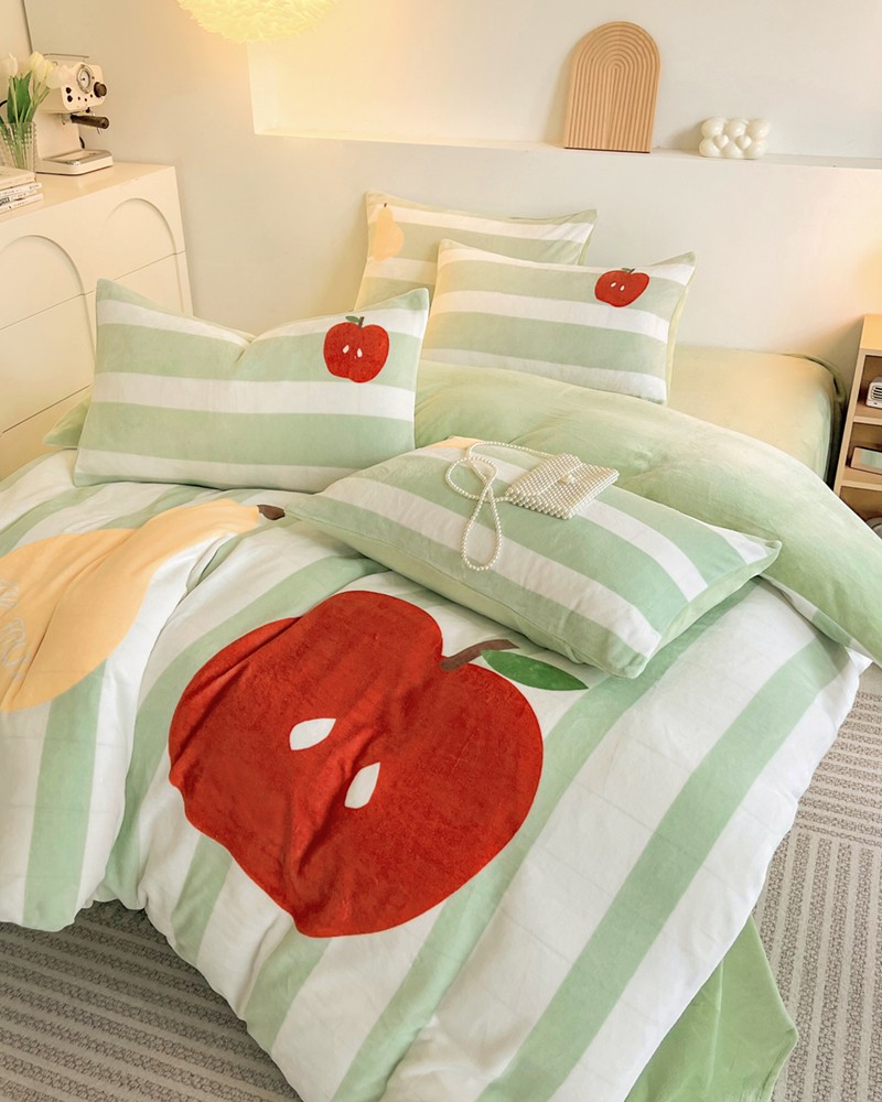 商品名称:寐居家纺 2023新款ins数码印花牛奶绒四件套 水果派