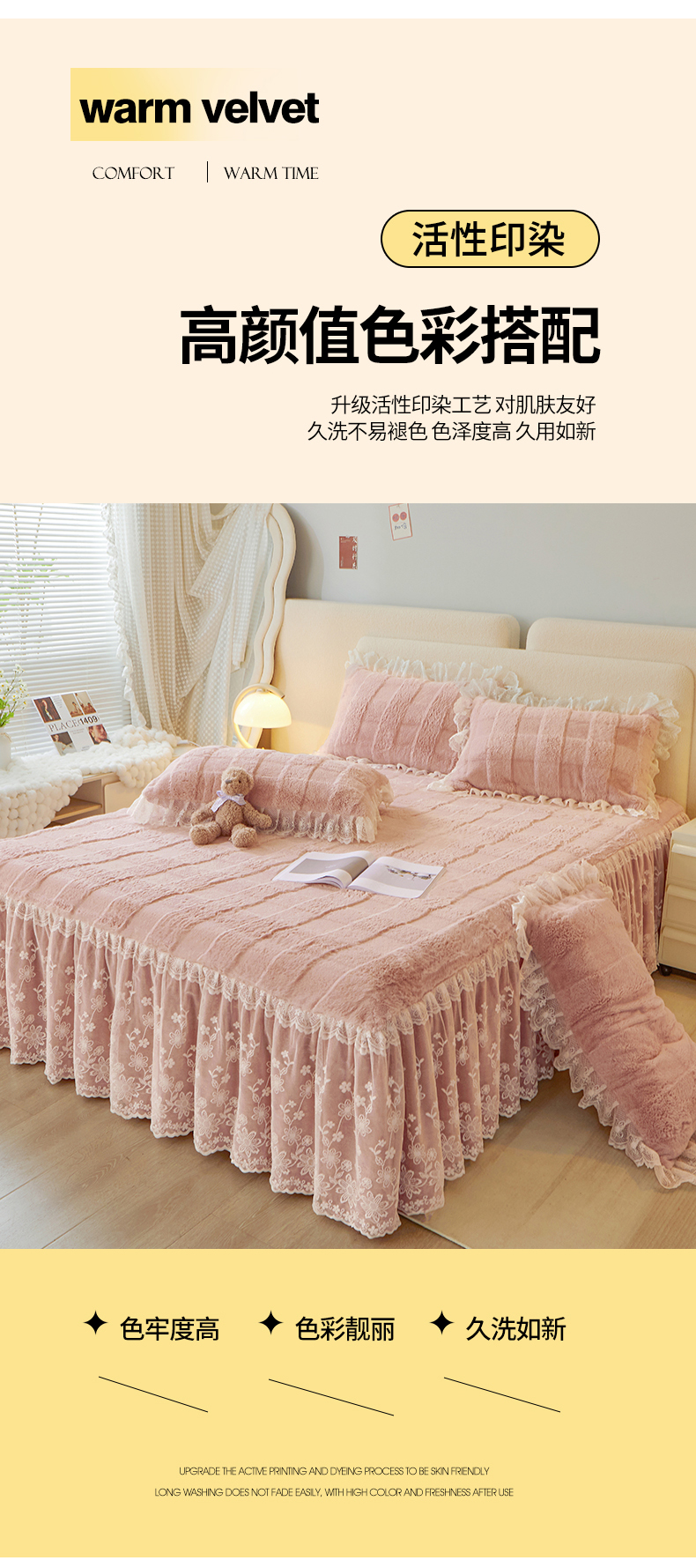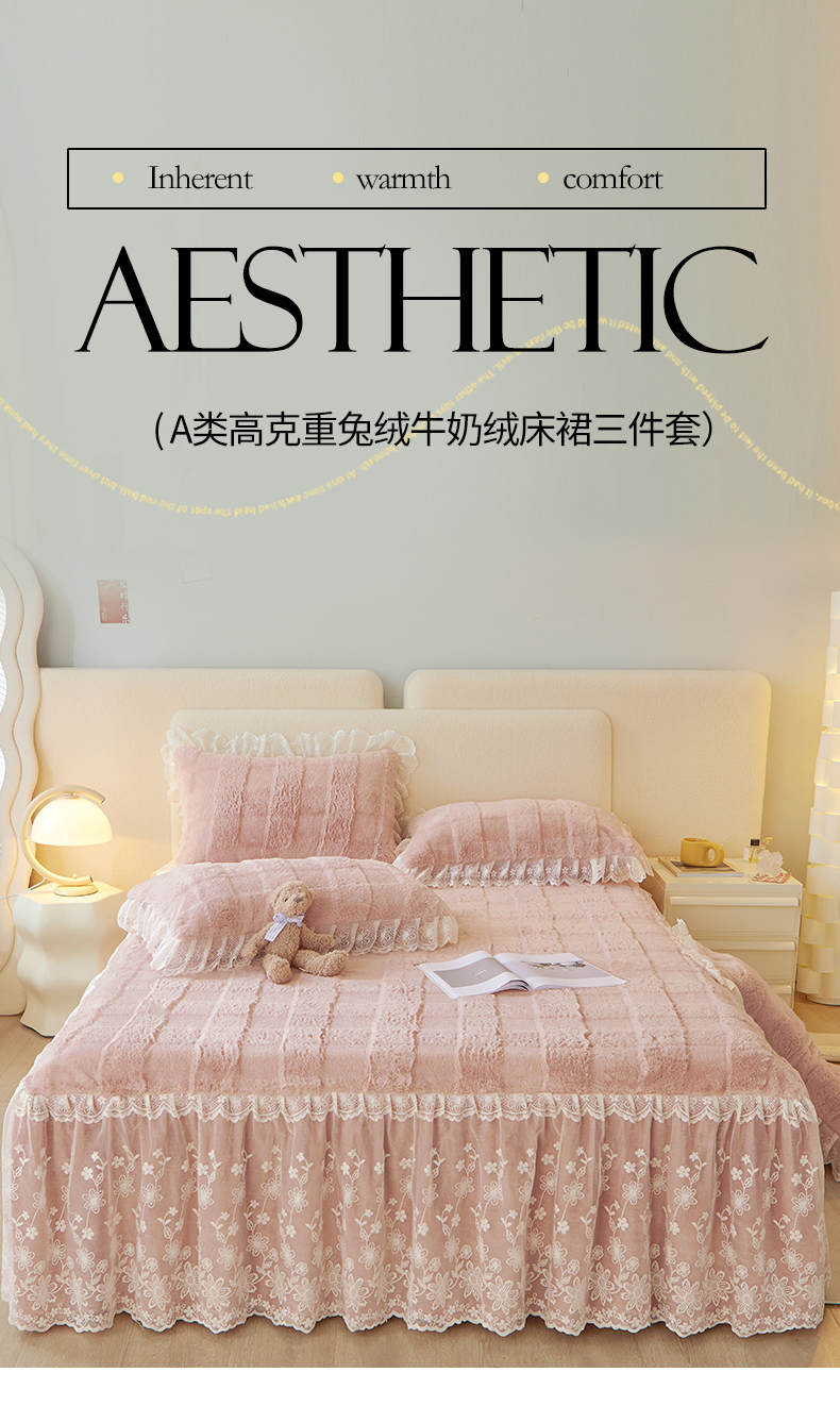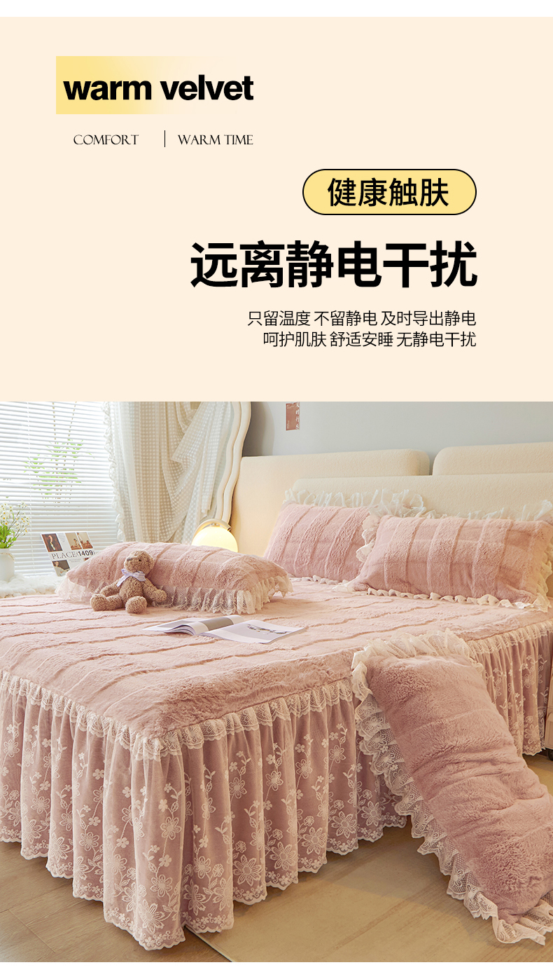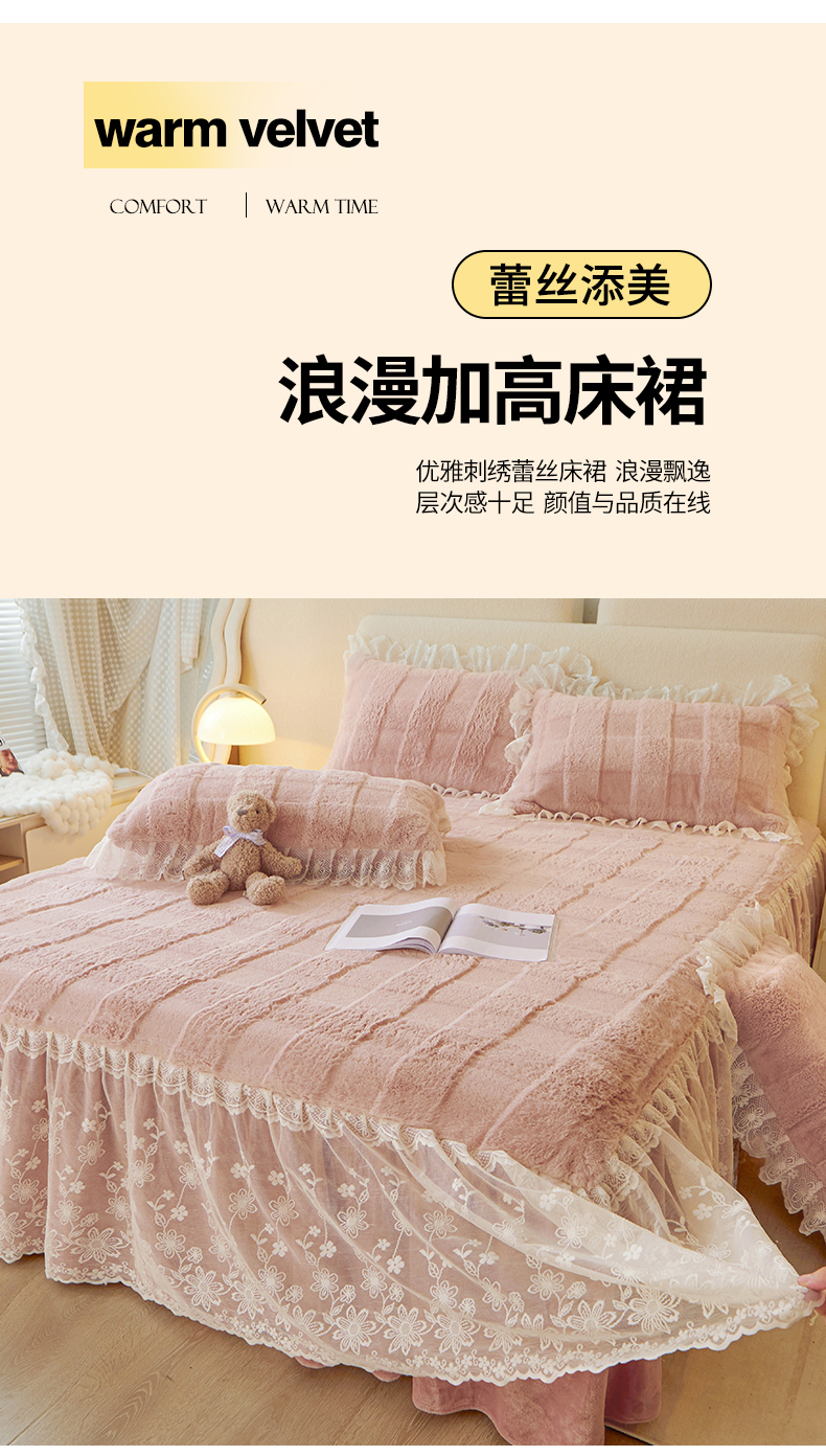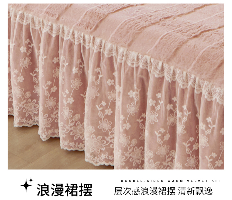 (总)宜凡家纺 2025新款兔绒提花牛奶绒夹棉床裙四件套,爱心 少女粉,爱心 粉紫,爱心 驼色,蝶舞 大红,蝶舞 米色,蝶舞 浅紫,蝶舞 玉色,简爱 苍青,简爱 豆沙紫,简爱 玉色,樱桃 苍青,樱桃 豆沙紫,樱桃 奶油白