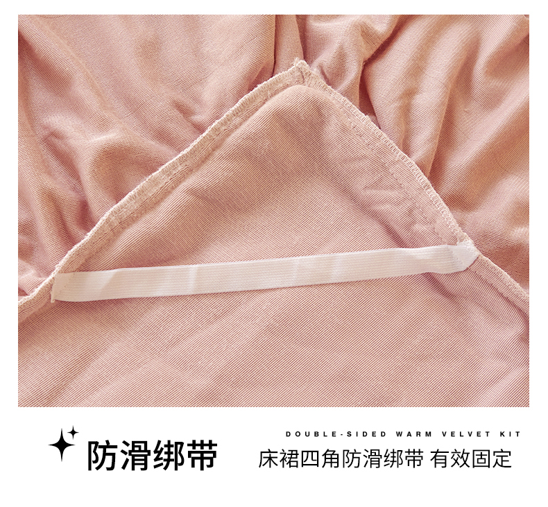 宜凡家纺 2023新款高克重兔绒牛奶绒床裙三件套 方格纹-温莎粉