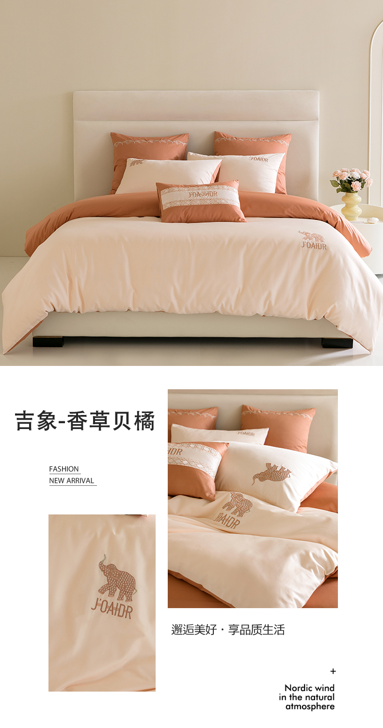 凯磊家纺 新款简约AB版新疆长绒棉.刺绣四件套 吉象-香草贝橘