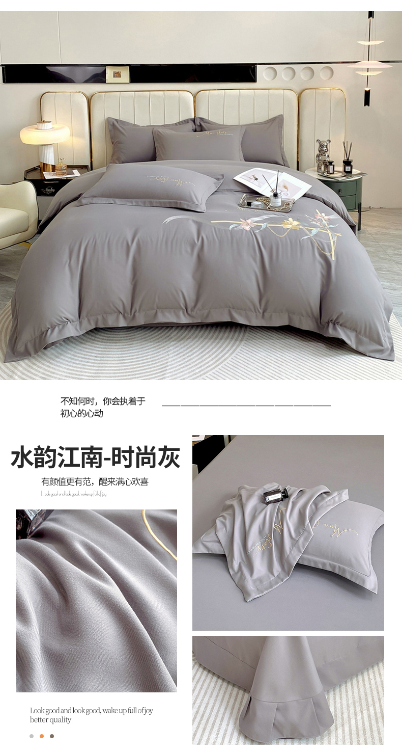 商品名称:帛缔思 2023新款轻奢长绒棉绣花四件套-水韵江南-宽边款 水韵江南-时尚灰