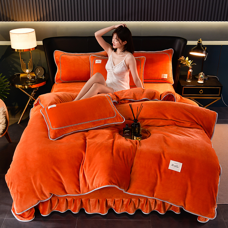 商品名称:畅畅家纺 2023新款纯色8.5斤9斤牛奶绒法莱绒宝宝金貂绒四件套 桔色
