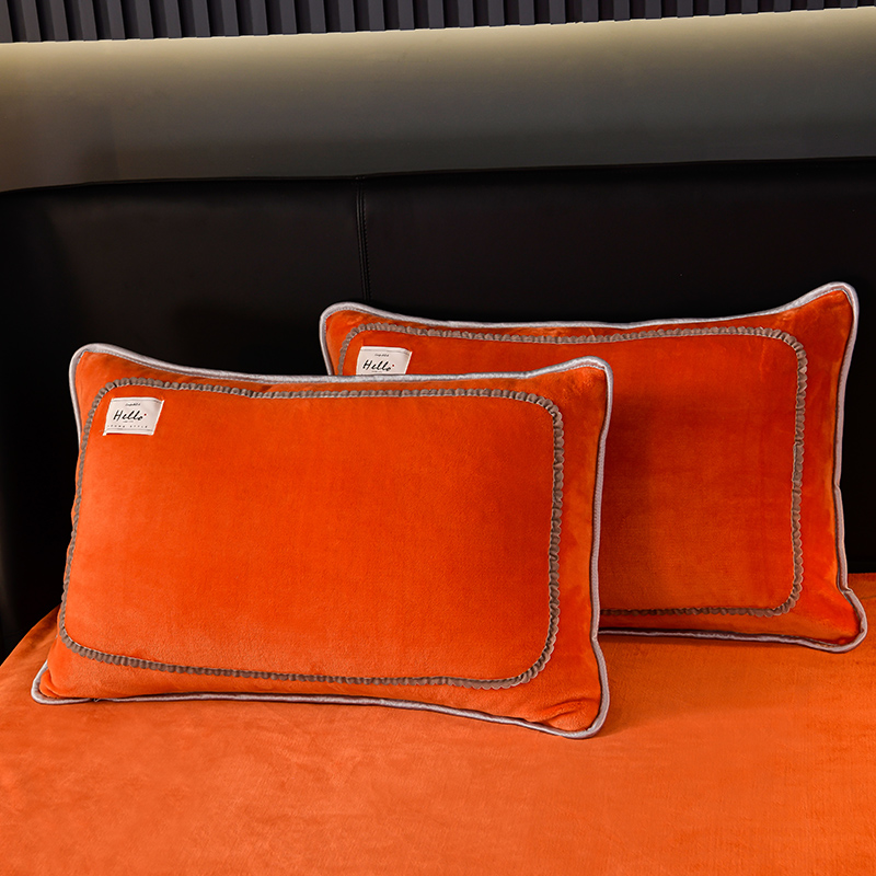 畅畅家纺 2023新款纯色8.5斤9斤牛奶绒法莱绒宝宝金貂绒四件套 桔色