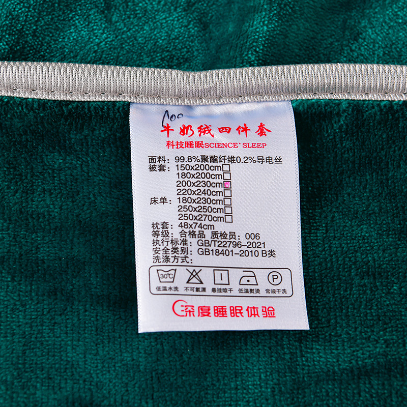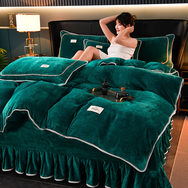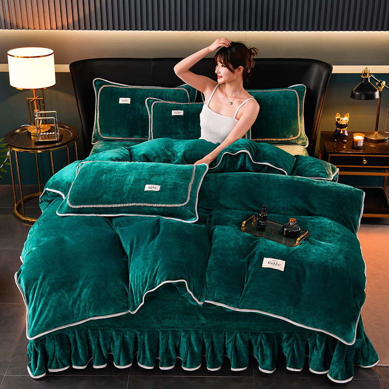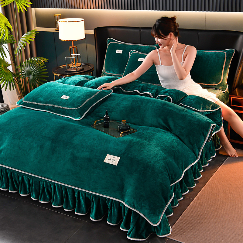 商品名称:畅畅家纺 2023新款纯色8.5斤9斤牛奶绒法莱绒宝宝金貂绒四件套 绿