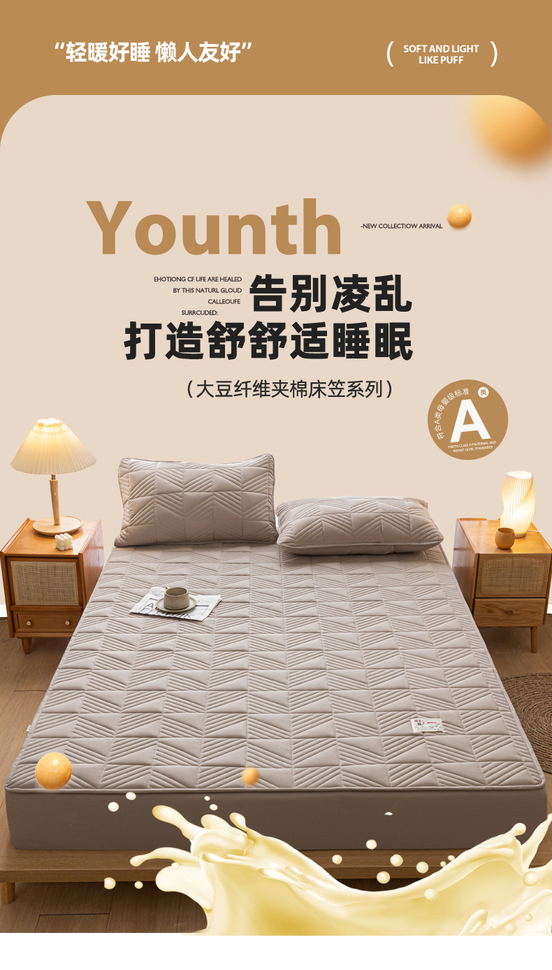 商品名称:米粒家纺 2023新款A类大豆纤维夹棉床笠系列 格调-卡其