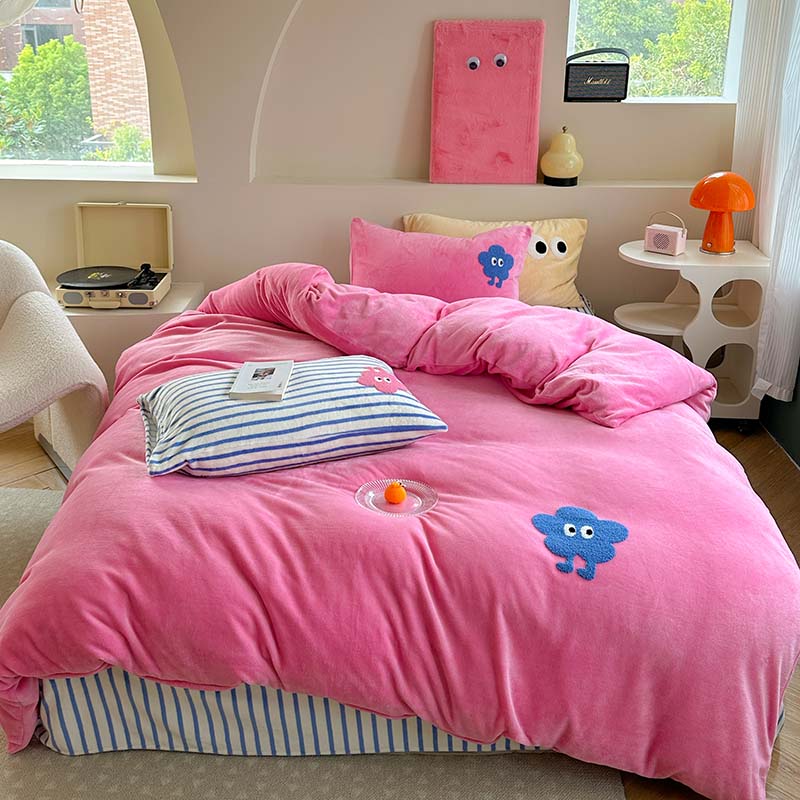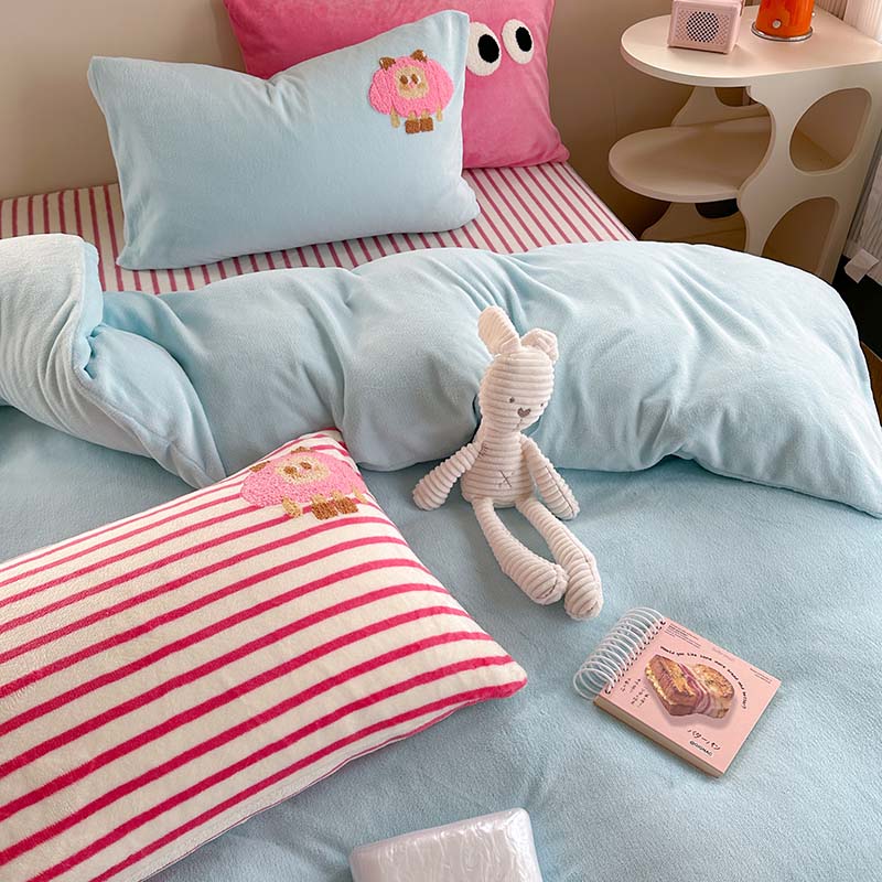 (总)柚子 2023新款高克重牛奶绒多巴胺条纹毛巾绣四件套