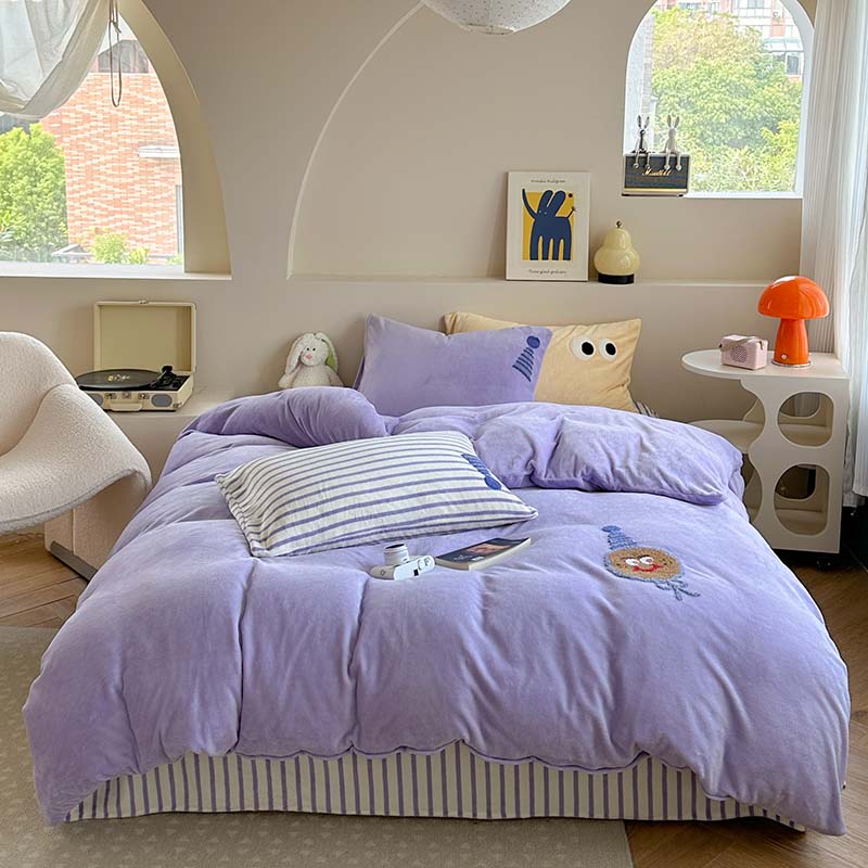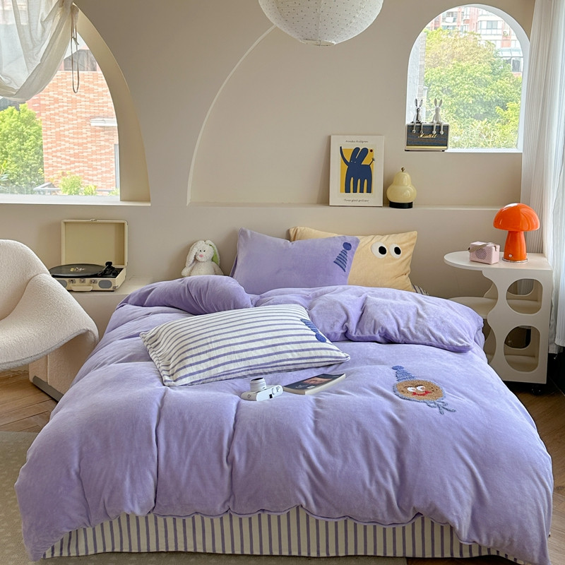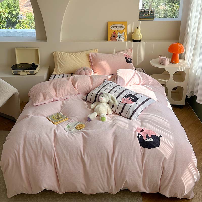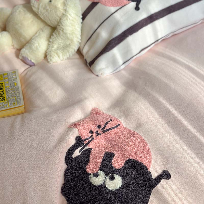 (总)柚子YOUTH 2025新款加厚牛奶绒卡通毛巾绣四件套-印加绣送同款毛毯,蛋糕小狗,公主猫,头套猫,兔兔花园,小伙伴,雪纳瑞