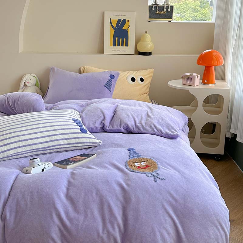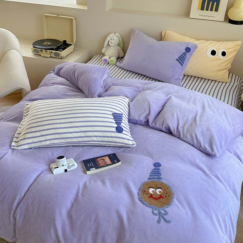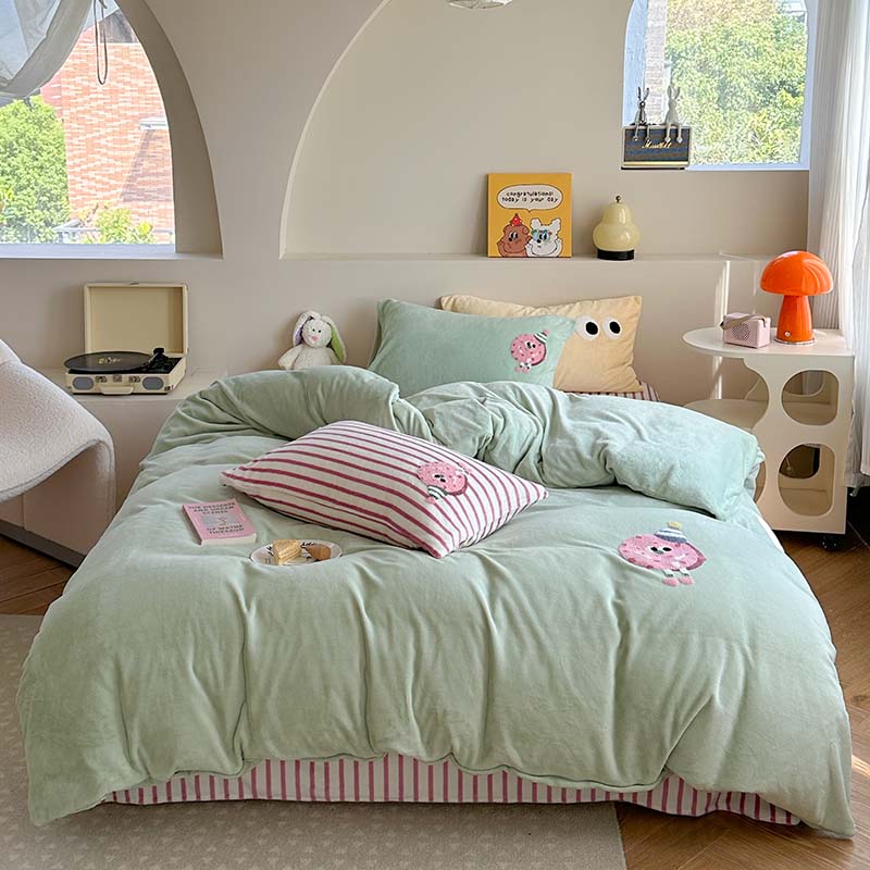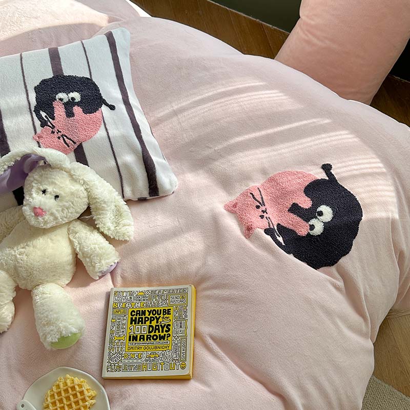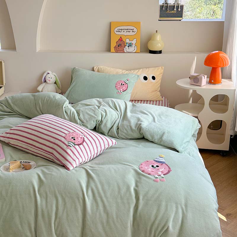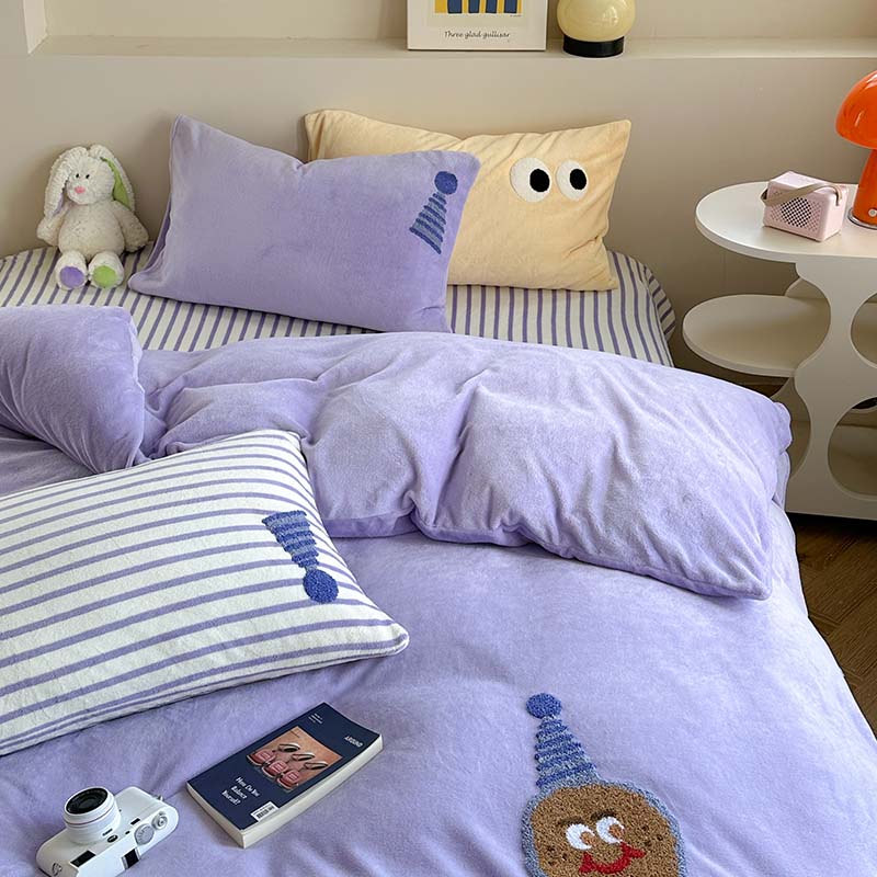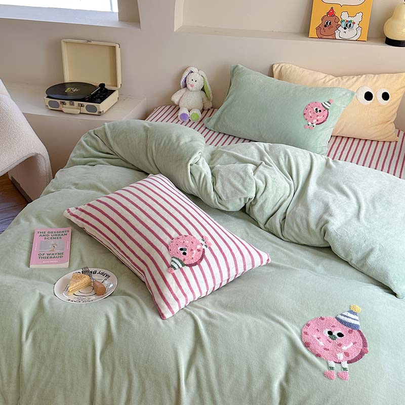 (总)柚子YOUTH 2025新款双面泰迪绒毛巾绣四件套,甜甜圈,快乐企鹅,森林聚会,甜酷KT,小茄子,雪人王国