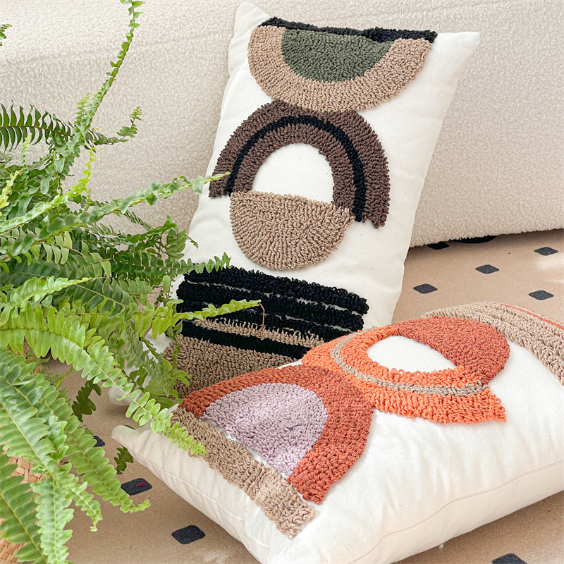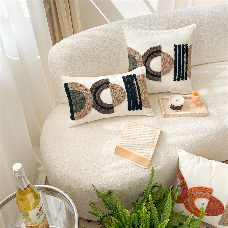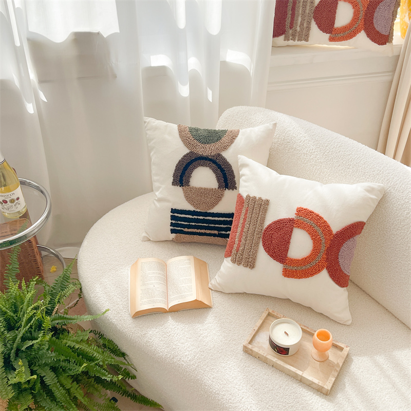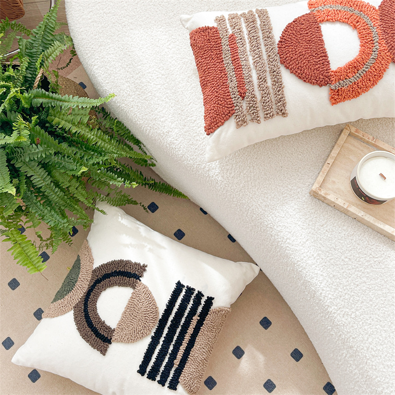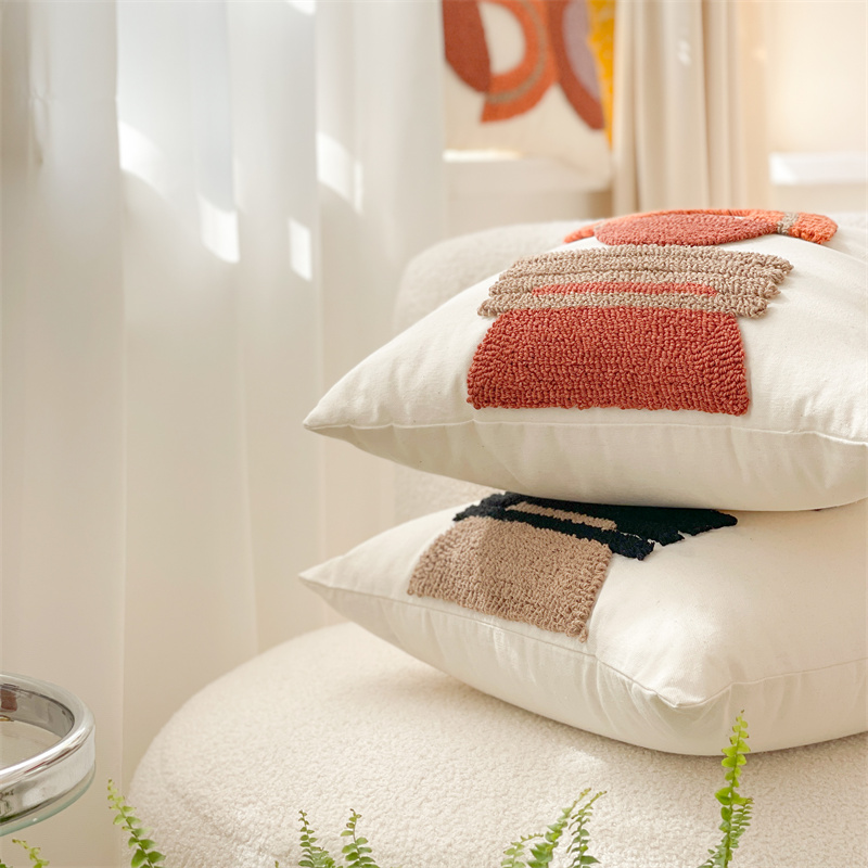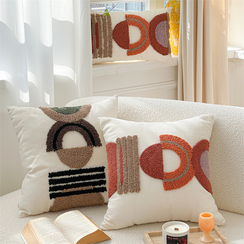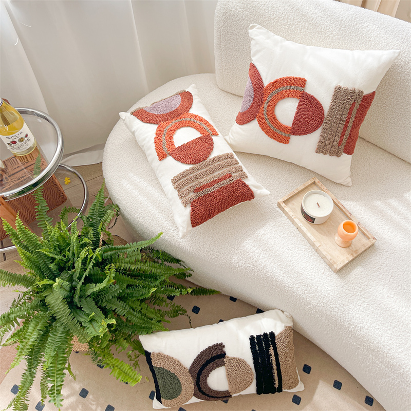 (总)918拾朵家居 2023新款简约风圈绒刺绣抱枕,灰咖(方),灰咖(长),洋橘(方),洋橘(长)