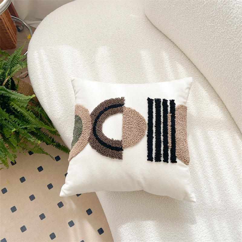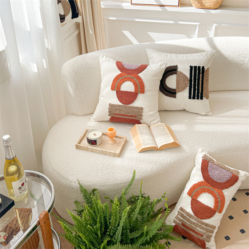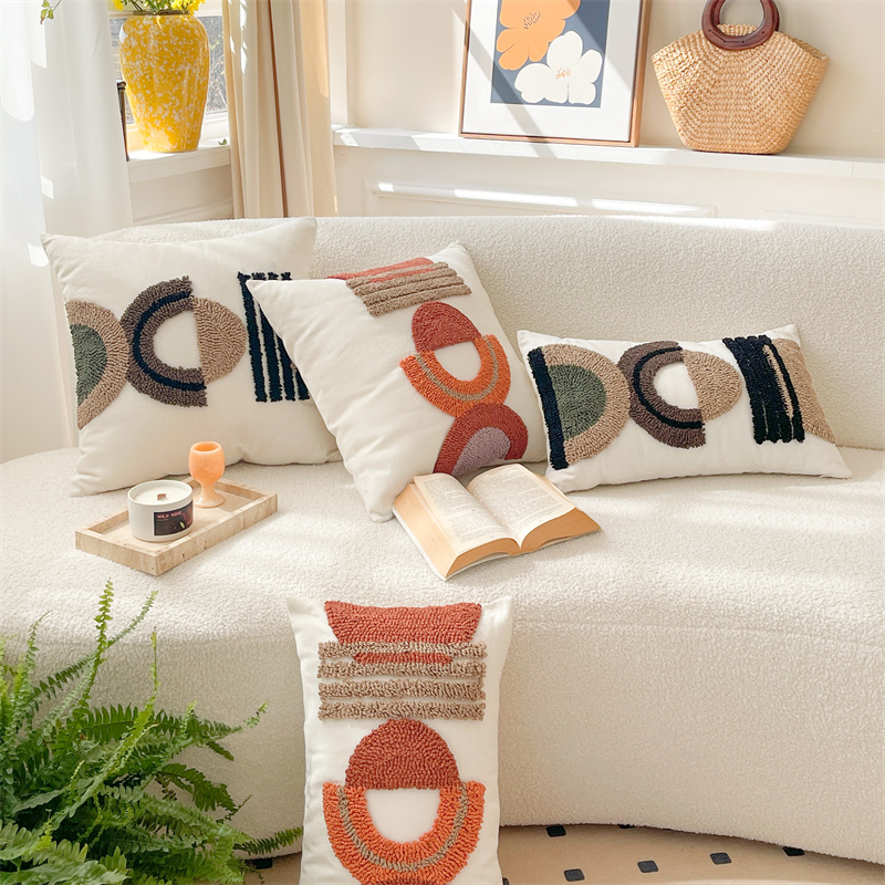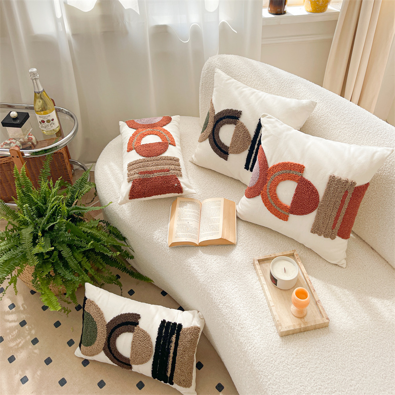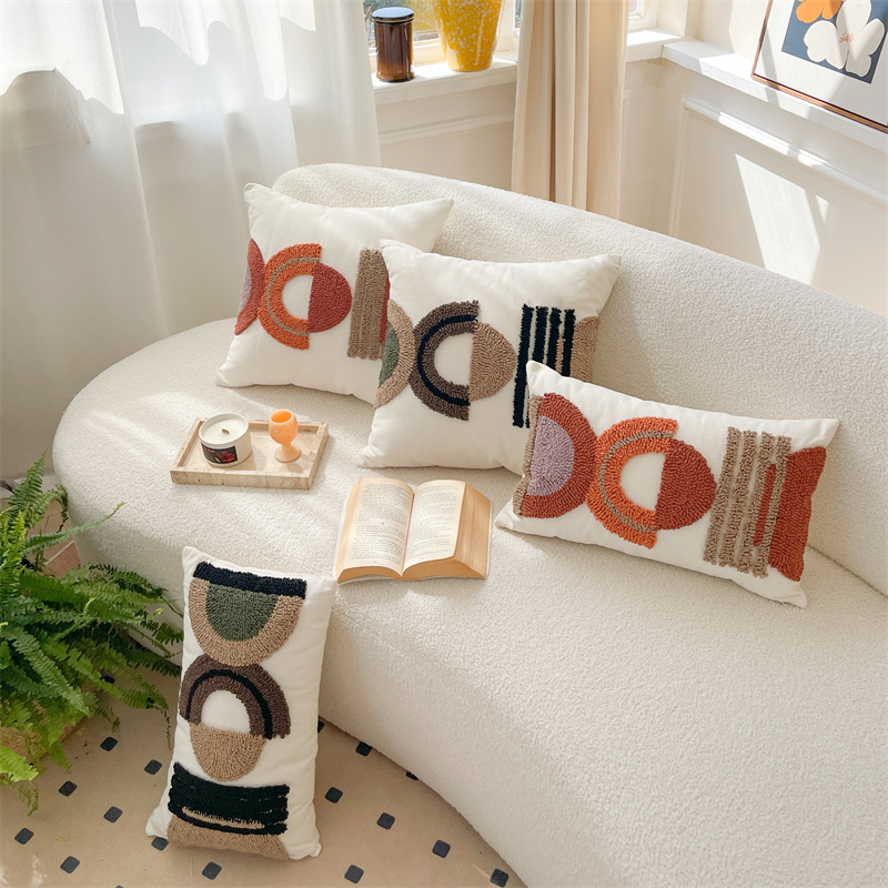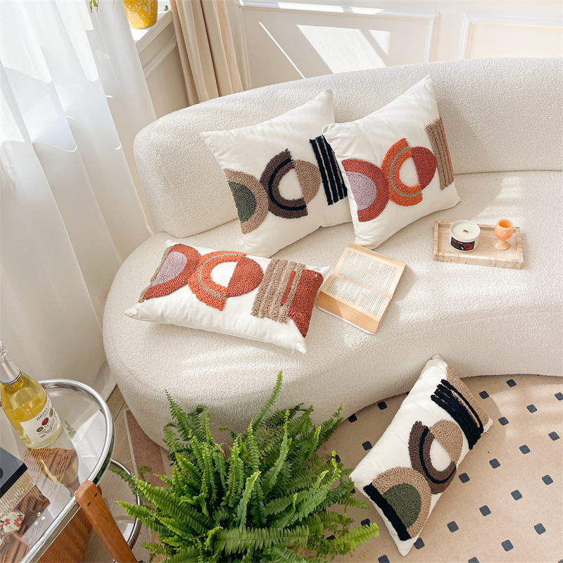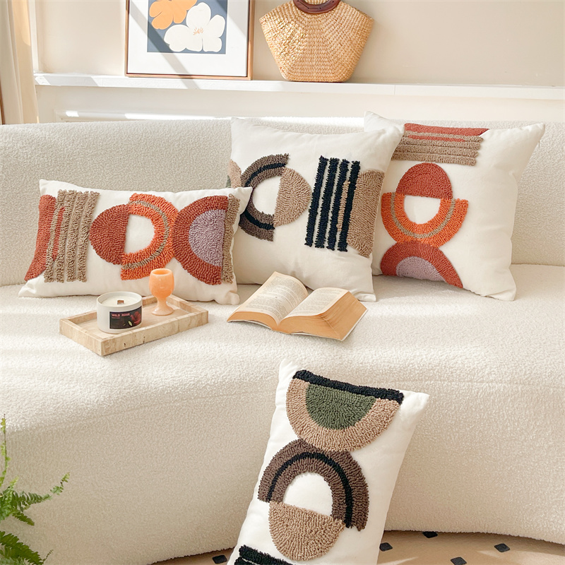 (总)918拾朵家居 2023新款简约风圈绒刺绣抱枕,灰咖(方),灰咖(长),洋橘(方),洋橘(长)