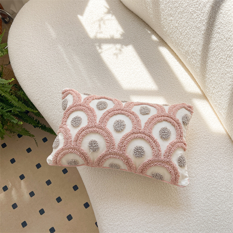 918拾朵家居 2023新款田园风圈绒刺绣抱枕 波纹(长)
