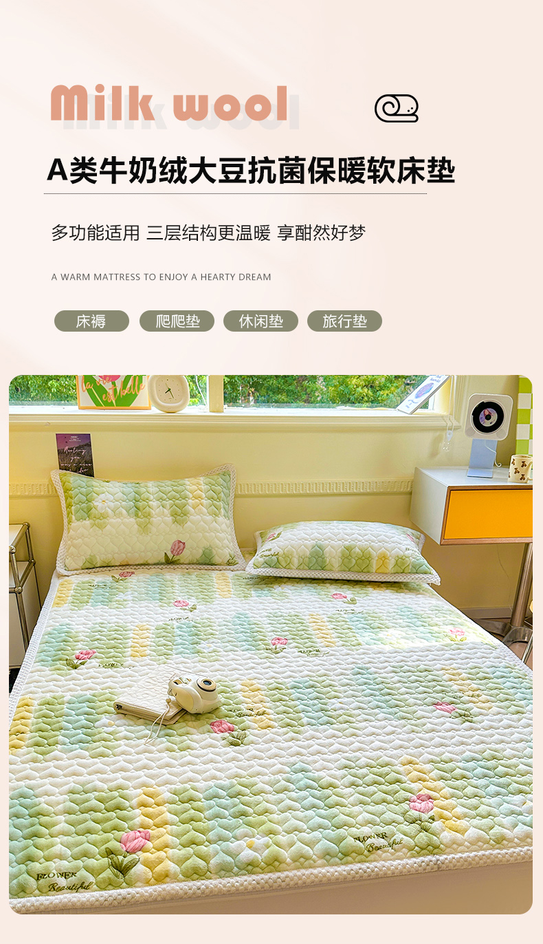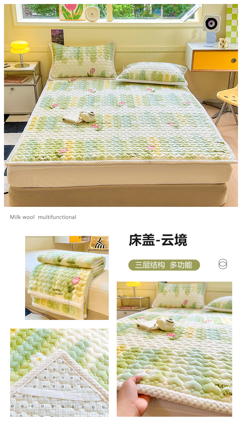 商品名称:宜代光年 2023新款牛奶绒夹棉床垫床盖 床盖-云境