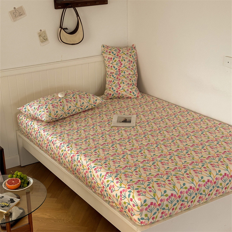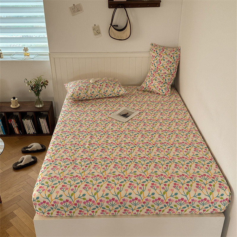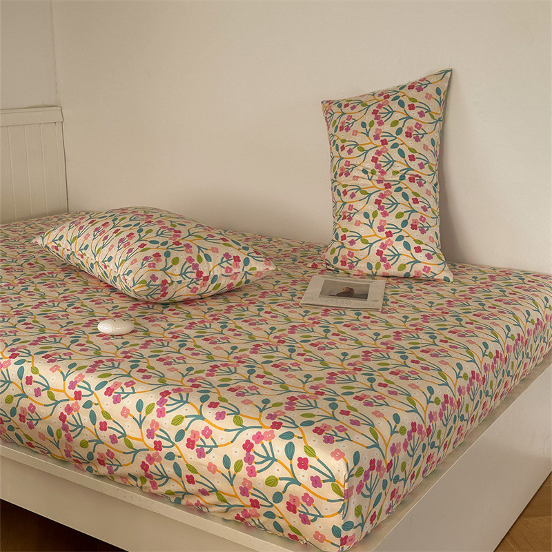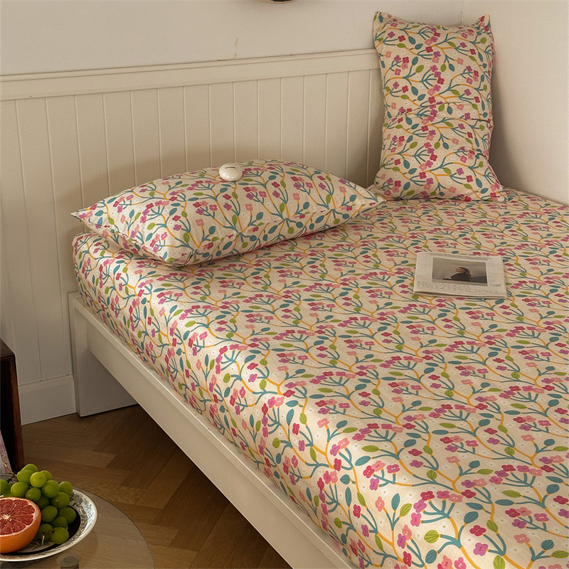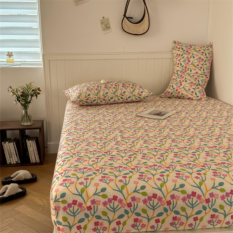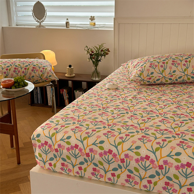 洋铭区 2023新款全棉单品床笠小花紫粉