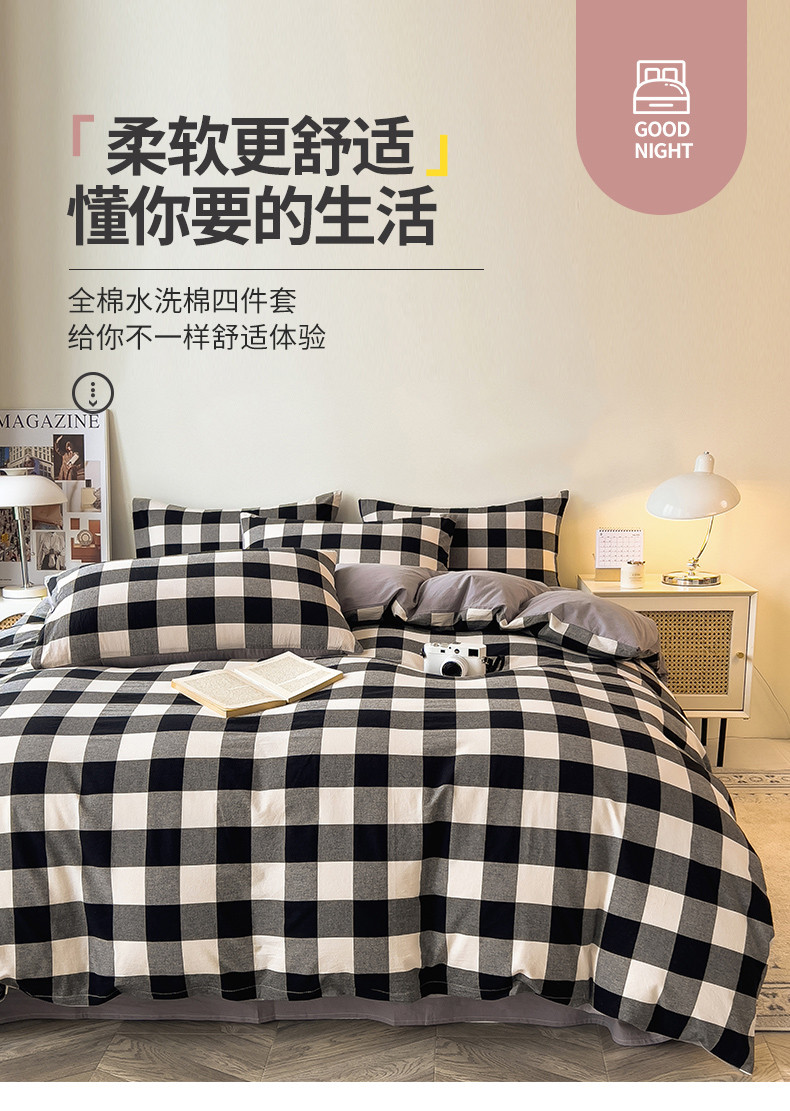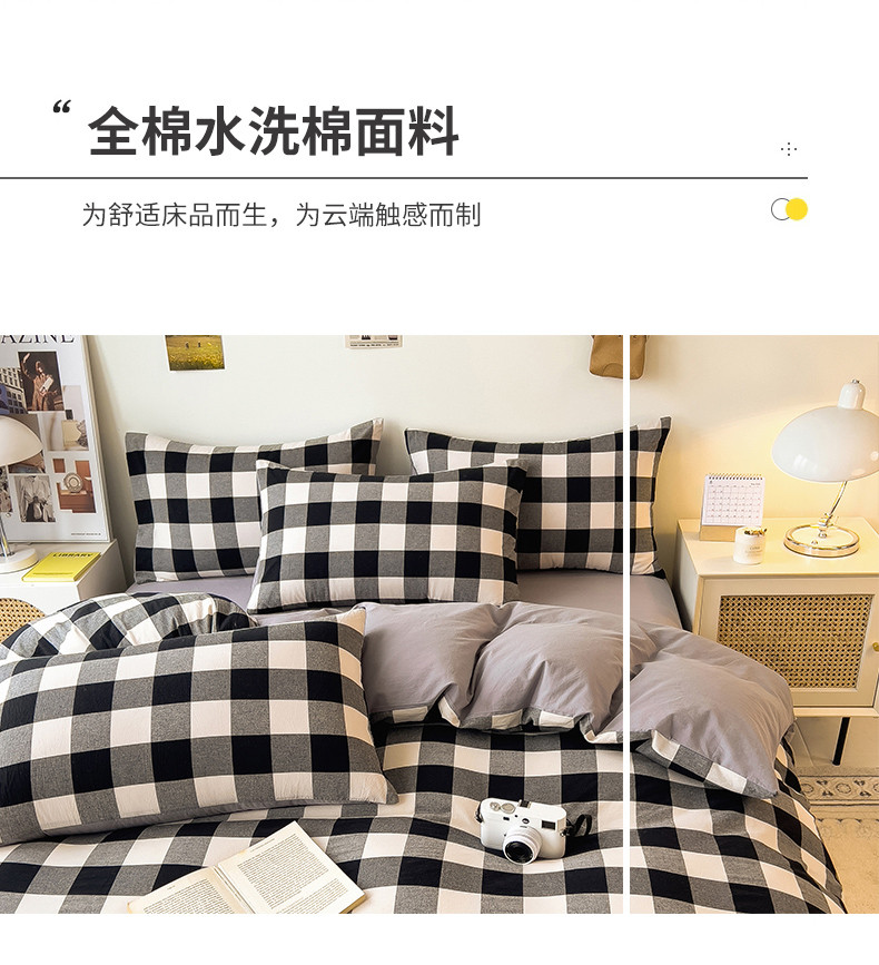 当前位置: 91家纺网 > 商品网购 > 床品套件 > 四件套 > 水洗棉四件套 > 芃成 2023新款全棉水洗棉四件套 黑白中格