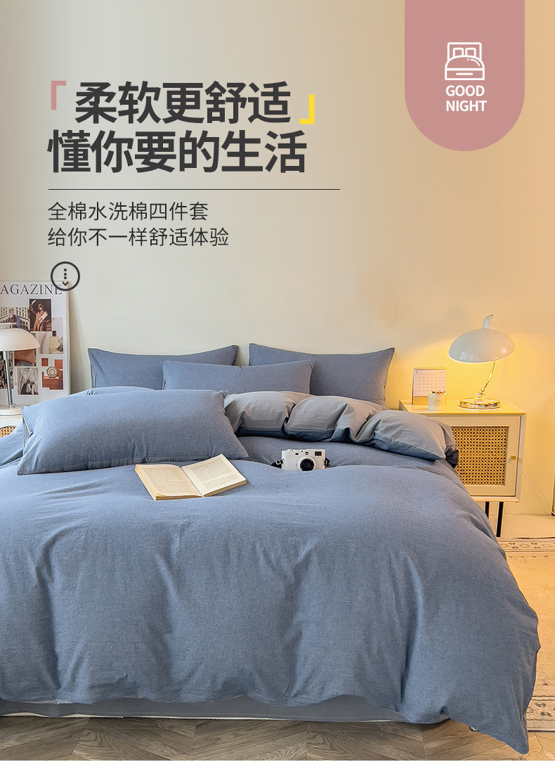 当前位置: 91家纺网 > 商品网购 > 床品套件 > 四件套 > 水洗棉四件套 > 芃成 2023新款全棉水洗棉四件套 牛仔蓝