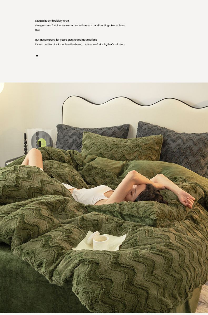 当前位置: 91家纺网 > 商品网购 > 床品套件 > 四件套 > 牛奶绒四件套 > (总)寐眠 2023新款懒兔毛牛奶绒四件套水波纹