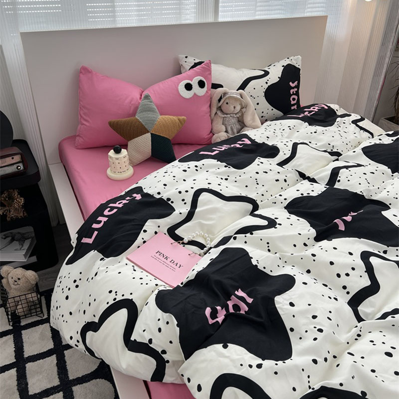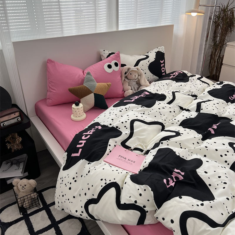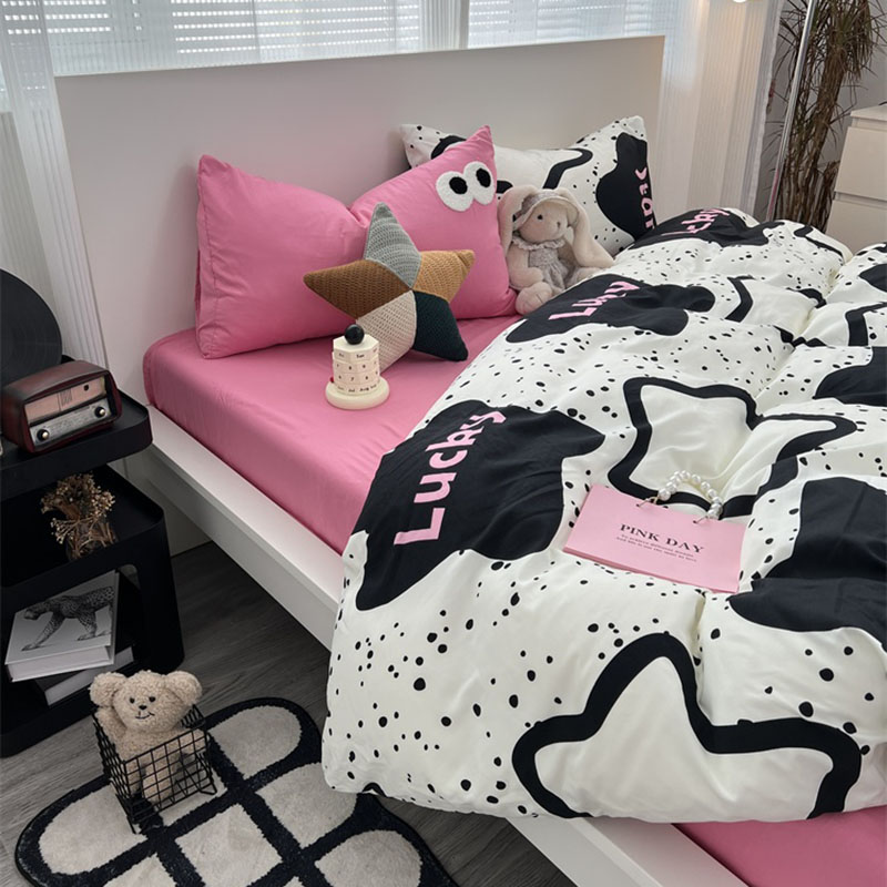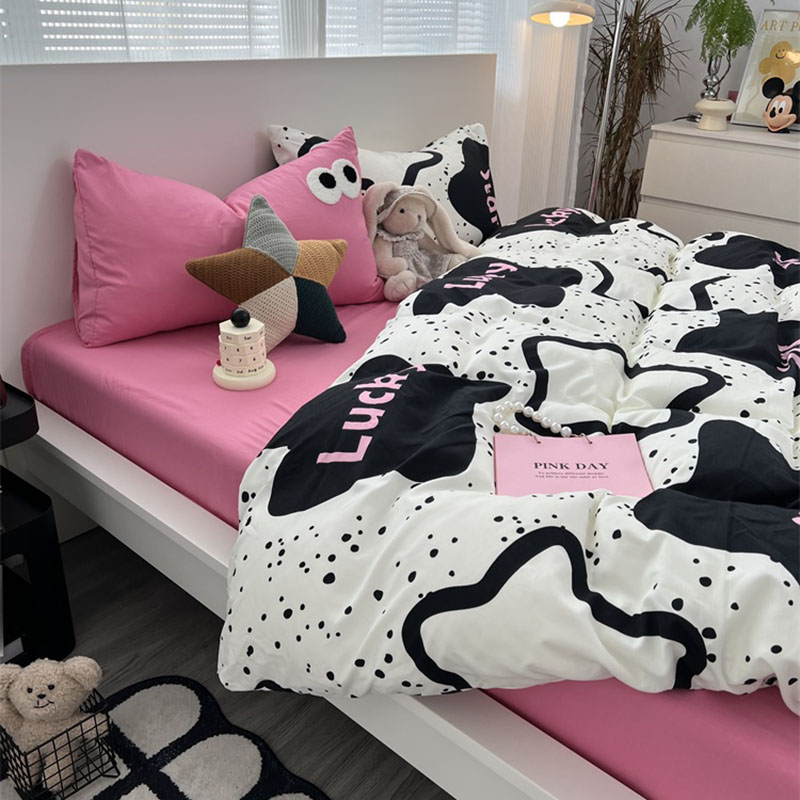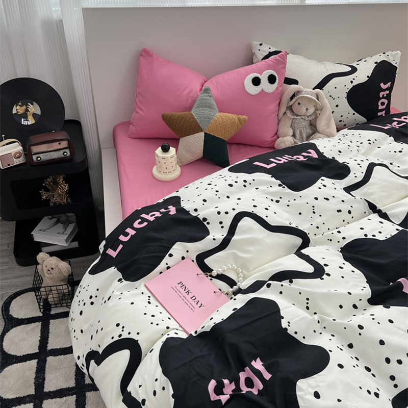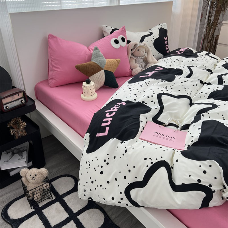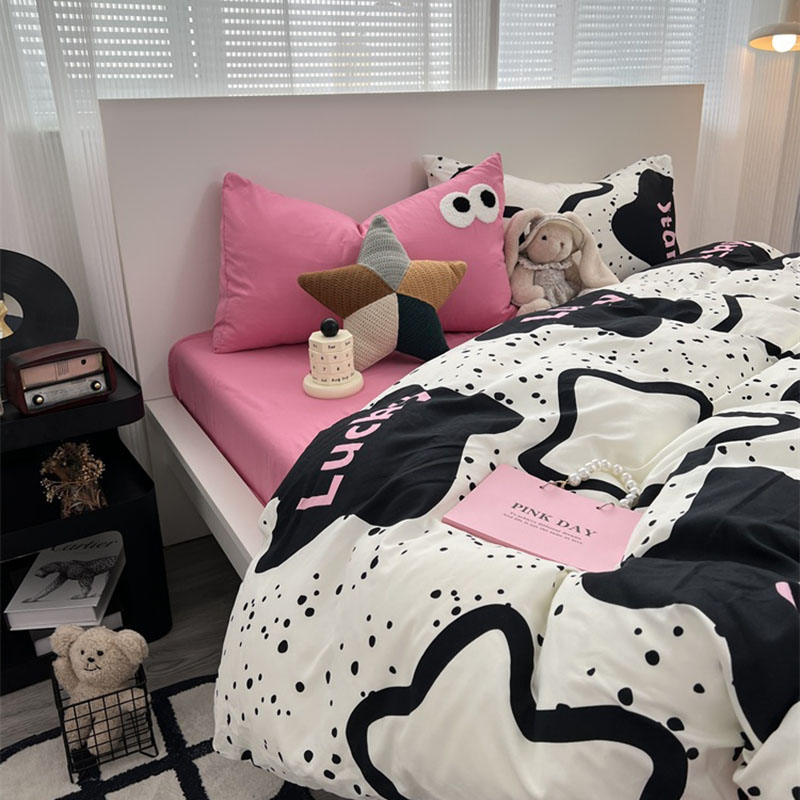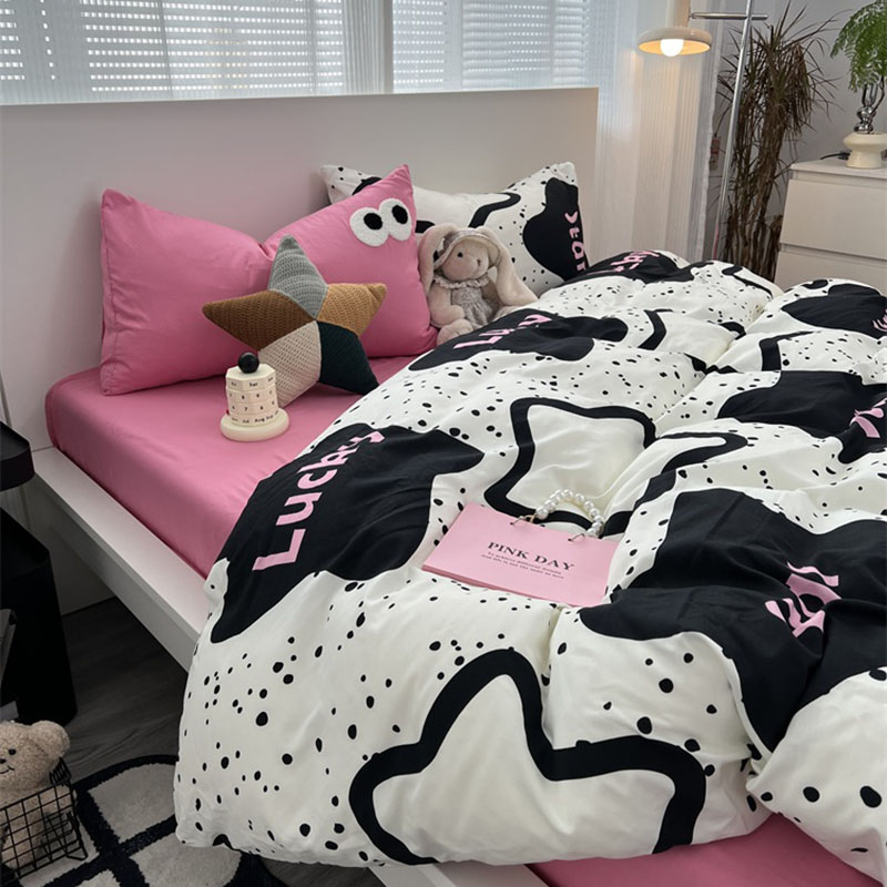 当前位置: 91家纺网 > 商品网购 > 床品套件 > 四件套 > 水洗棉四件套 > 奈颜 2023新款爆款水洗棉双层纱毛巾绣甜酷风四件套-大眼(手机实拍) 甜酷幸运星-枚粉