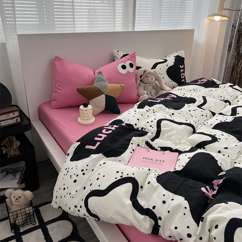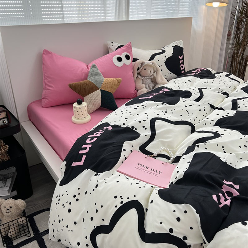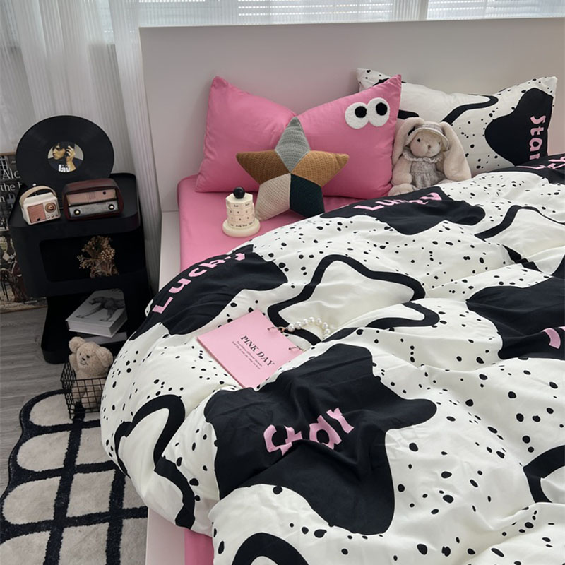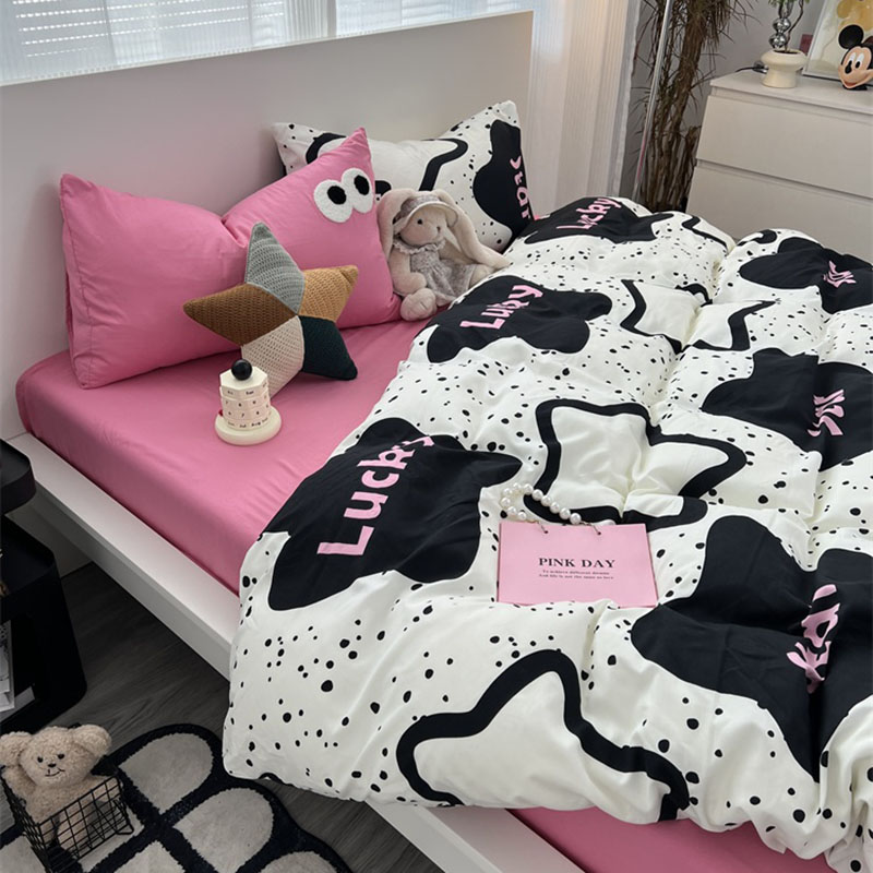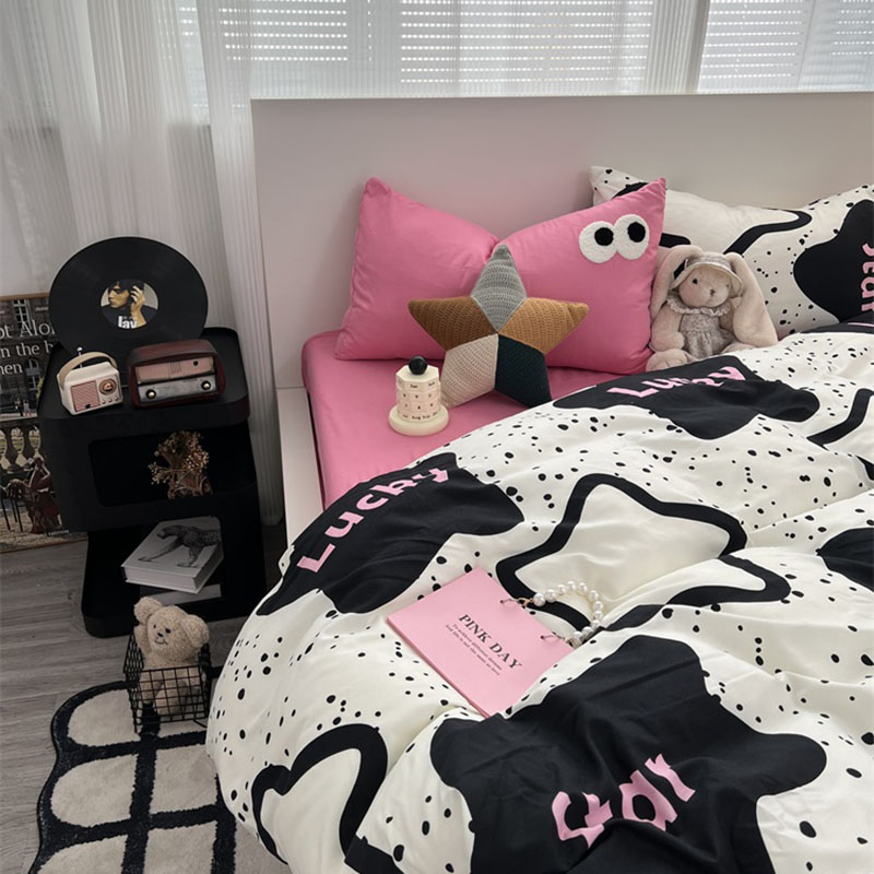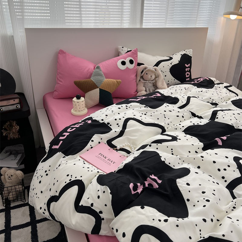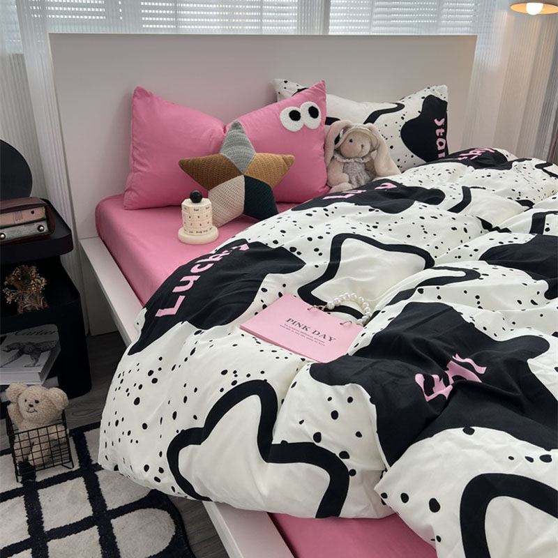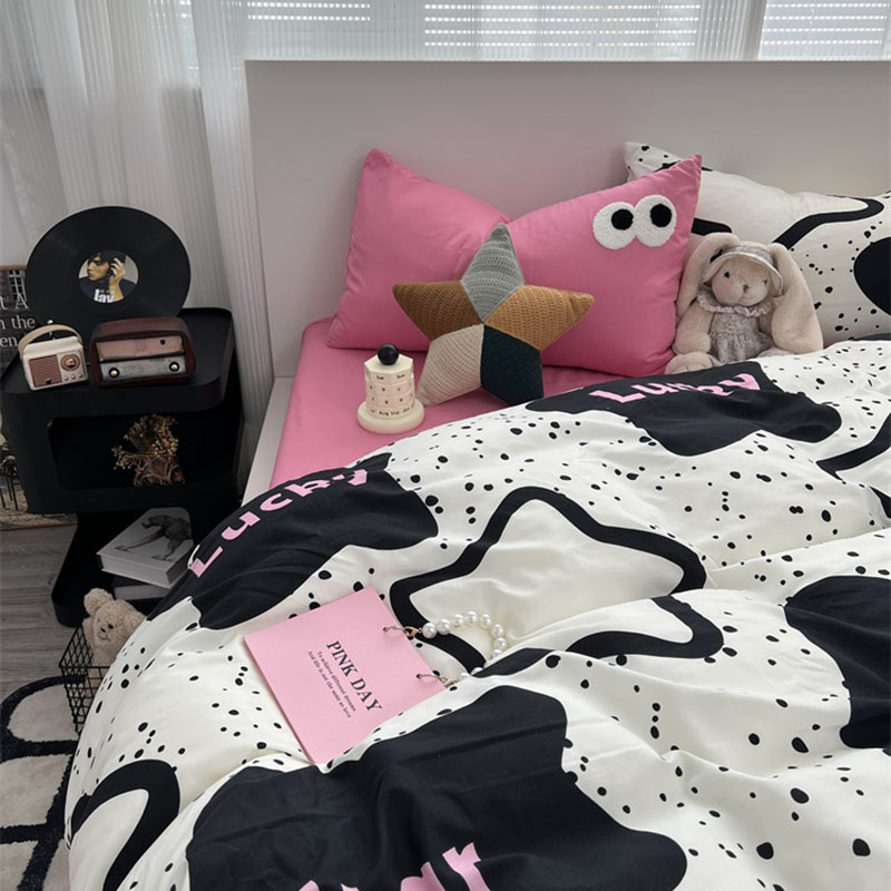 当前位置: 91家纺网 > 商品网购 > 床品套件 > 四件套 > 水洗棉四件套 > 奈颜 2023新款爆款水洗棉双层纱毛巾绣甜酷风四件套-大眼(手机实拍) 甜酷幸运星-枚粉