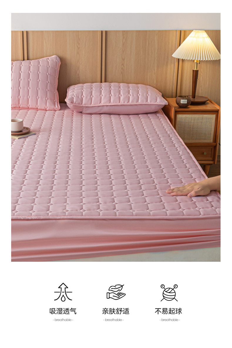 • 91家纺网 家纺一手货源 找家纺 宇淳 2026跨境外贸水洗棉夹棉单件床签床垫保护套四季通用防滑床罩梦思床垫保护罩三件套非全棉 浅粉