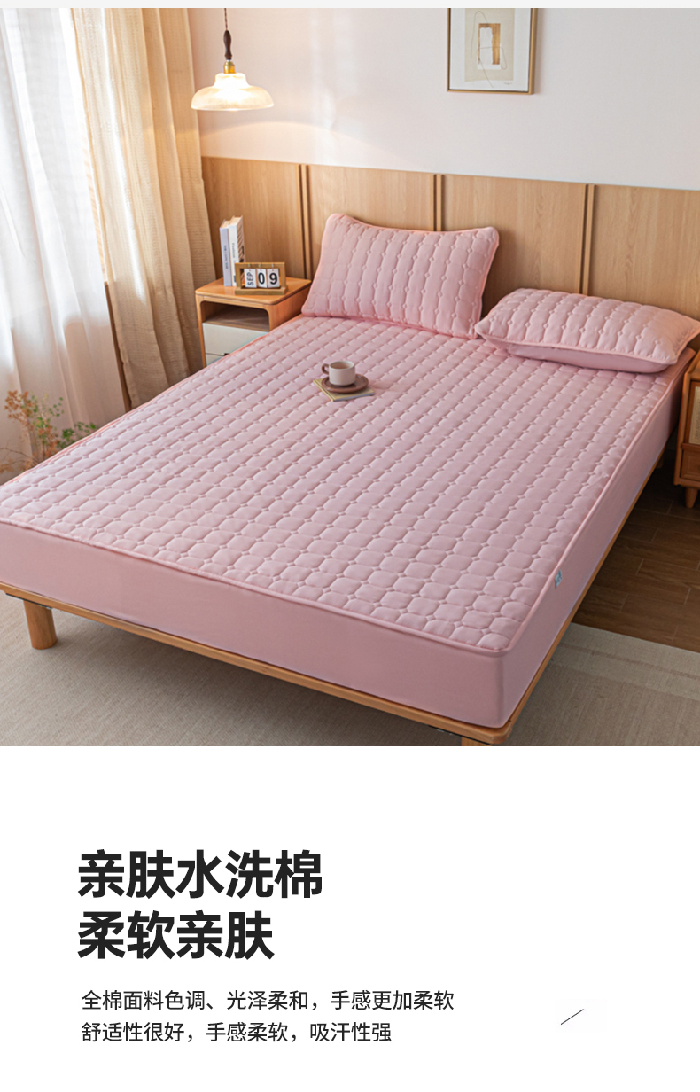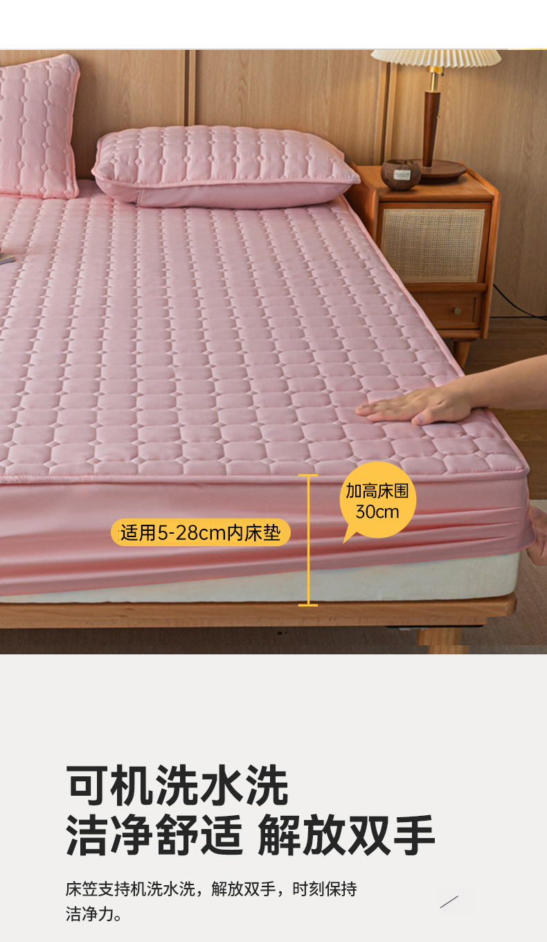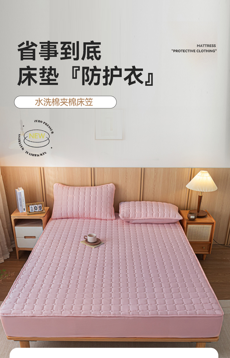当前位置: 91家纺网 > 商品网购 > 床上用品 > 床笠 > 宇淳 2026跨境外贸水洗棉夹棉单件床签床垫保护套四季通用防滑床罩梦思床垫保护罩三件套非全棉 浅粉