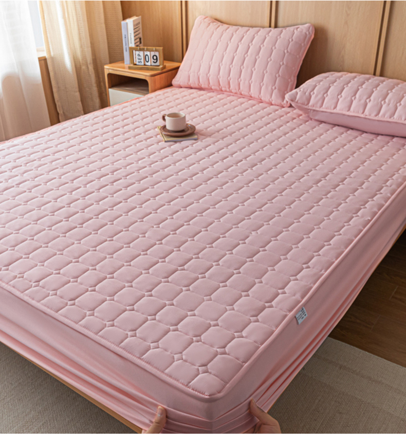 宇淳 2026跨境外贸水洗棉夹棉单件床签床垫保护套四季通用防滑床罩梦思床垫保护罩三件套非全棉 浅粉