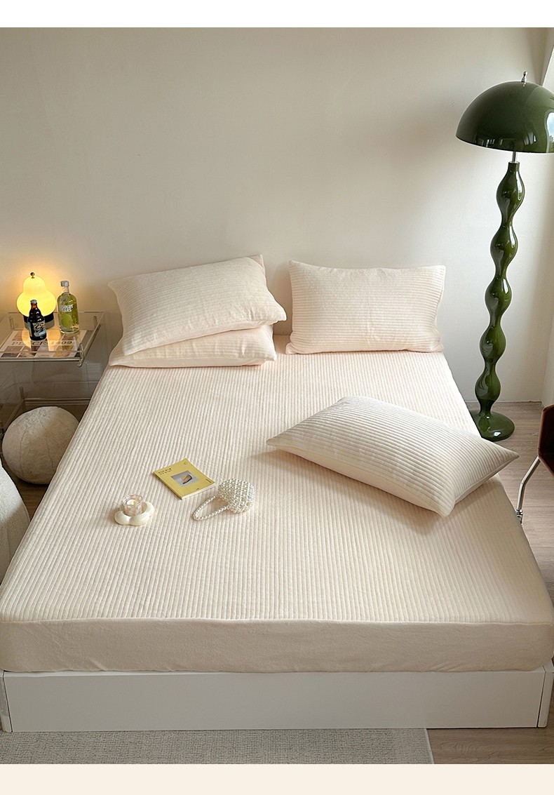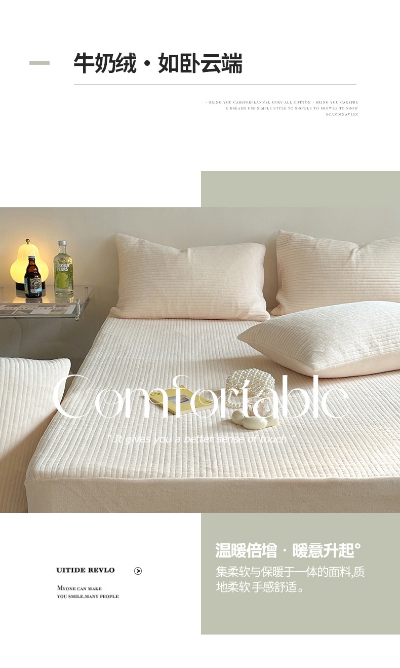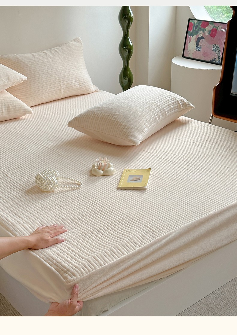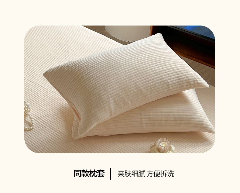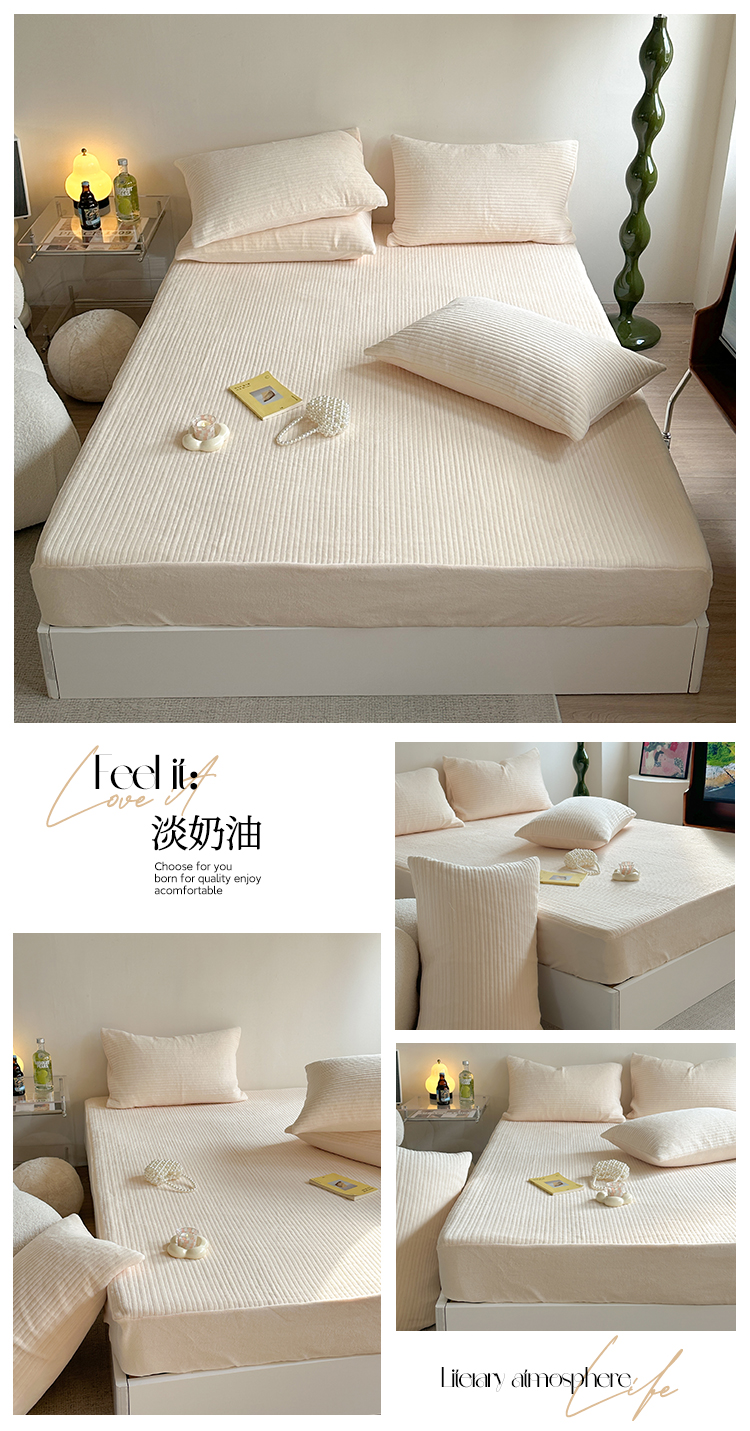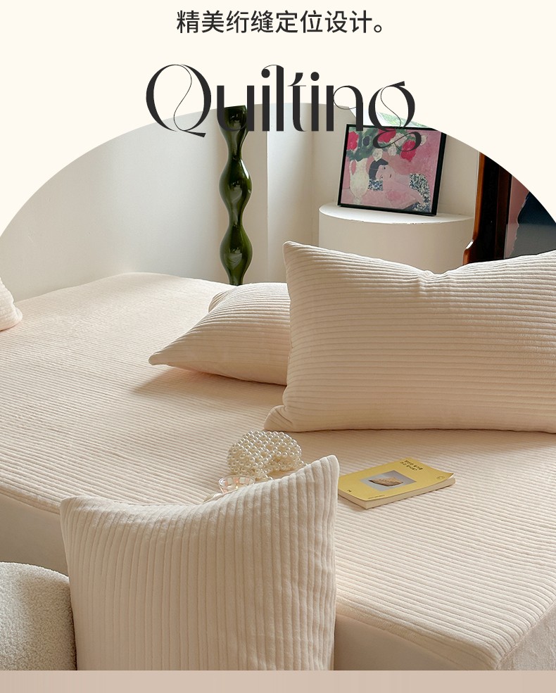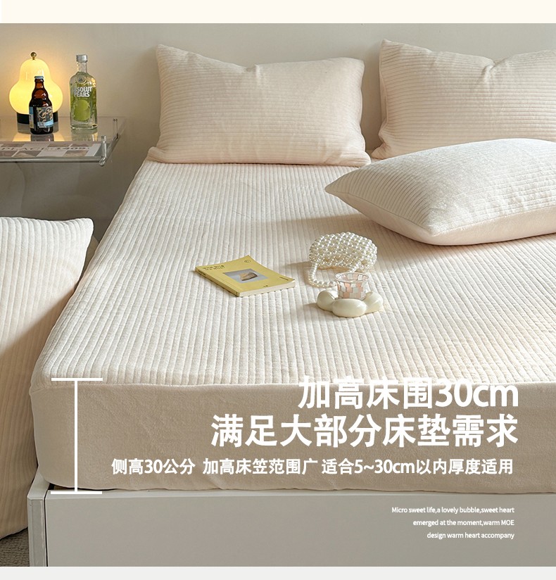 商品名称:漫调 2023新款直条绗缝牛奶绒纯色夹棉床笠 淡奶油