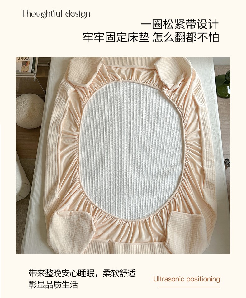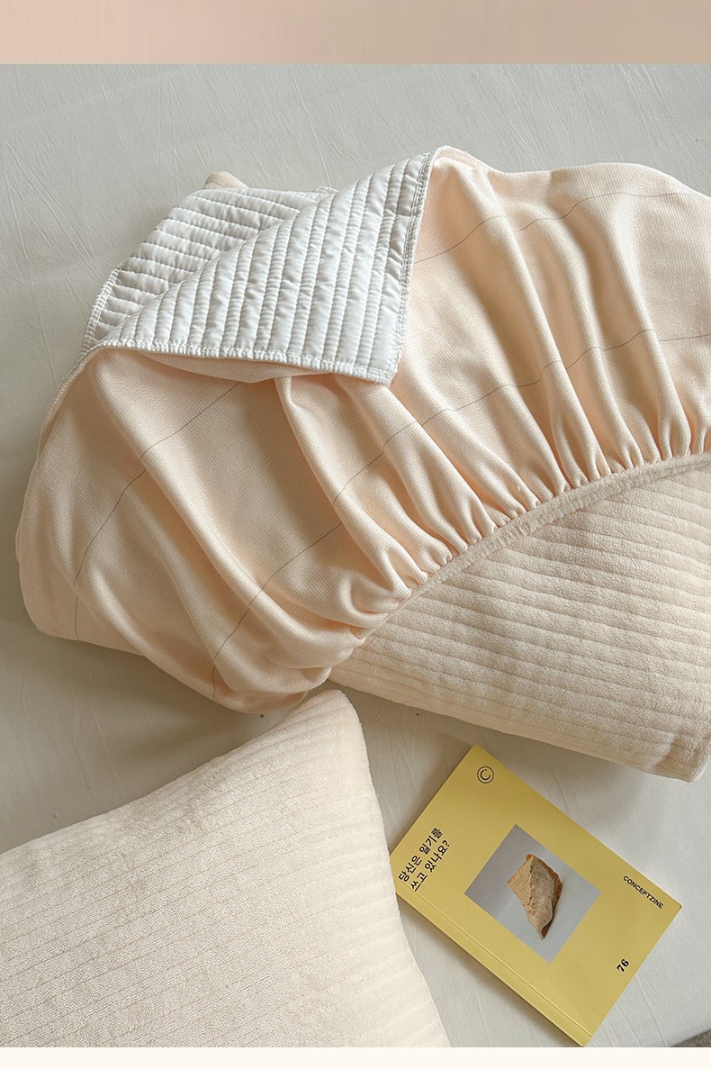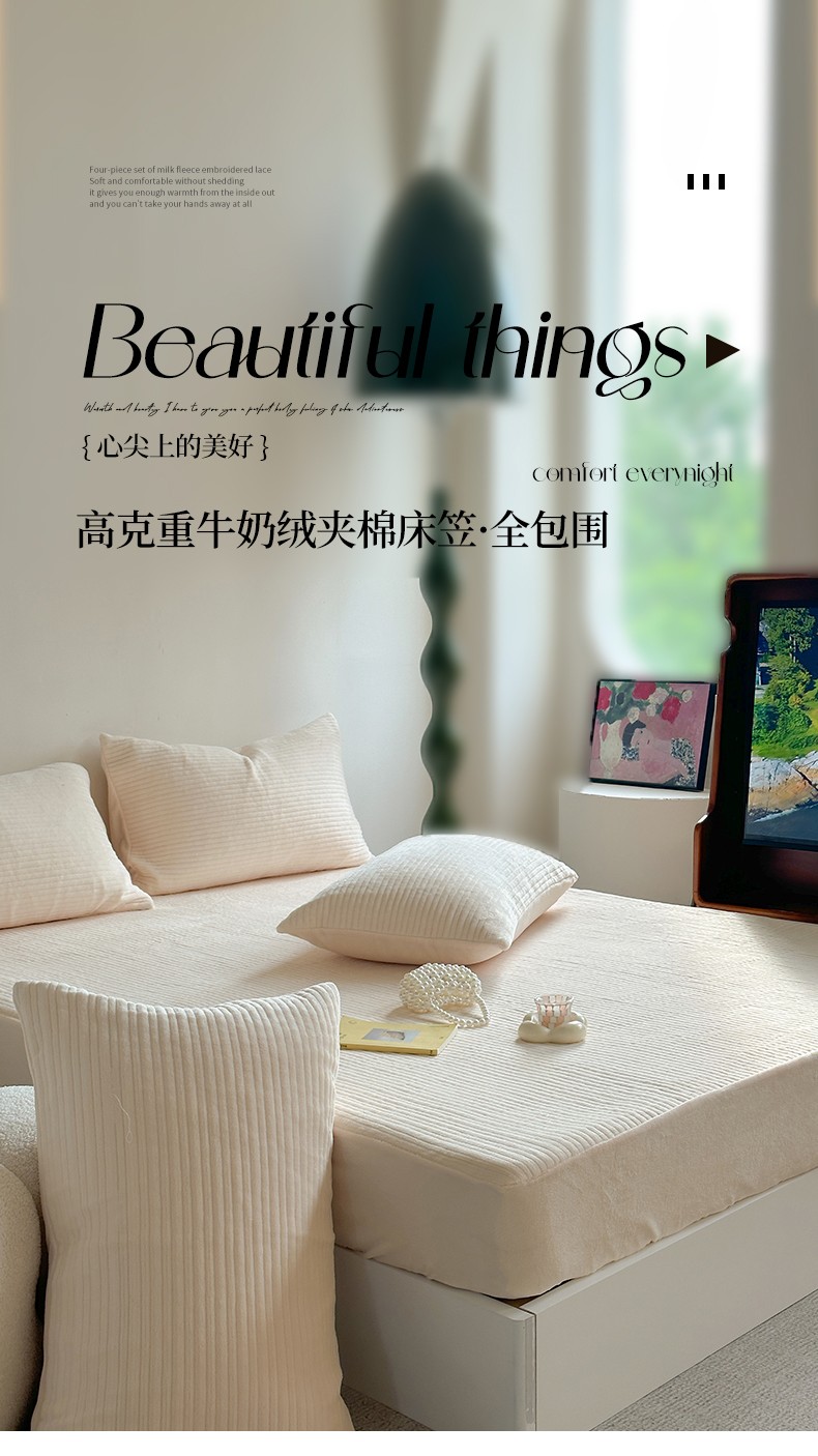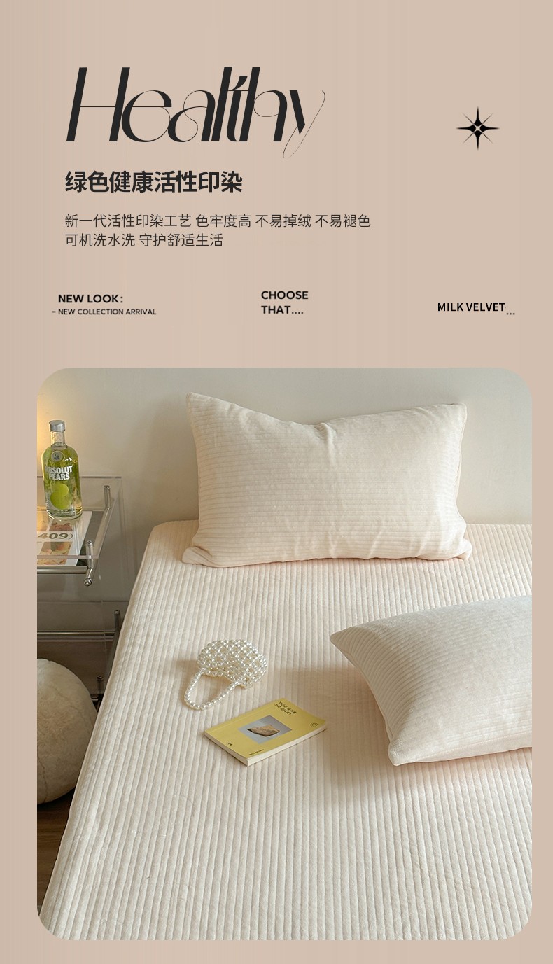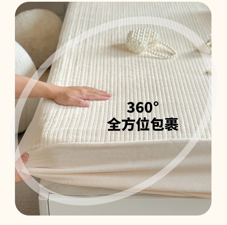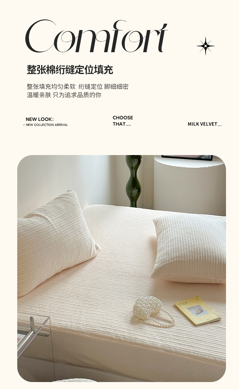 商品名称:漫调 2023新款直条绗缝牛奶绒纯色夹棉床笠 淡奶油
