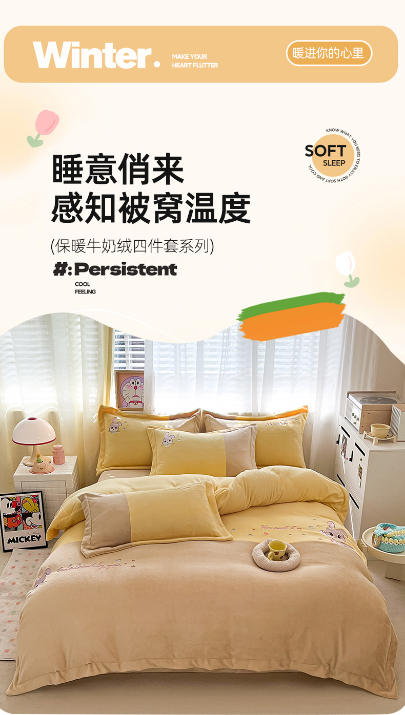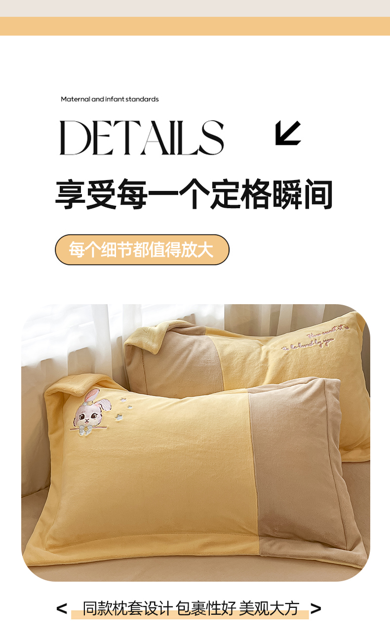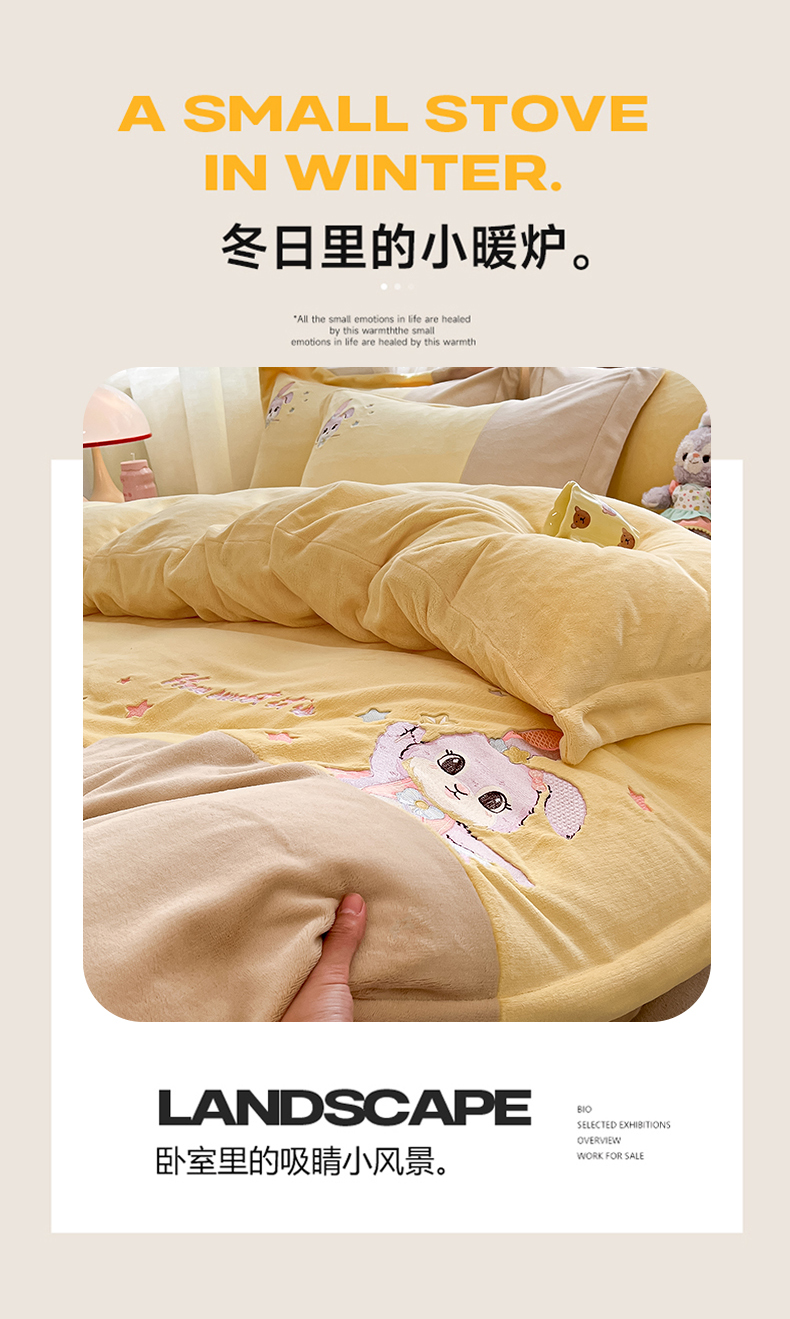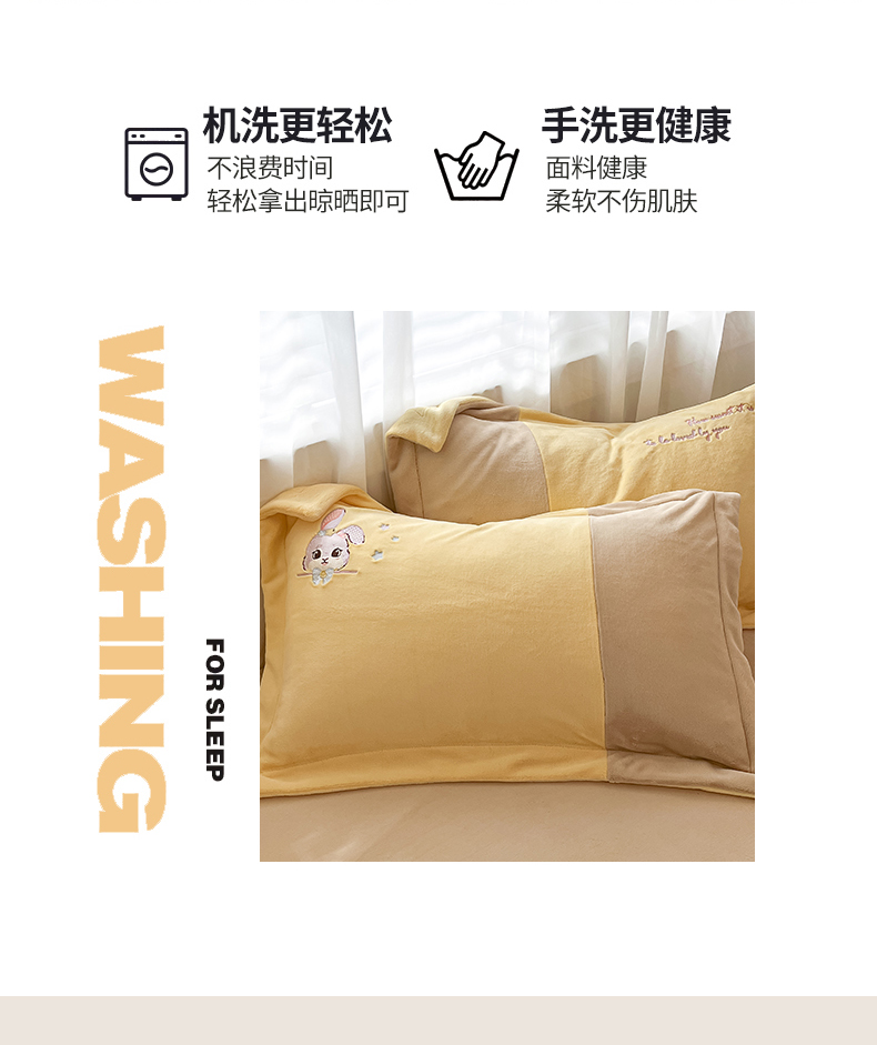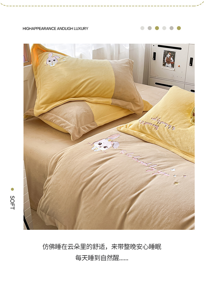 当前位置: 91家纺网 > 商品网购 > 床品套件 > 四件套 > 牛奶绒四件套 > 爱上家居 2023新款保暖加厚卡通刺绣牛奶绒四件套 兔眠-卡其拼黄