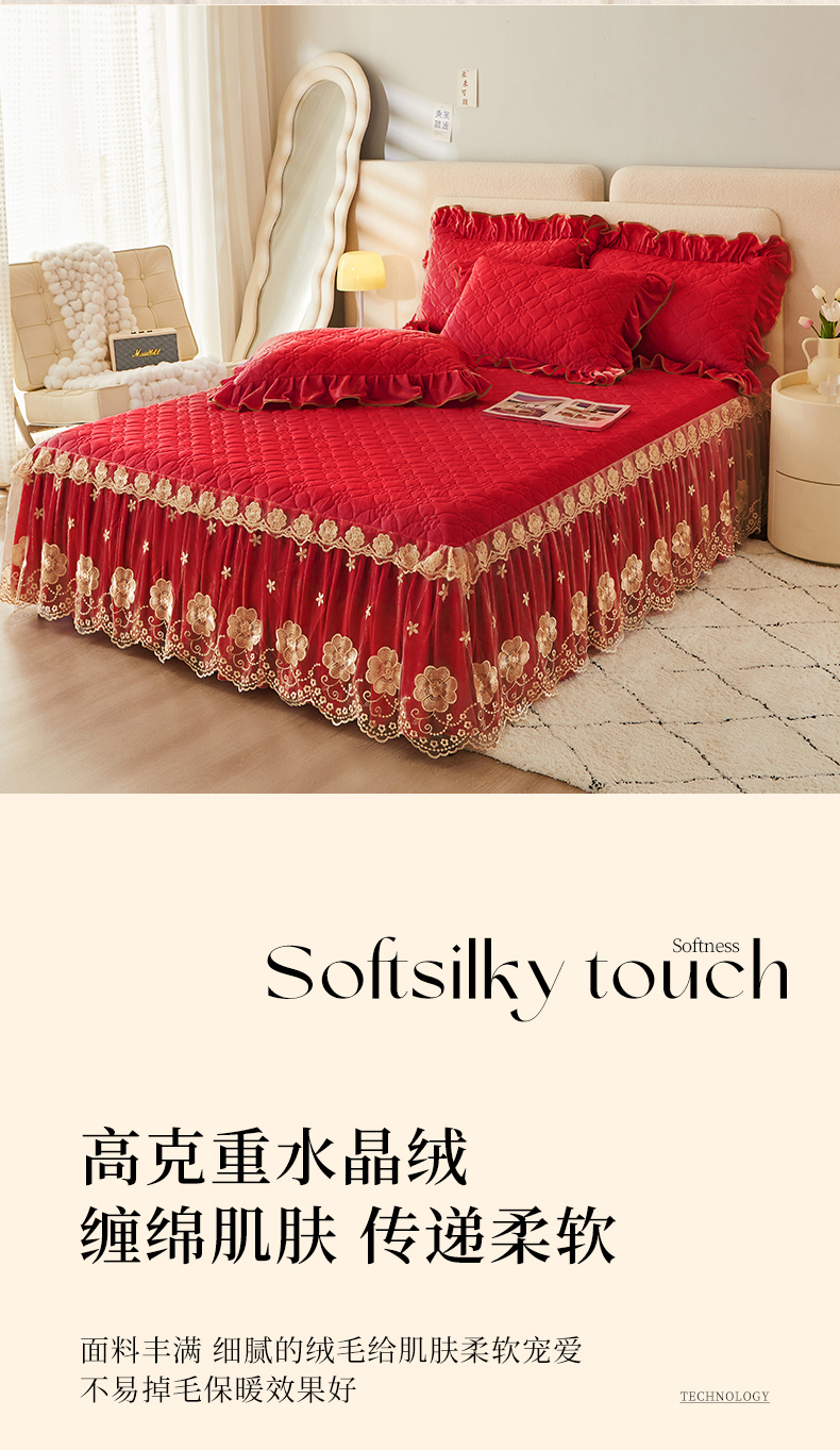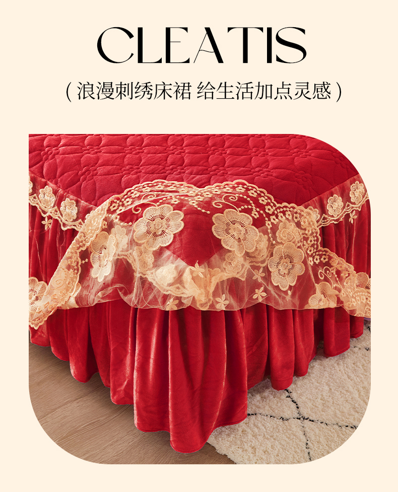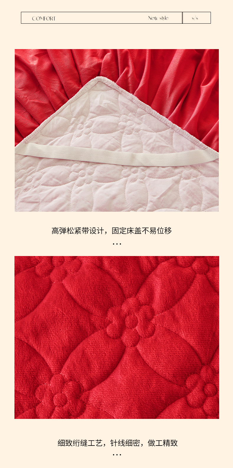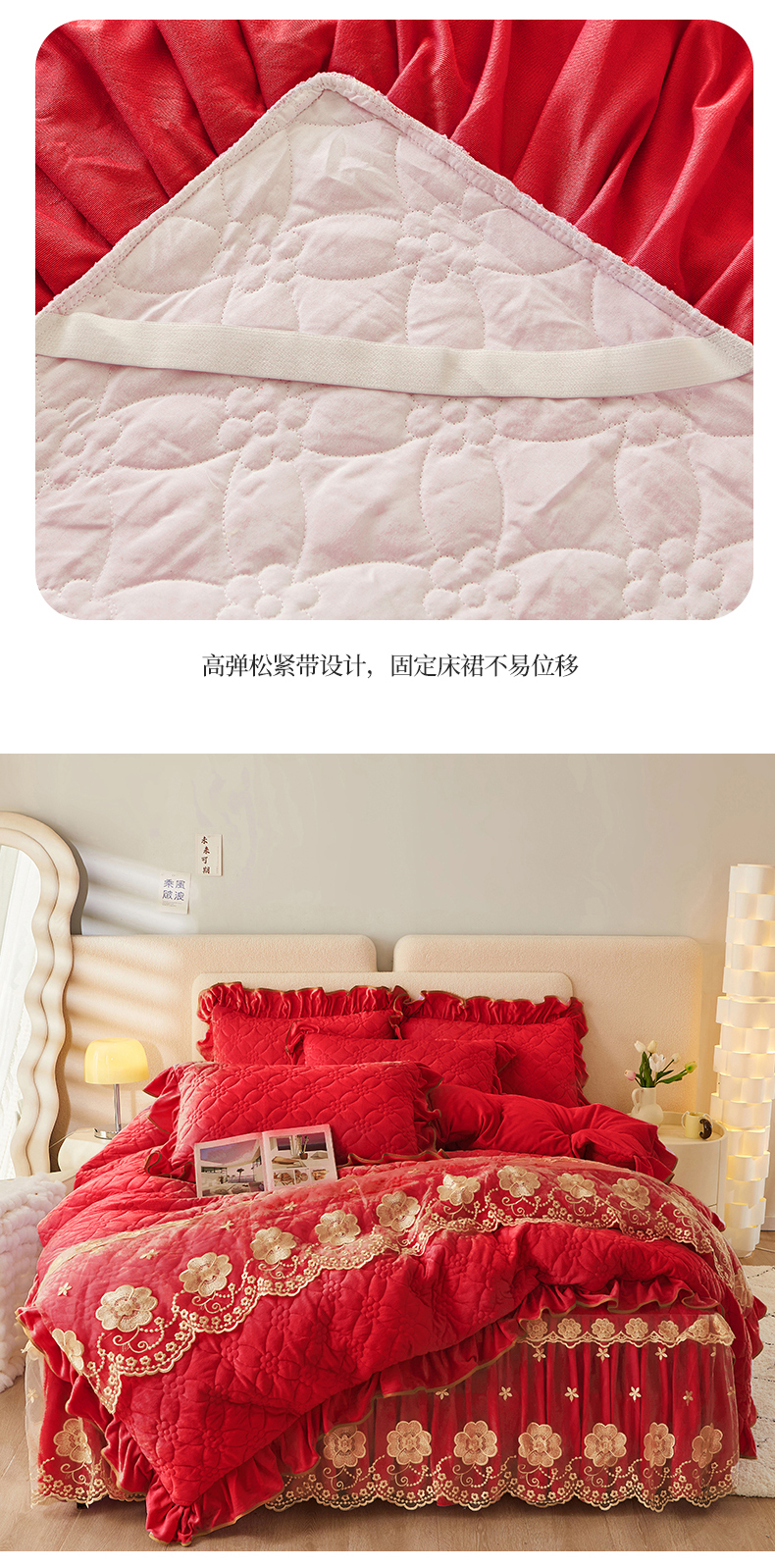 当前位置: 91家纺网 > 商品网购 > 床品套件 > 四件套 > 全棉普通四件套 > 罗艺轩 2024秋冬新款水晶绒花样年华全夹棉加厚床裙四件套 花样年华-中国红