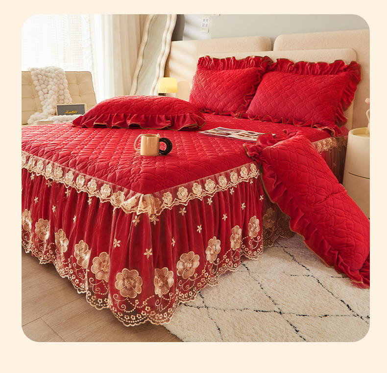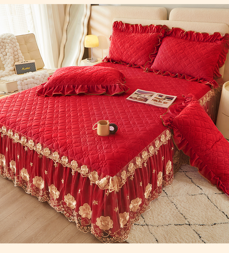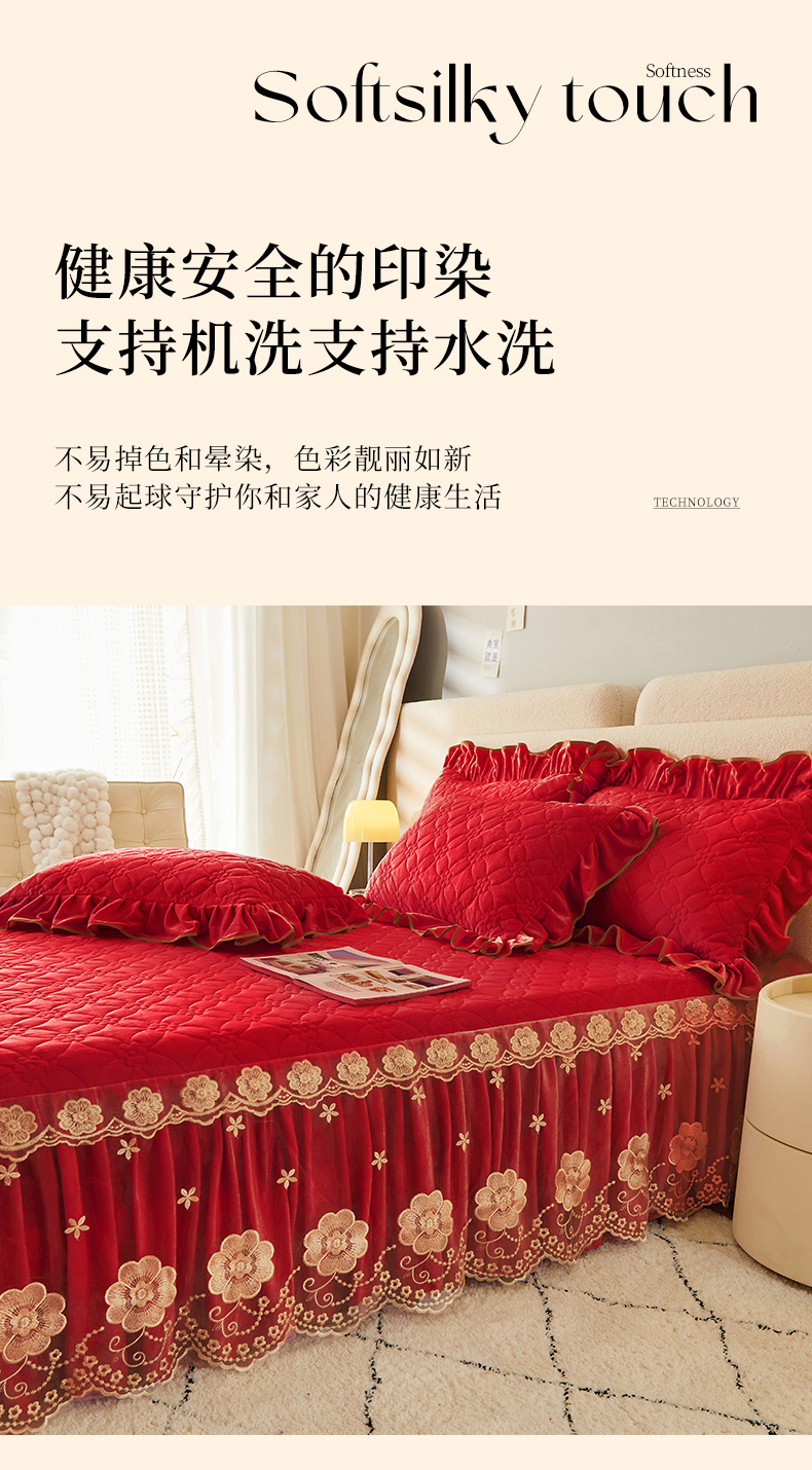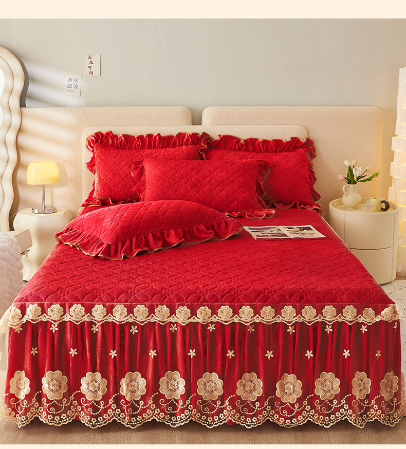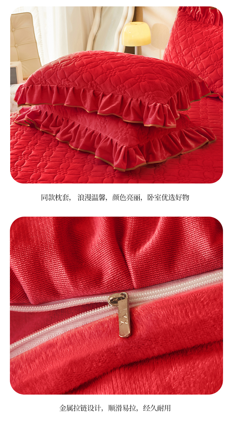 当前位置: 91家纺网 > 商品网购 > 床品套件 > 四件套 > 全棉普通四件套 > 罗艺轩 2024秋冬新款水晶绒花样年华全夹棉加厚床裙四件套 花样年华-中国红