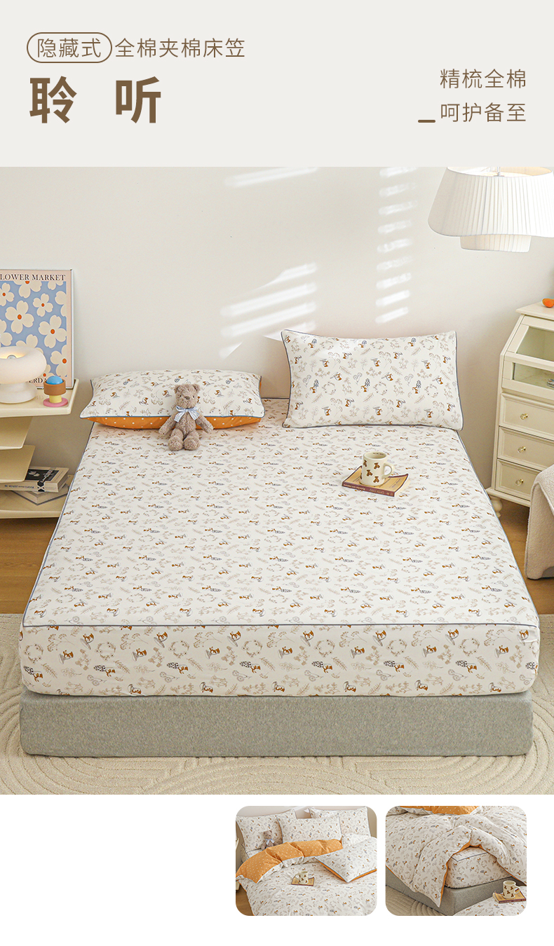 商品名称:元元 2024新款13372加密精梳全棉单品套件系列-单床笠 聆听
