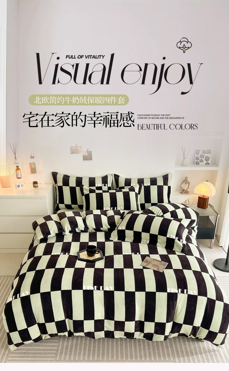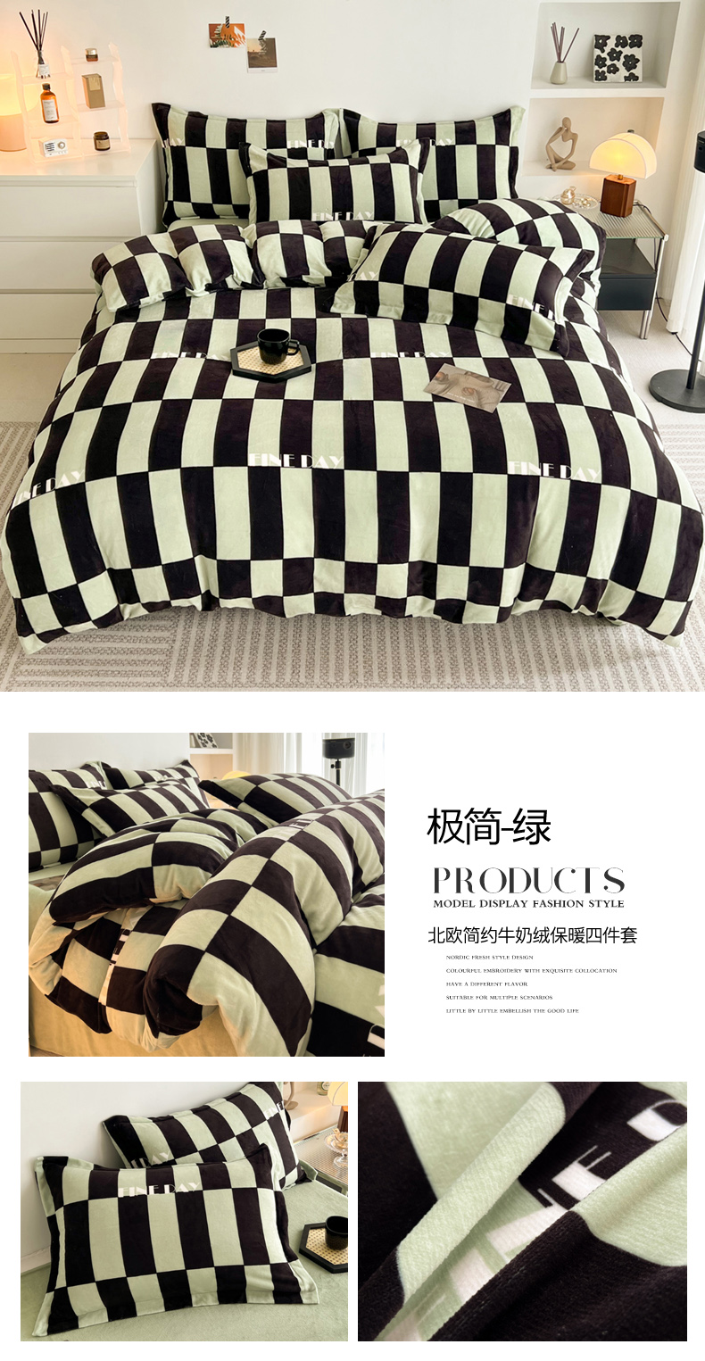 当前位置: 91家纺网 > 商品网购 > 床品套件 > 四件套 > 牛奶绒四件套 > 寐居 2023新款北欧简约款牛奶绒四件套 极简-绿