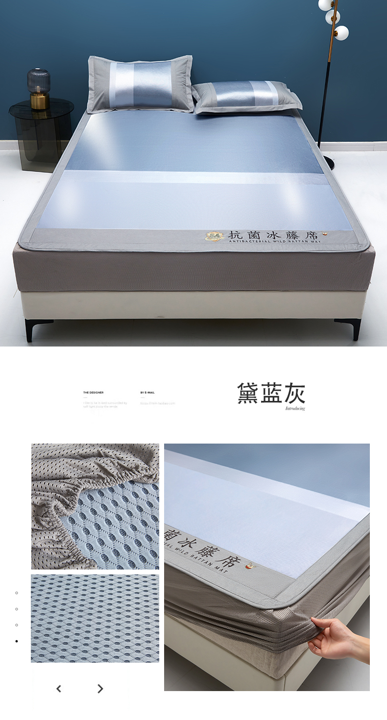 商品名称:鑫姿席业 2025新款5A抗菌冰藤席(渐变)床笠款系列 黛蓝灰