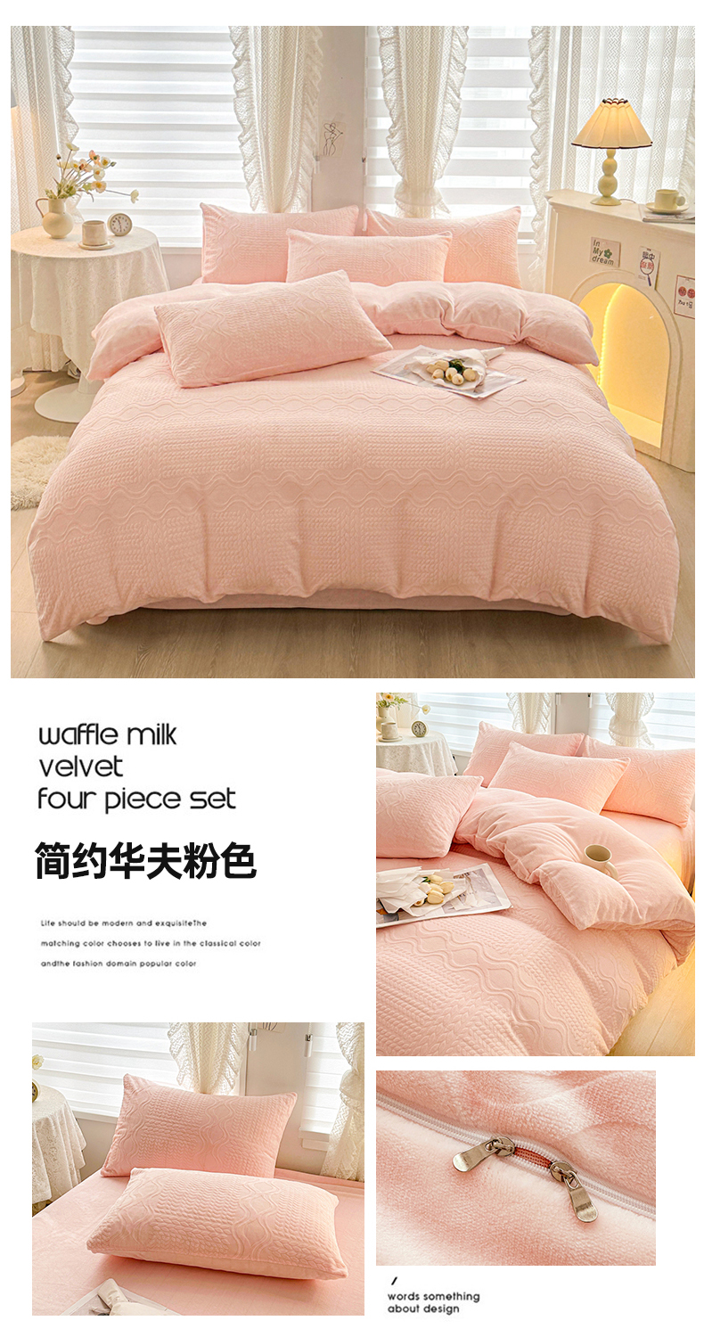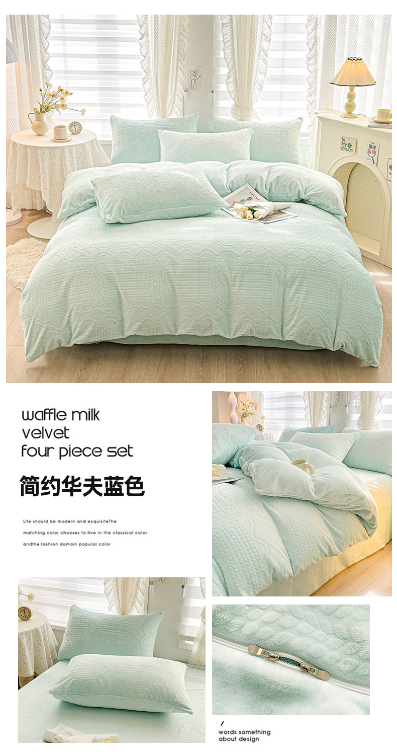 当前位置: 91家纺网 > 商品网购 > 床品套件 > 四件套 > 牛奶绒四件套 > (总)雅萱家纺 2023新款简约华夫绒四件套