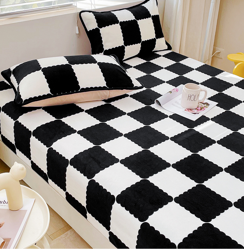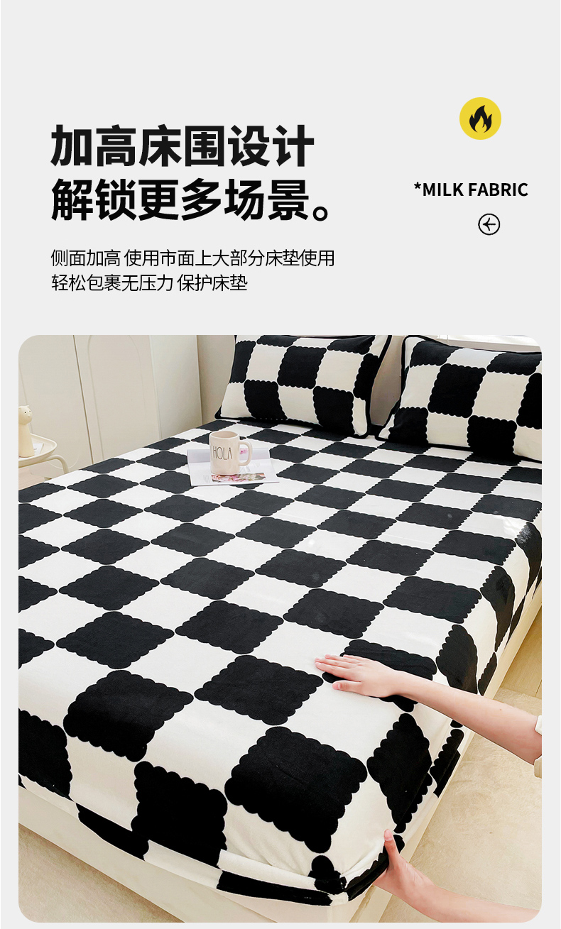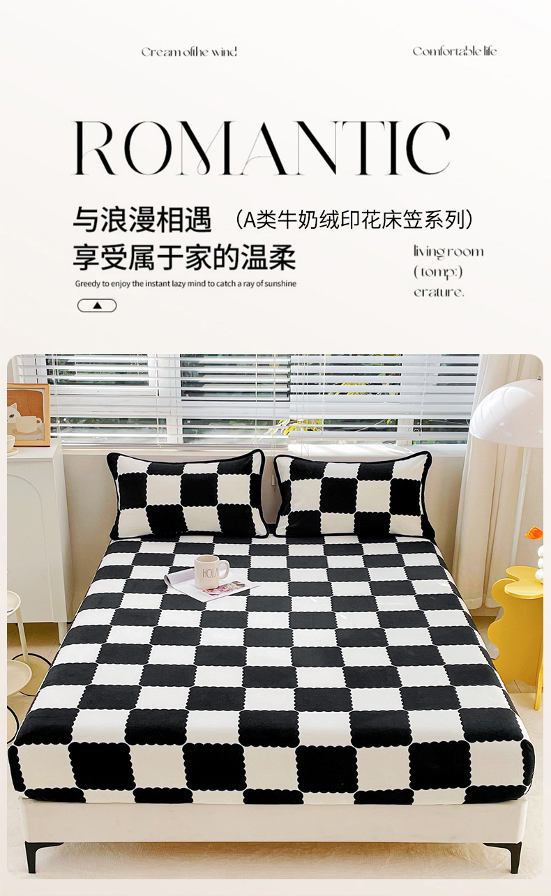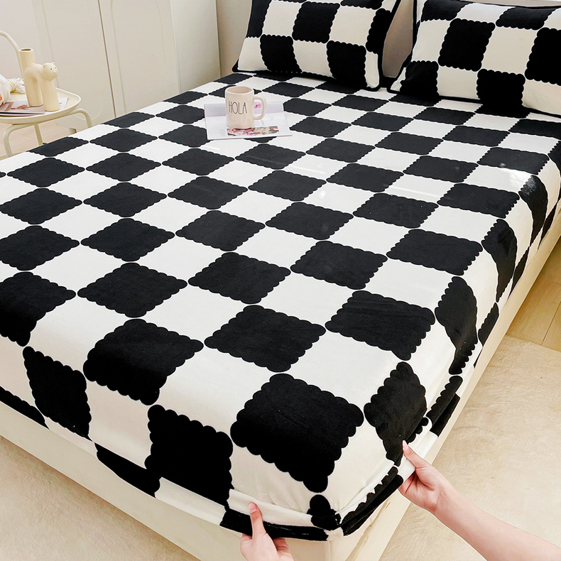 恒尚居 2024新款印花【棋盘格】系列高克重牛奶绒床笠 棋盘格-黑白