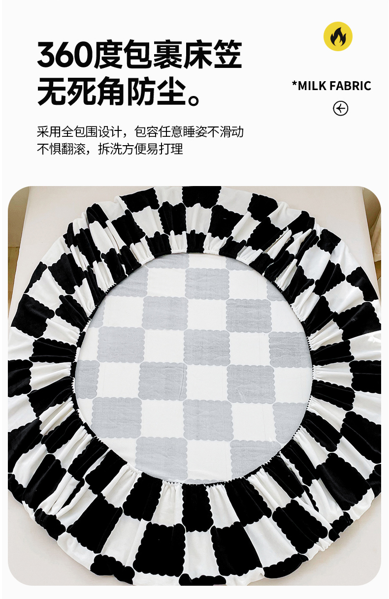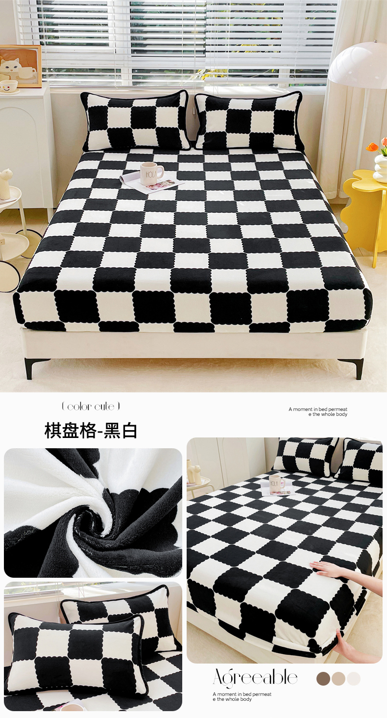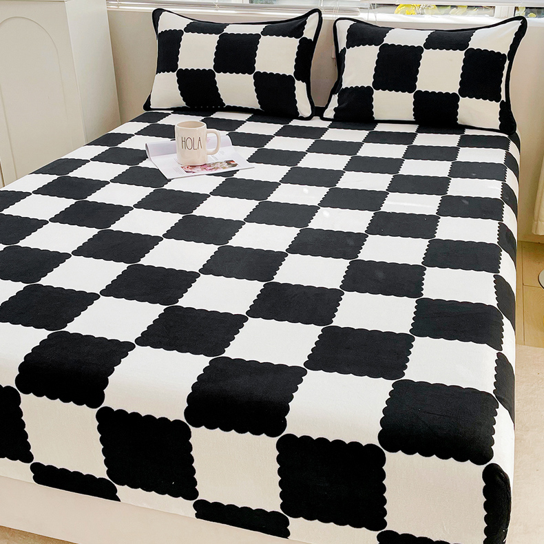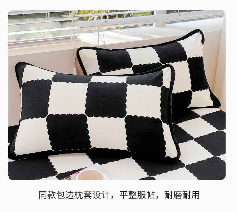 恒尚居 2024新款印花【棋盘格】系列高克重牛奶绒床笠 棋盘格-黑白