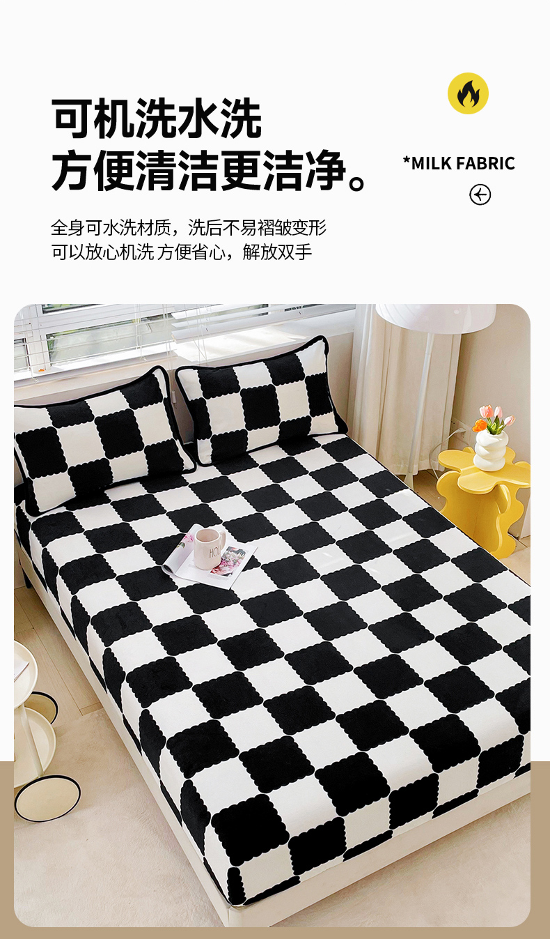 • 91家纺网 家纺一手货源 找家纺 恒尚居 2024新款印花【棋盘格】系列高克重牛奶绒床笠 棋盘格-黑白