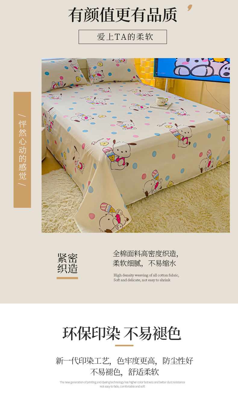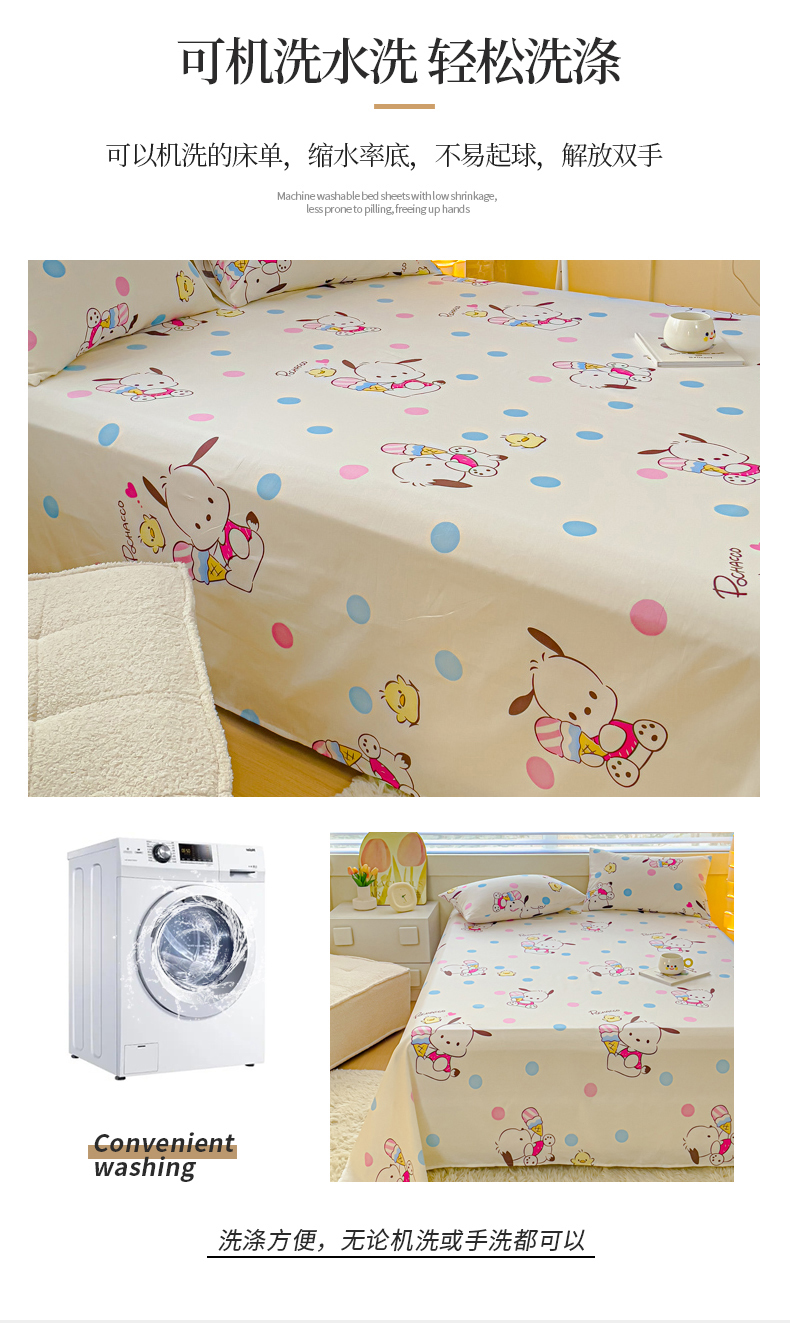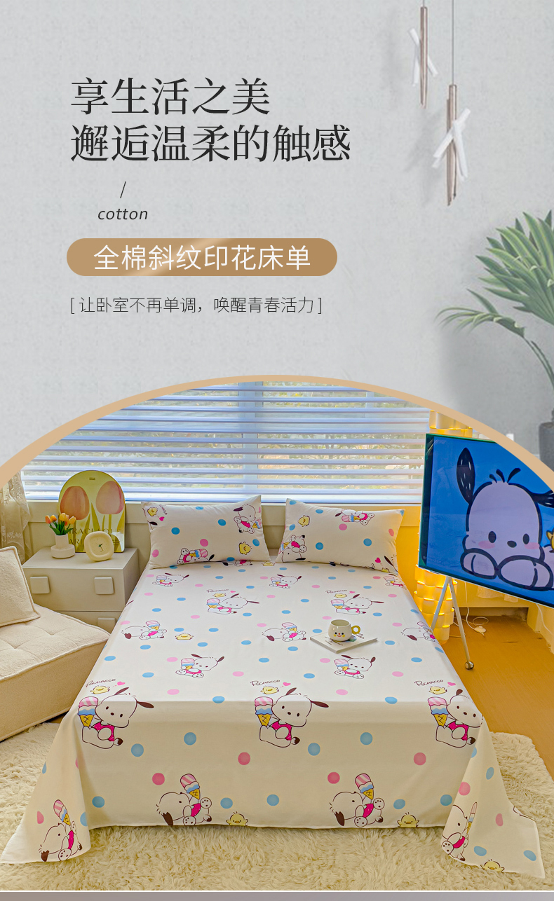 商品名称:金丝鸟家纺 2024新款全棉三丽鸥系列床单 波点帕恰狗