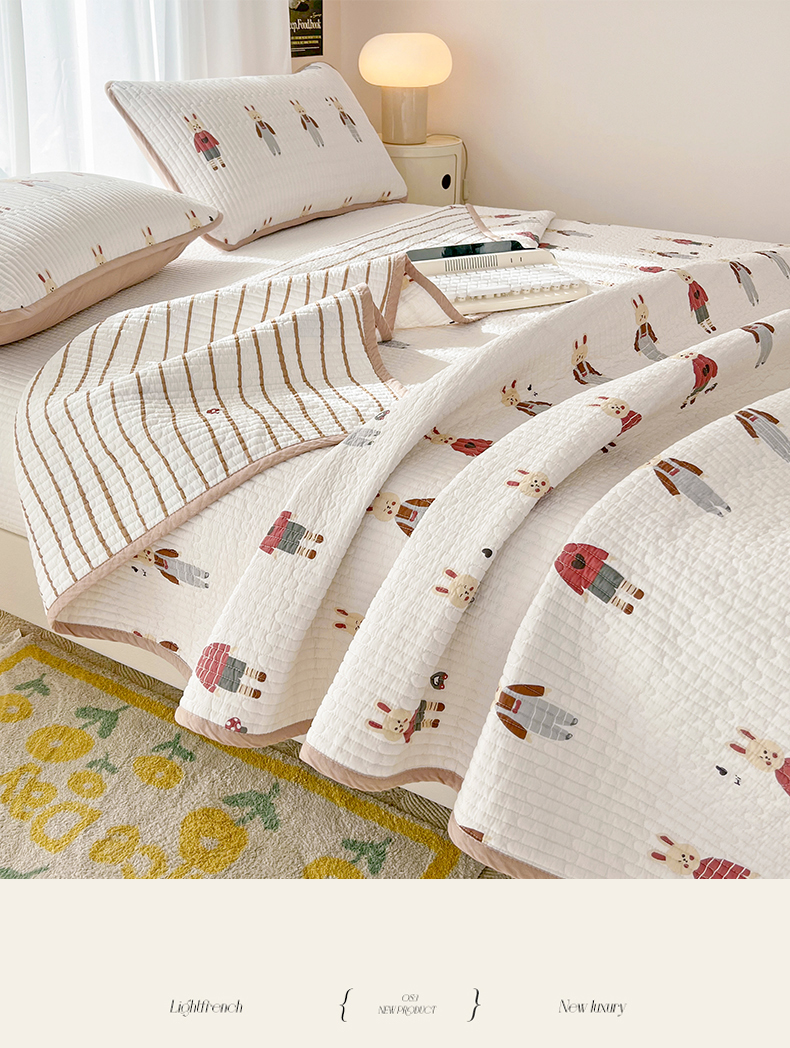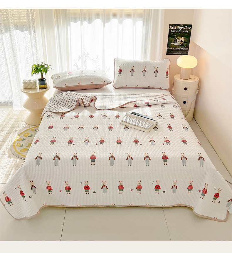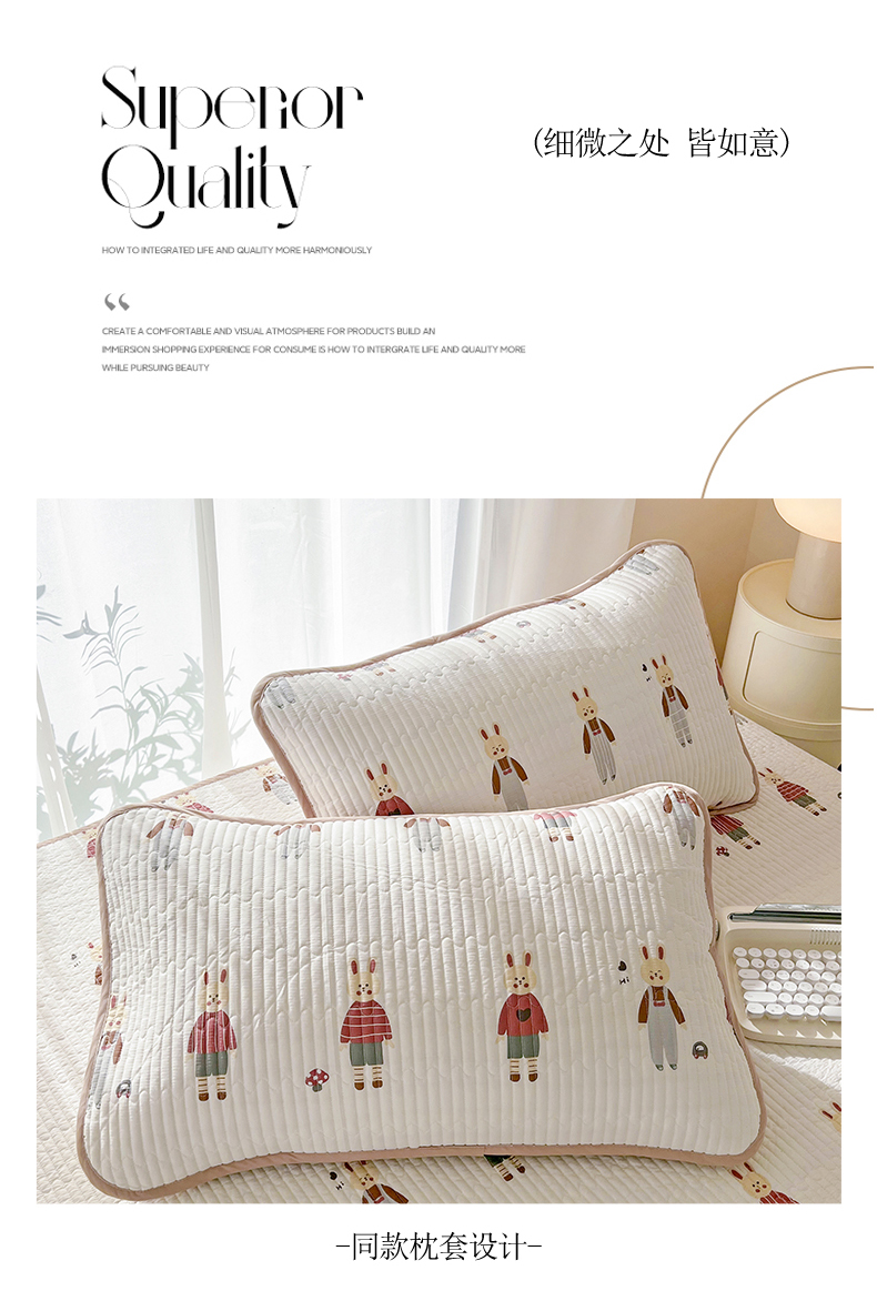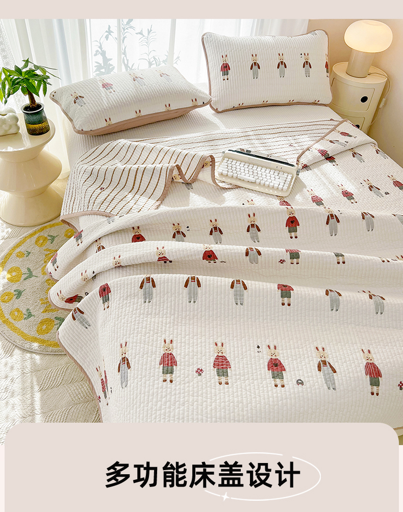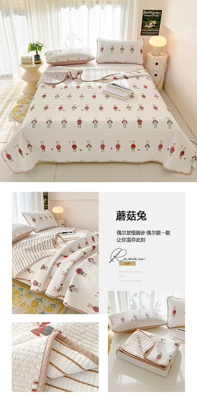 茉夕家纺 2024新款纯棉斜纹13372双面纯棉床盖 蘑菇兔