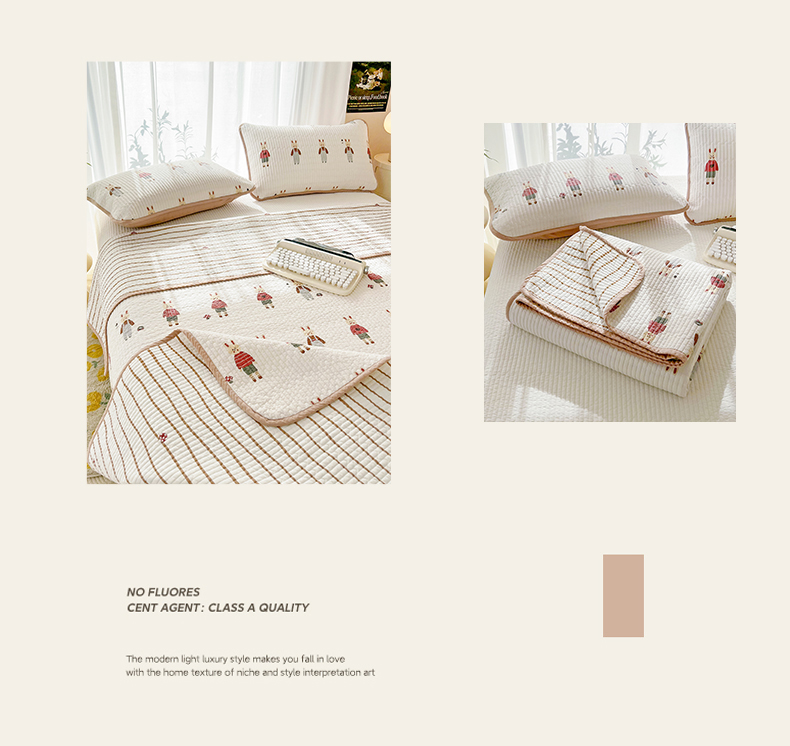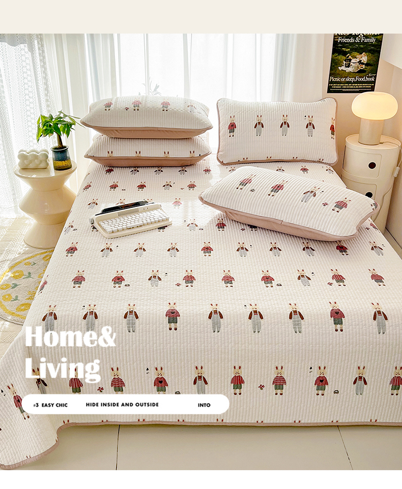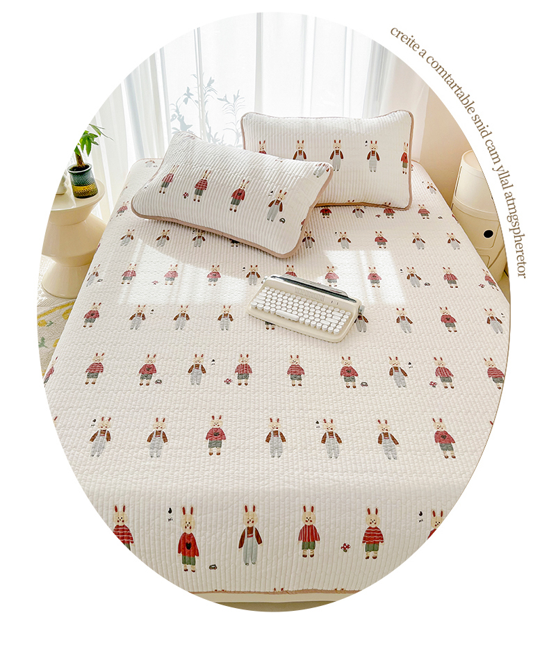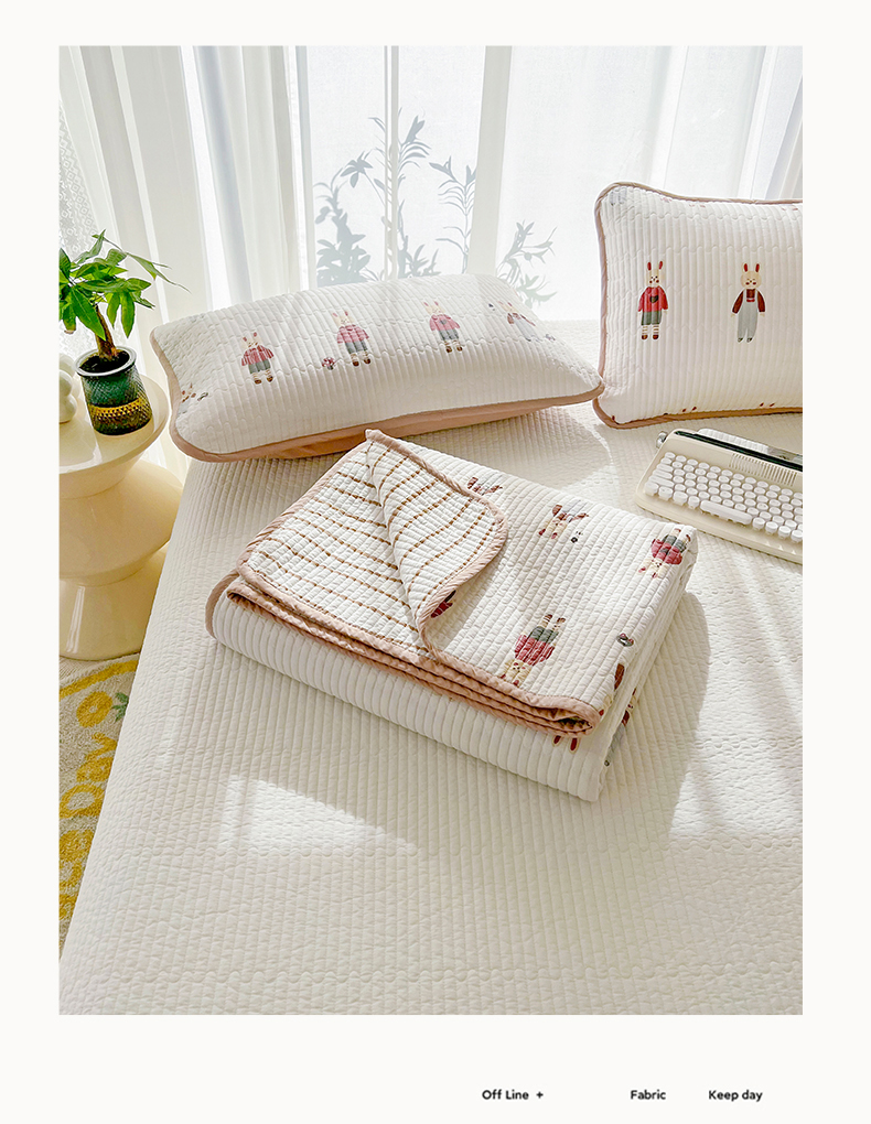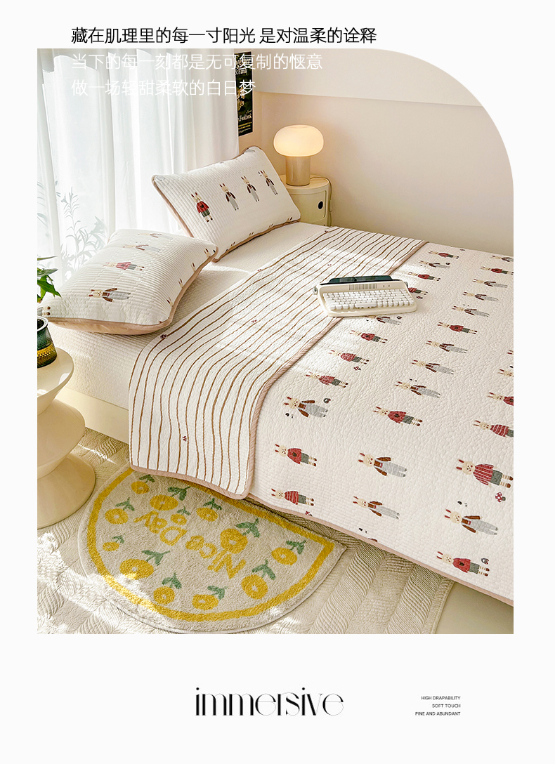 茉夕家纺 2024新款纯棉斜纹13372双面纯棉床盖 蘑菇兔