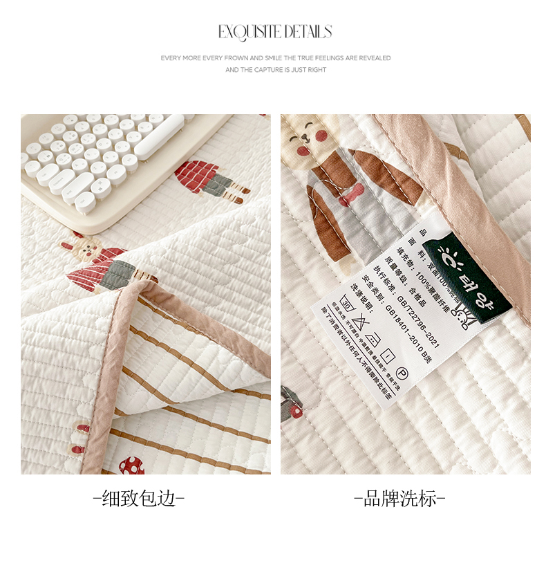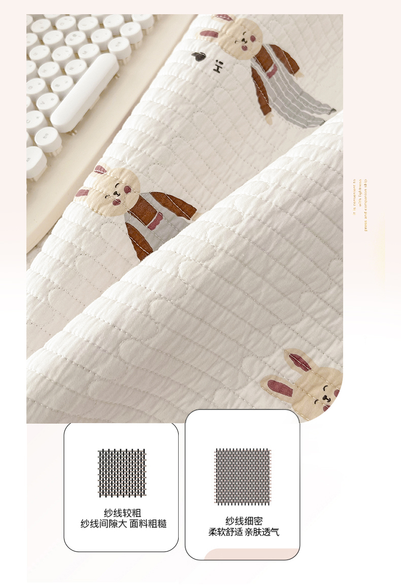 商品名称:茉夕家纺 2024新款纯棉斜纹13372双面纯棉床盖 蘑菇兔